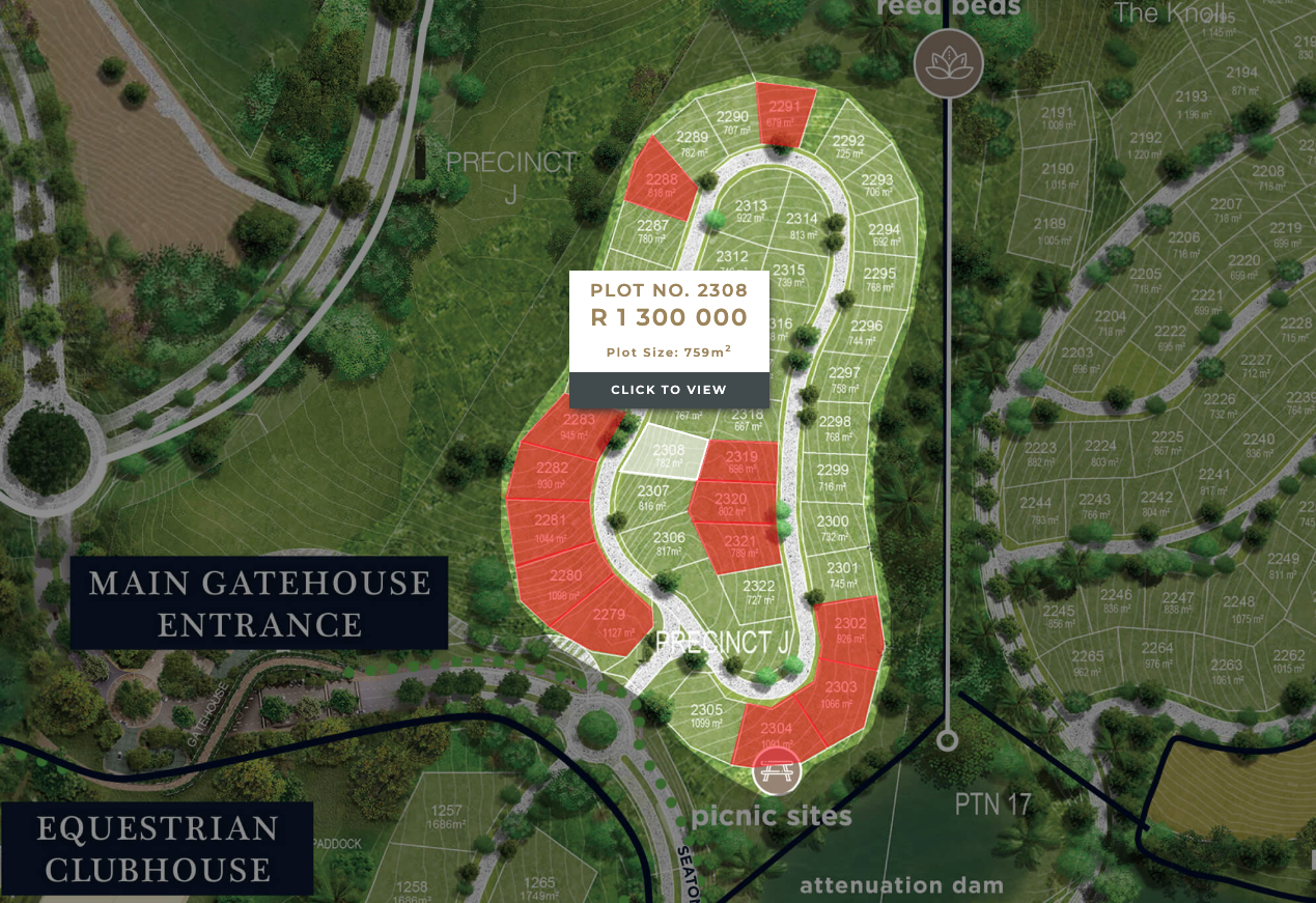 Plot 2308 is a 782 square meter elevated stand that offers an open and appealing outlook across Seaton Estate. The location provides a comfortable sense of space while still being close to the new Seaton entrance, allowing for easy access in and out of the estate.