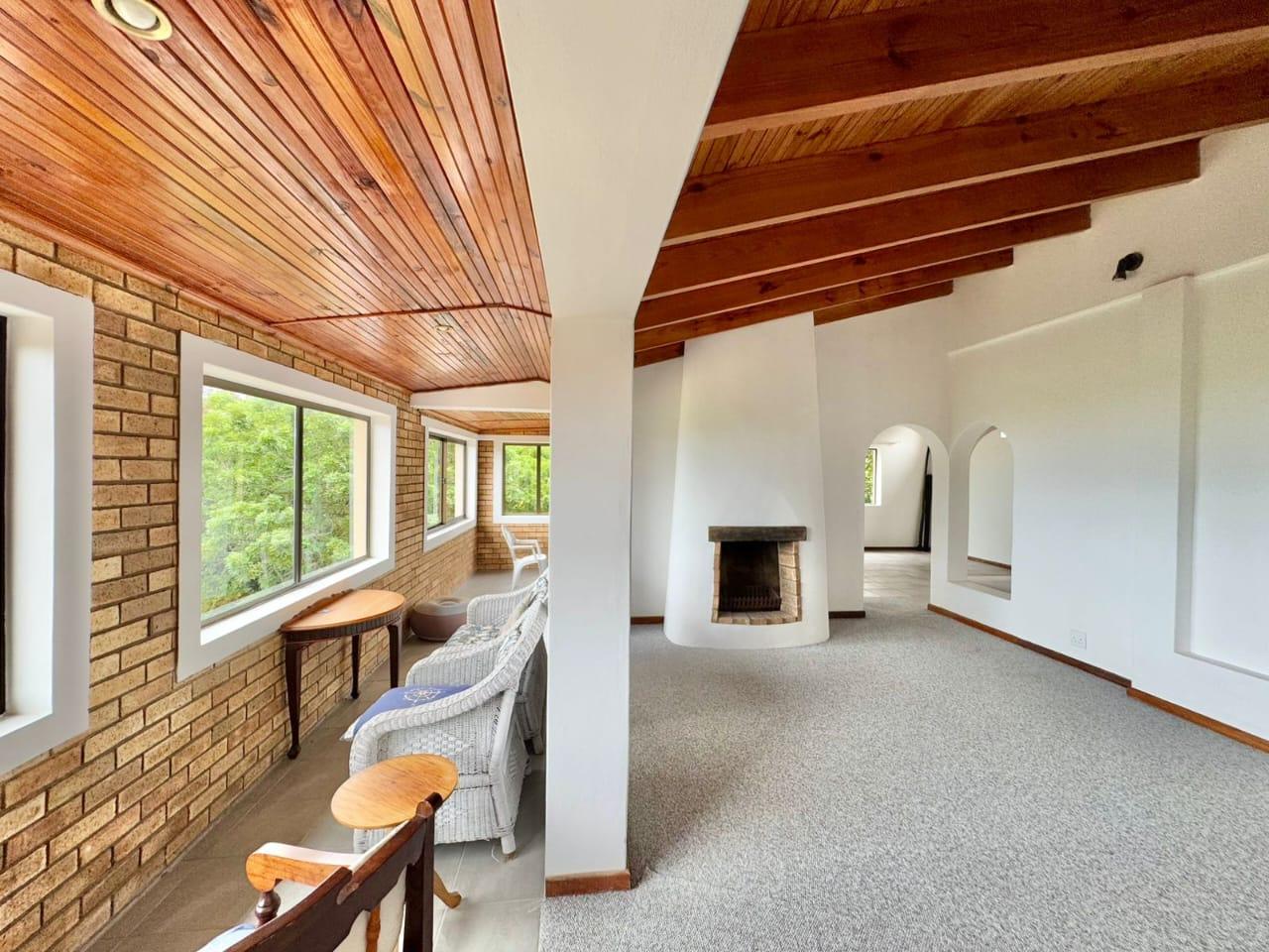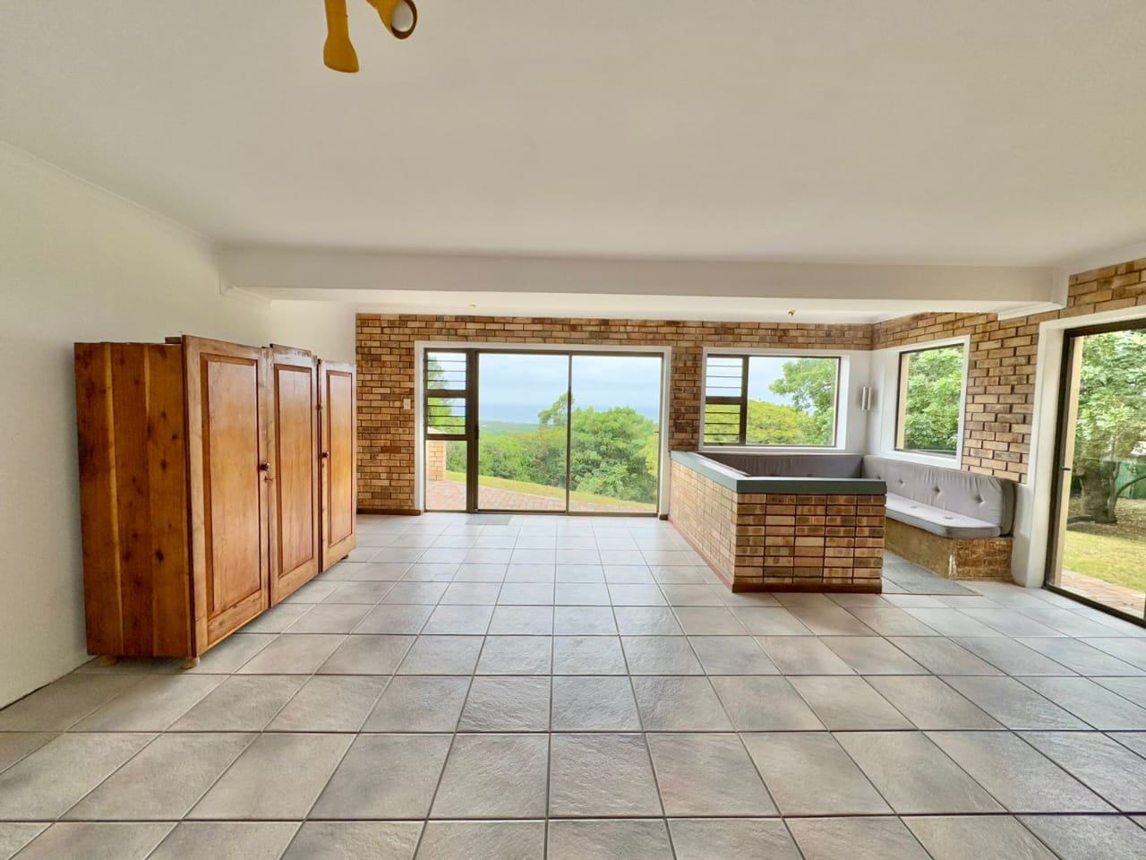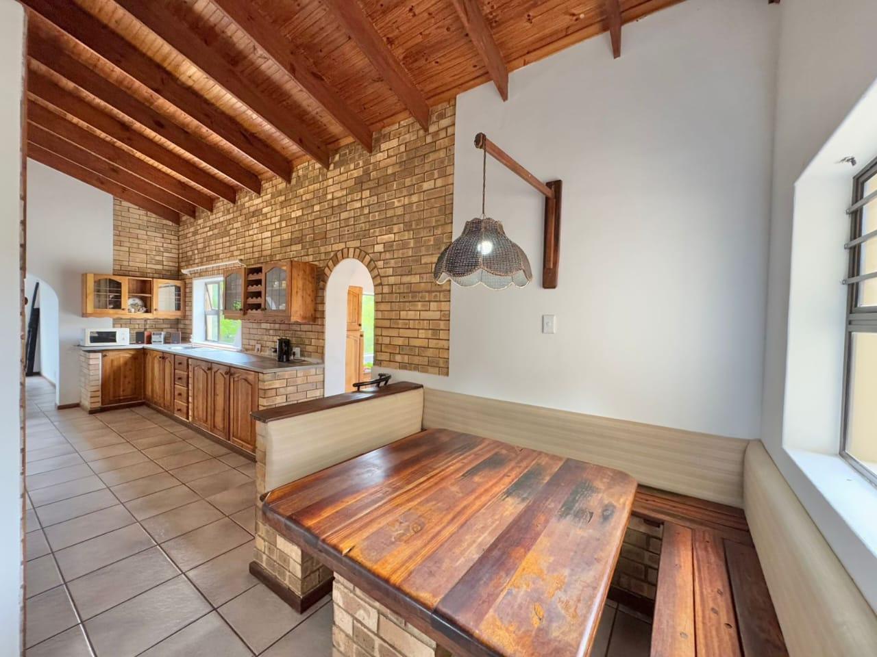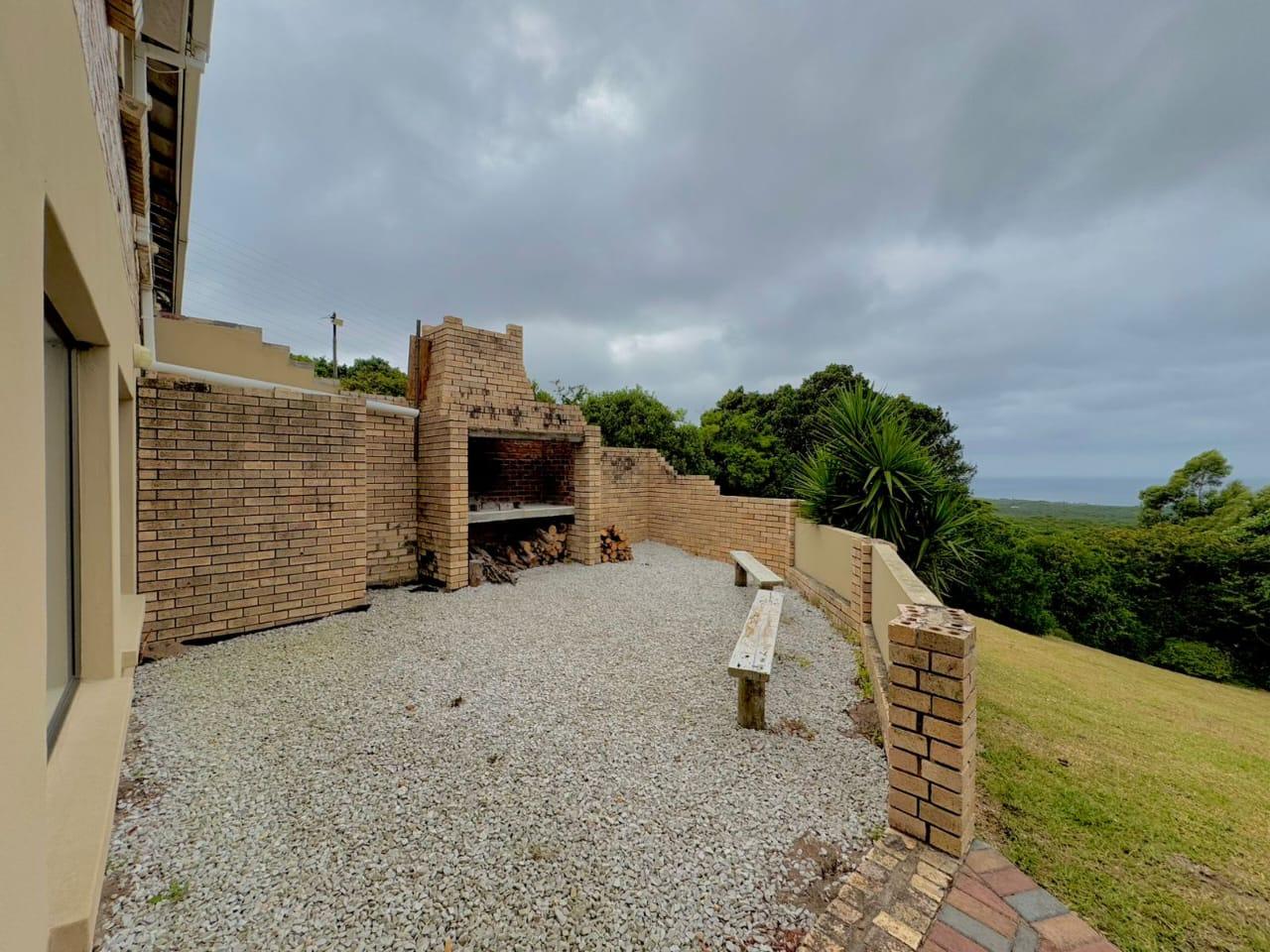 The established garden, filled with mature trees, creates a serene and welcoming environment. Local wildlife, including bushbuck, are occasional visitors, and birdsong forms part of daily life. The property is secured with an entrance gate, ensuring privacy and peace of mind.