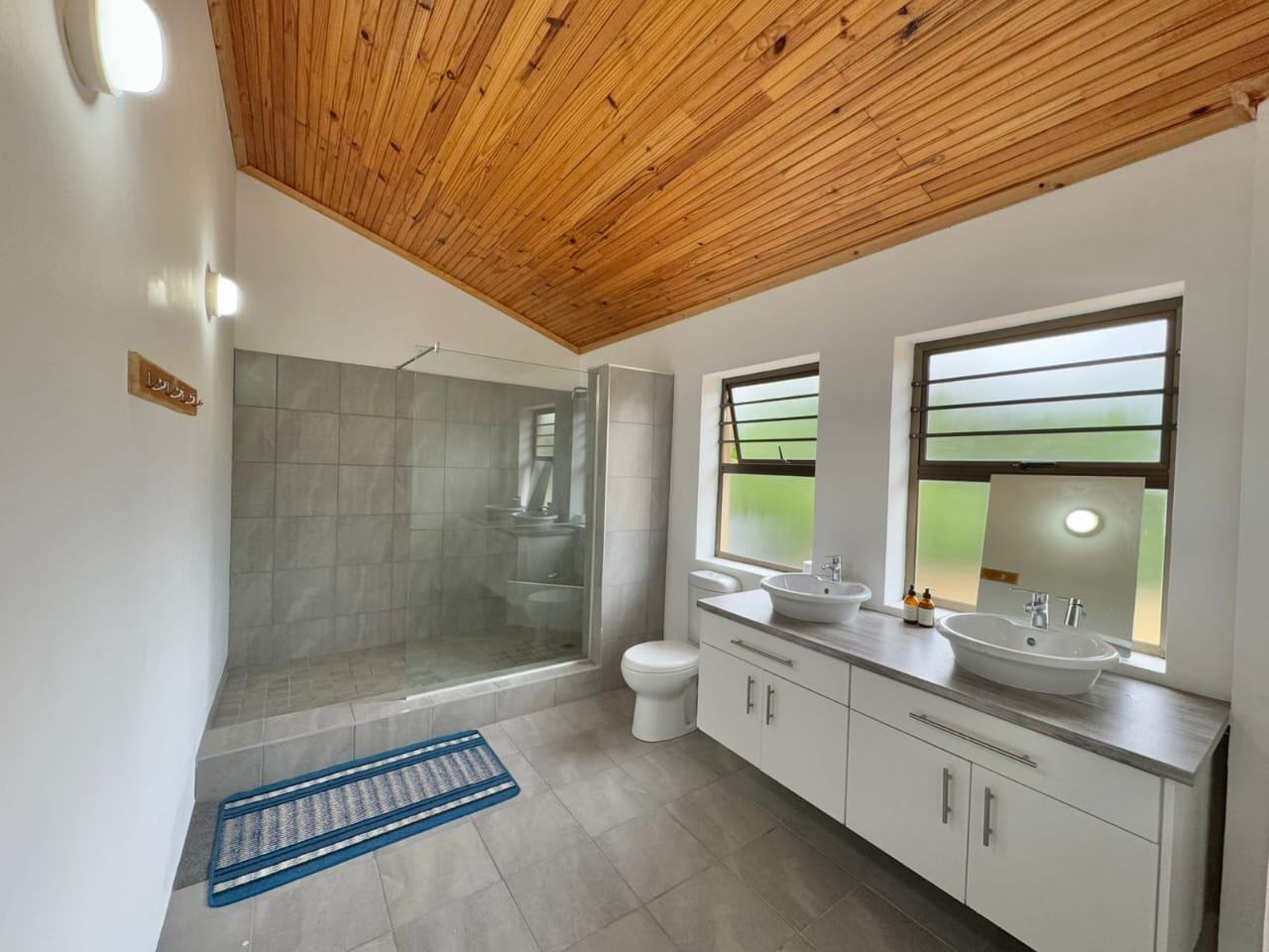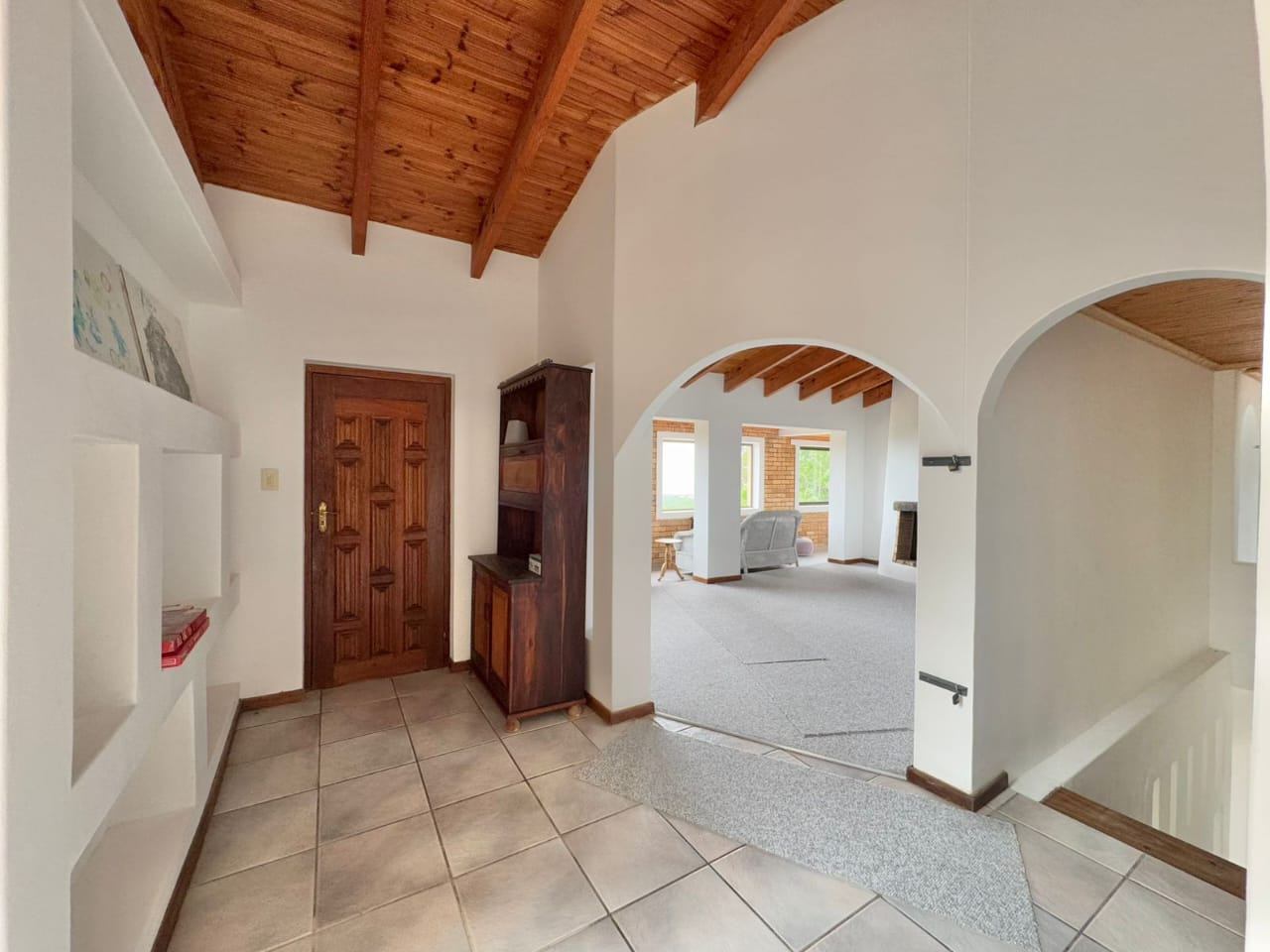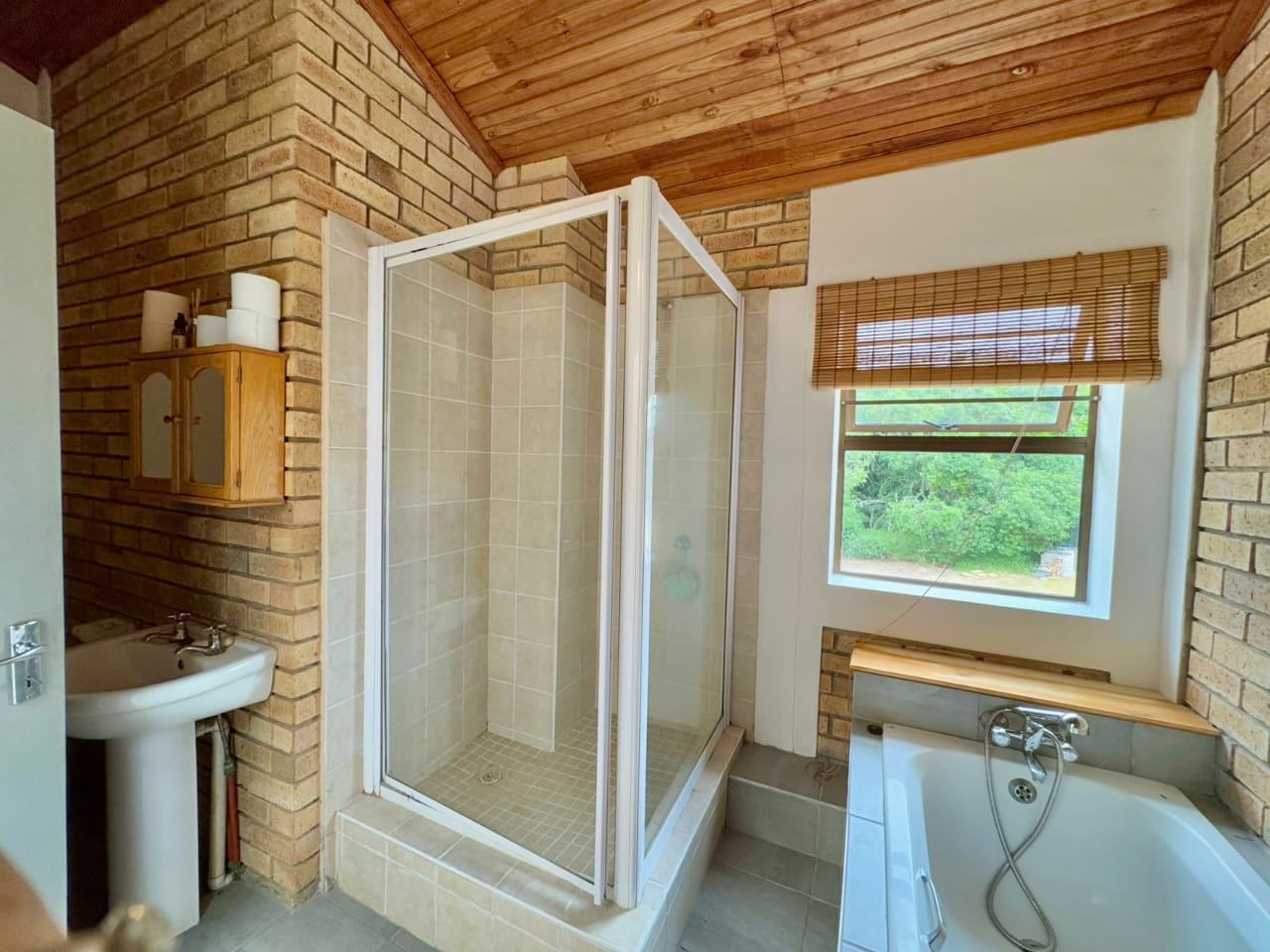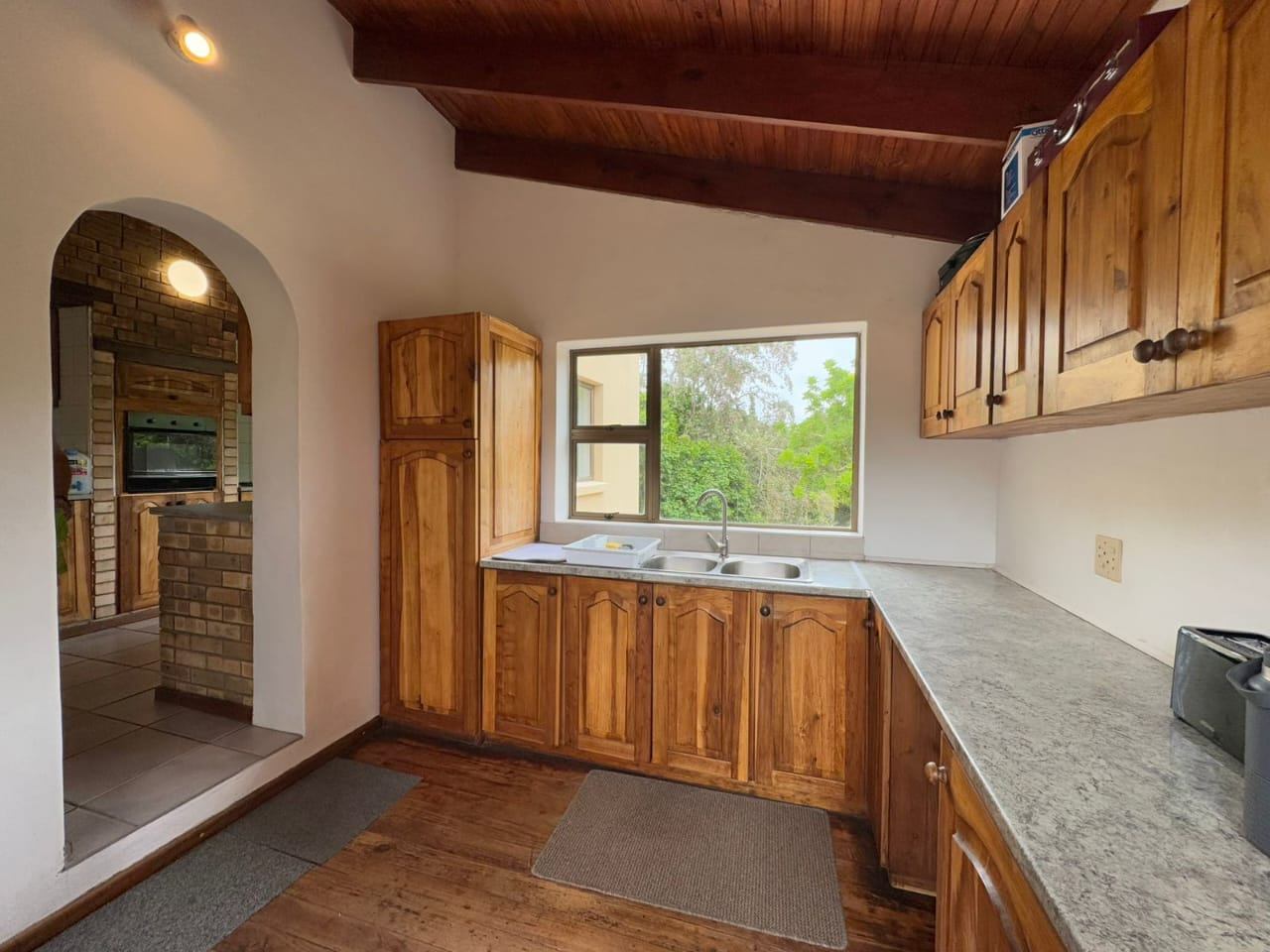 The established garden, filled with mature trees, creates a serene and welcoming environment. Local wildlife, including bushbuck, are occasional visitors, and birdsong forms part of daily life. The property is secured with an entrance gate, ensuring privacy and peace of mind.
