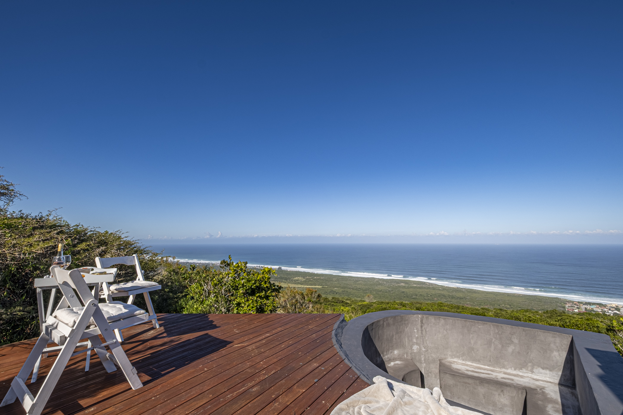 The land is fully enclosed with a 1.8-meter solar powered electric game fence and is surrounded by a protected nature reserve. A portion of the access road is tarred. At the highest point of the farm with breathtaking ocean views you will find a wooden cabin with a viewing deck complete with concrete jacuzzi, heated by a donkey boiler and a built-in braai. There are architectural plans to convert the cabin into a 3-bedroom, two-bathroom home designed to maximize on the sea views.