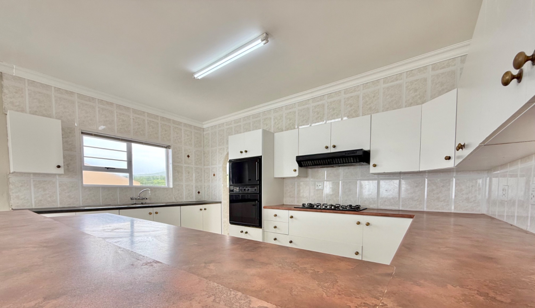 Kitchen with separate scullery and laundry.