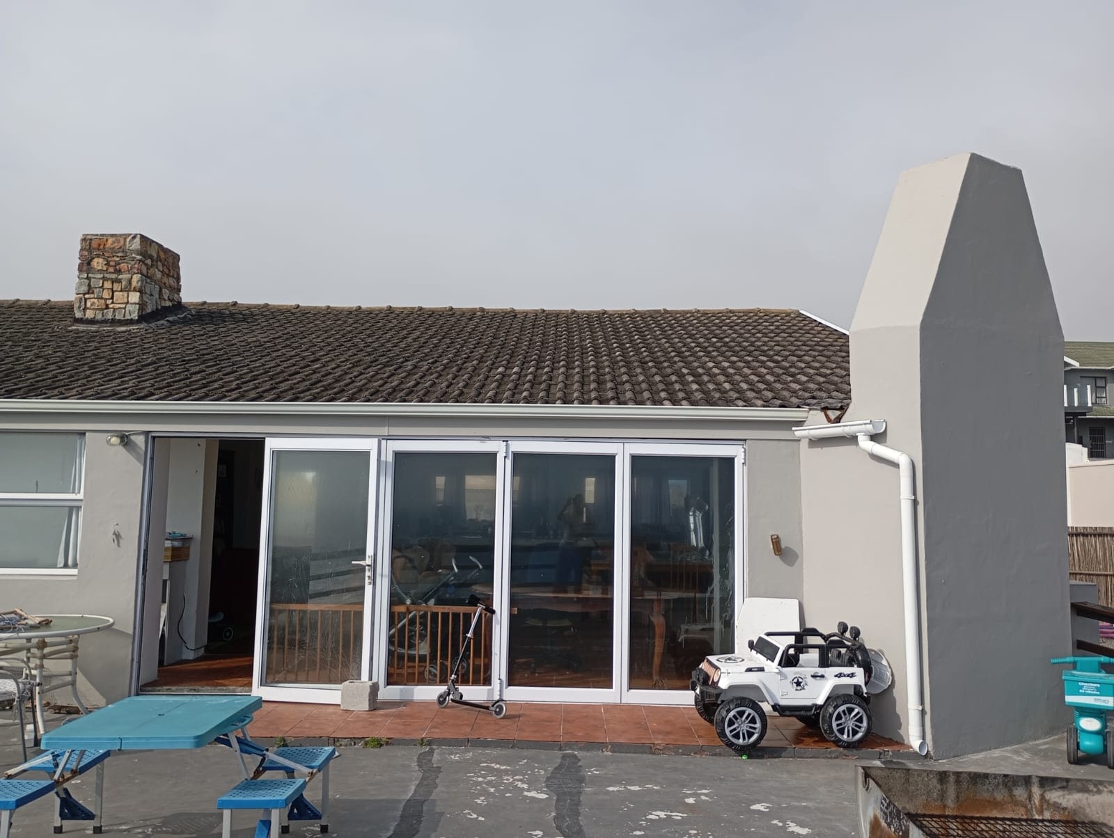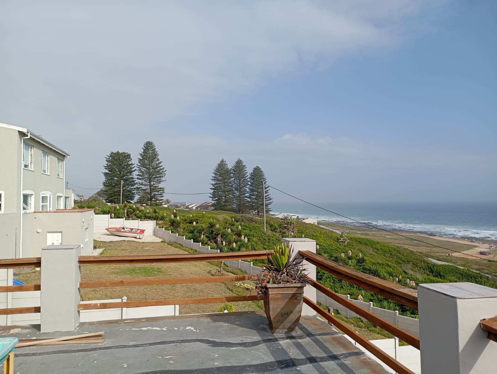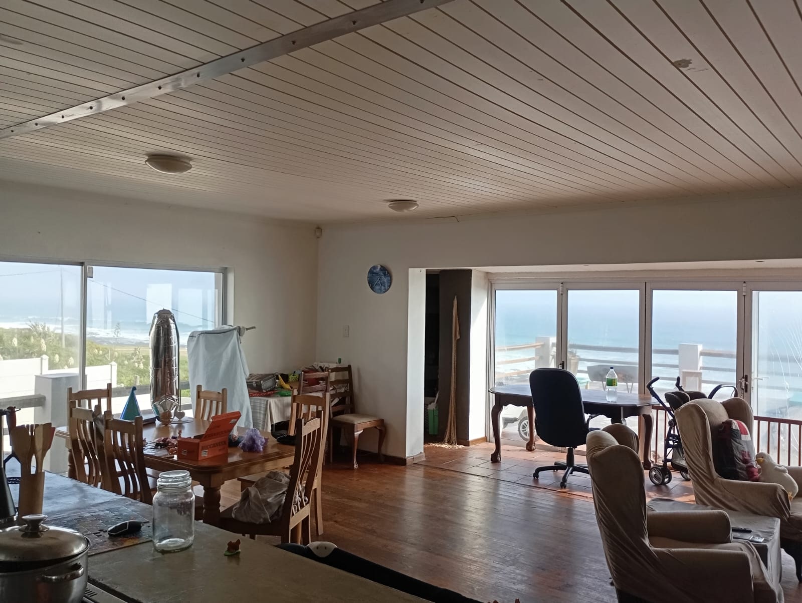 Panoramic sea views set the tone for this exceptional property. The home features an open-plan kitchen and living area that flows seamlessly onto the stoep, offering spectacular ocean views. The main house comprises 3 spacious bedrooms and 2.5 bathrooms, as well as a tandem garage. An added bonus is a self-contained 2-bedroom flat with 1 bathroom, open-plan kitchen, and carport — ideal for extended family, guests, or rental income. The property is fully enclosed and pet-friendly, ensuring both comfort and security.
