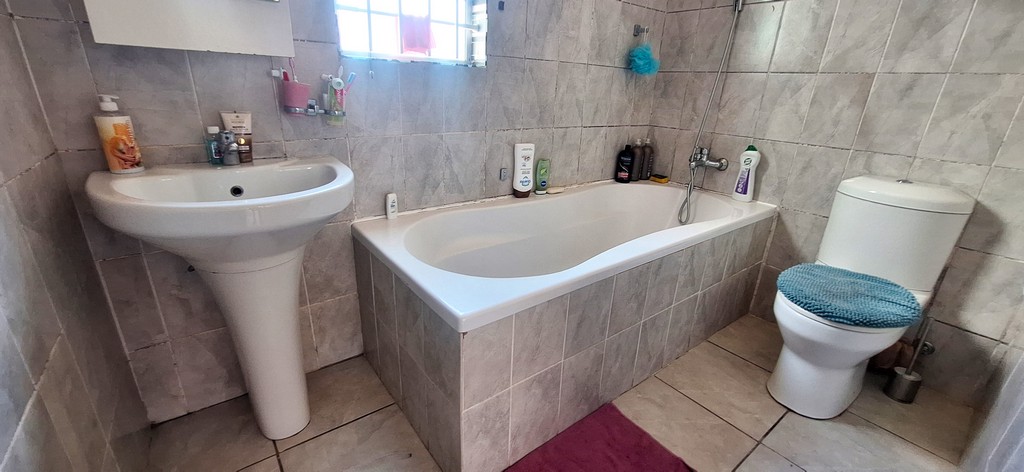 Outside, the fully walled and paved yard is perfect for children and pets, offering a safe and low-maintenance outdoor space. The covered outdoor braai area is ideal for relaxed entertaining, and the property also features a single garage with a paved driveway for secure parking.