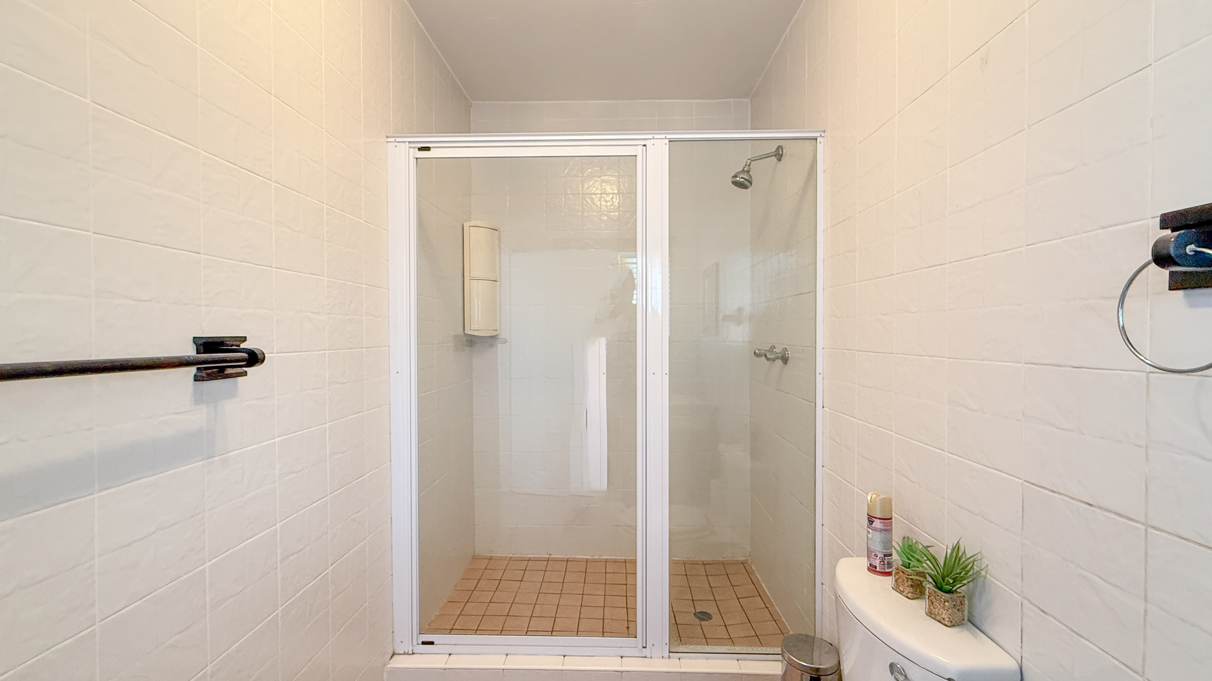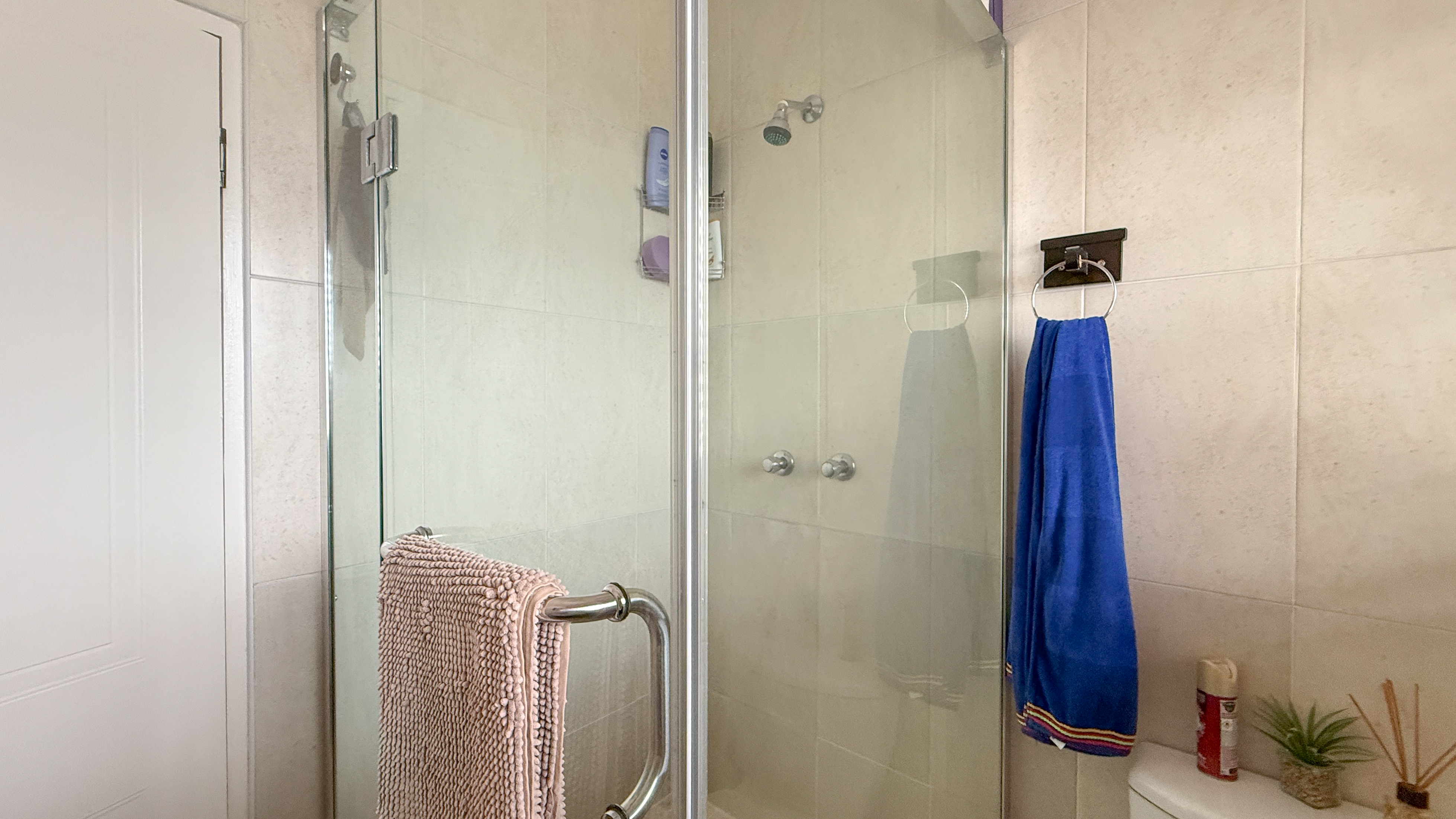 Main en-suite situated upstairs with an air conditioner and abundant cupboard space.