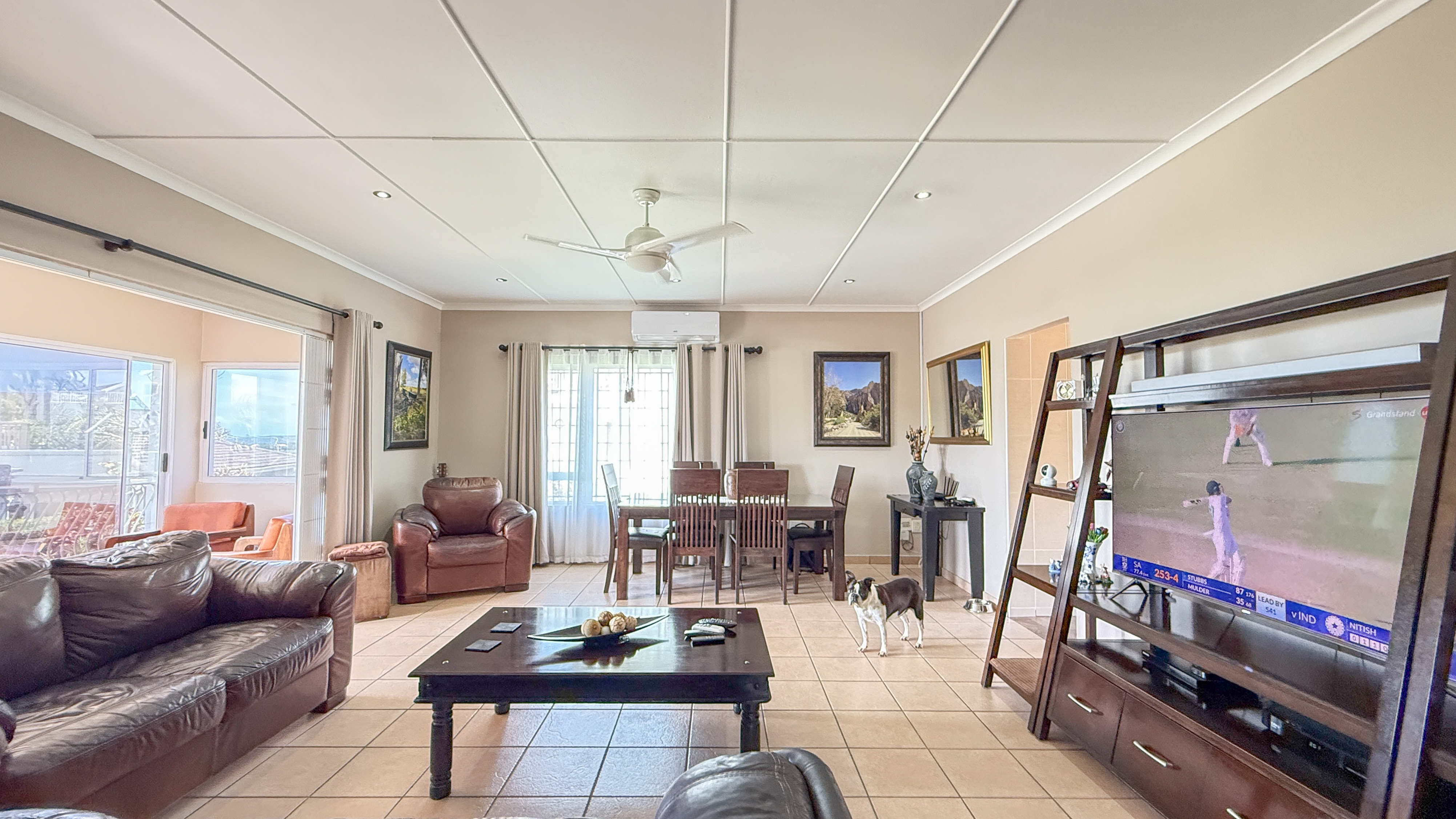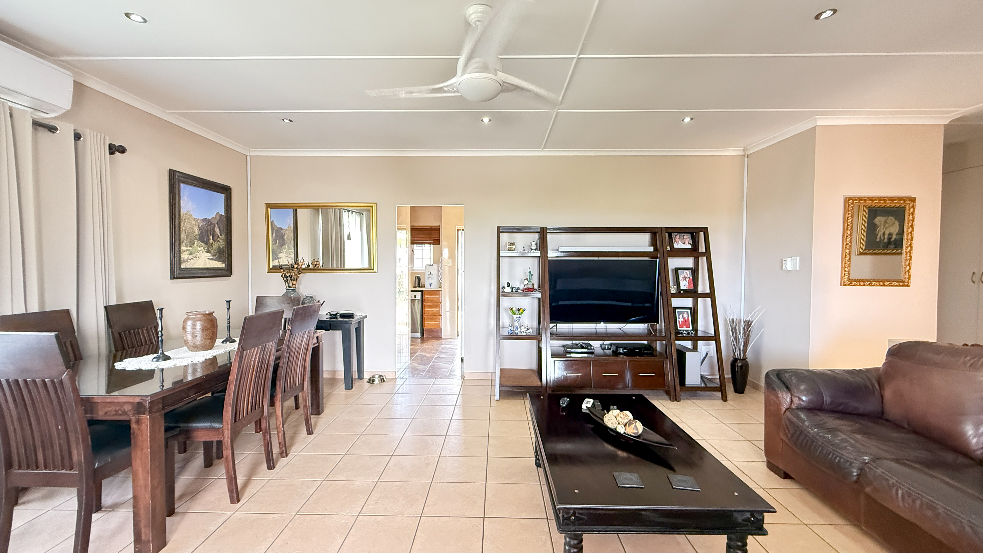 Bright and airy dining and lounge area, complete with a ceiling fan and aircon – perfect for family time.