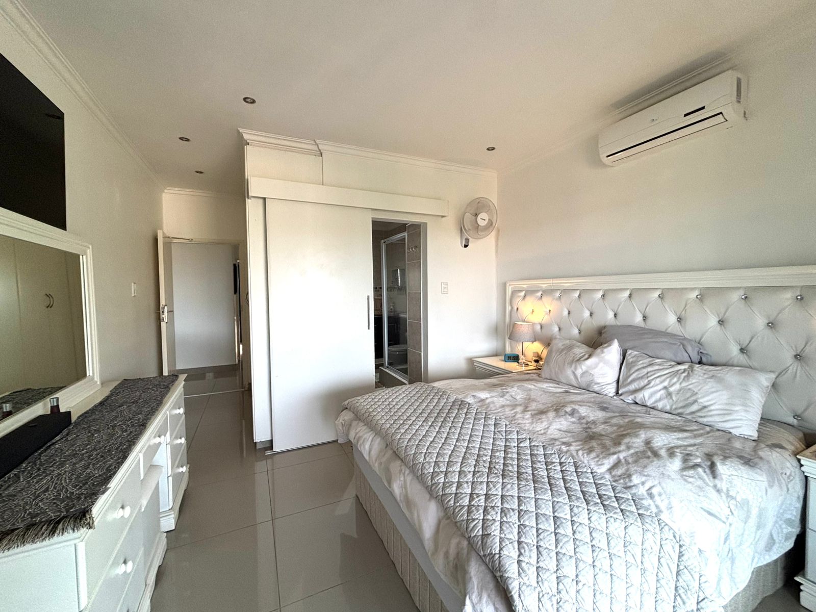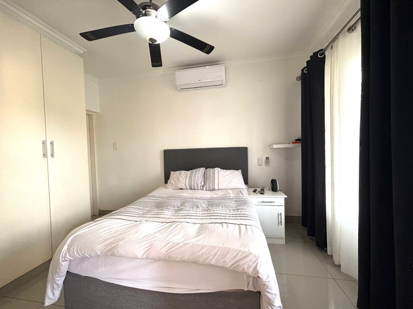 The main bedroom and second bedroom are conveniently located on the same level as the living area, both equipped with ceiling fans and air conditioning. The main suite opens on to the main balcony and features a walk-in closet for ample storage.