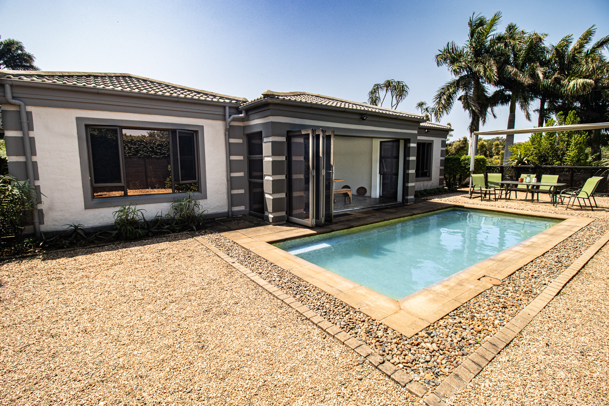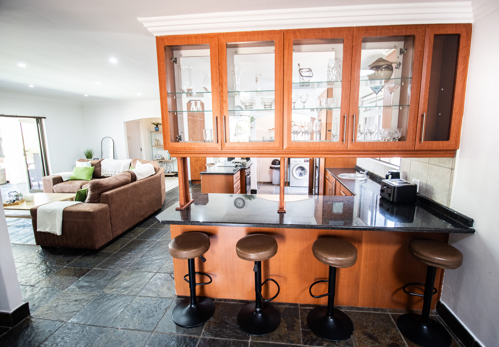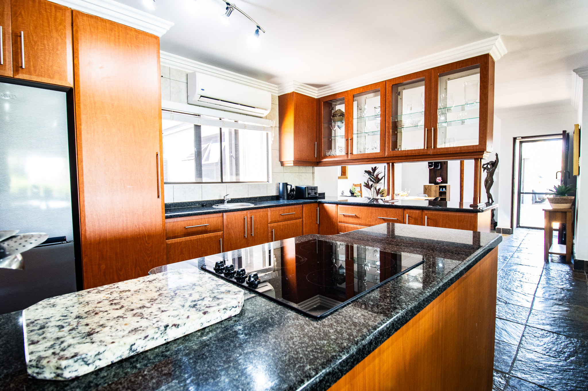 Exclusive Sole Mandate - Immaculate, Interesting, spacious & homely - all wrapped in this package. 4 bedrooms with 2 en-suite bathrooms and a 3rd family bathroom with shower and bath. Study + additional open area that can be used as photo gallery, small lounge or computer gaming station. Open plan living and dining with fitted kitchen, granite tops, and scullery with space for 2 undercounter appliances. Large enclosed, paved yard area.