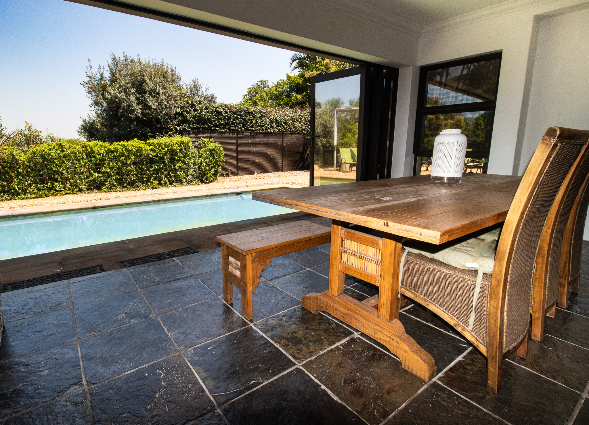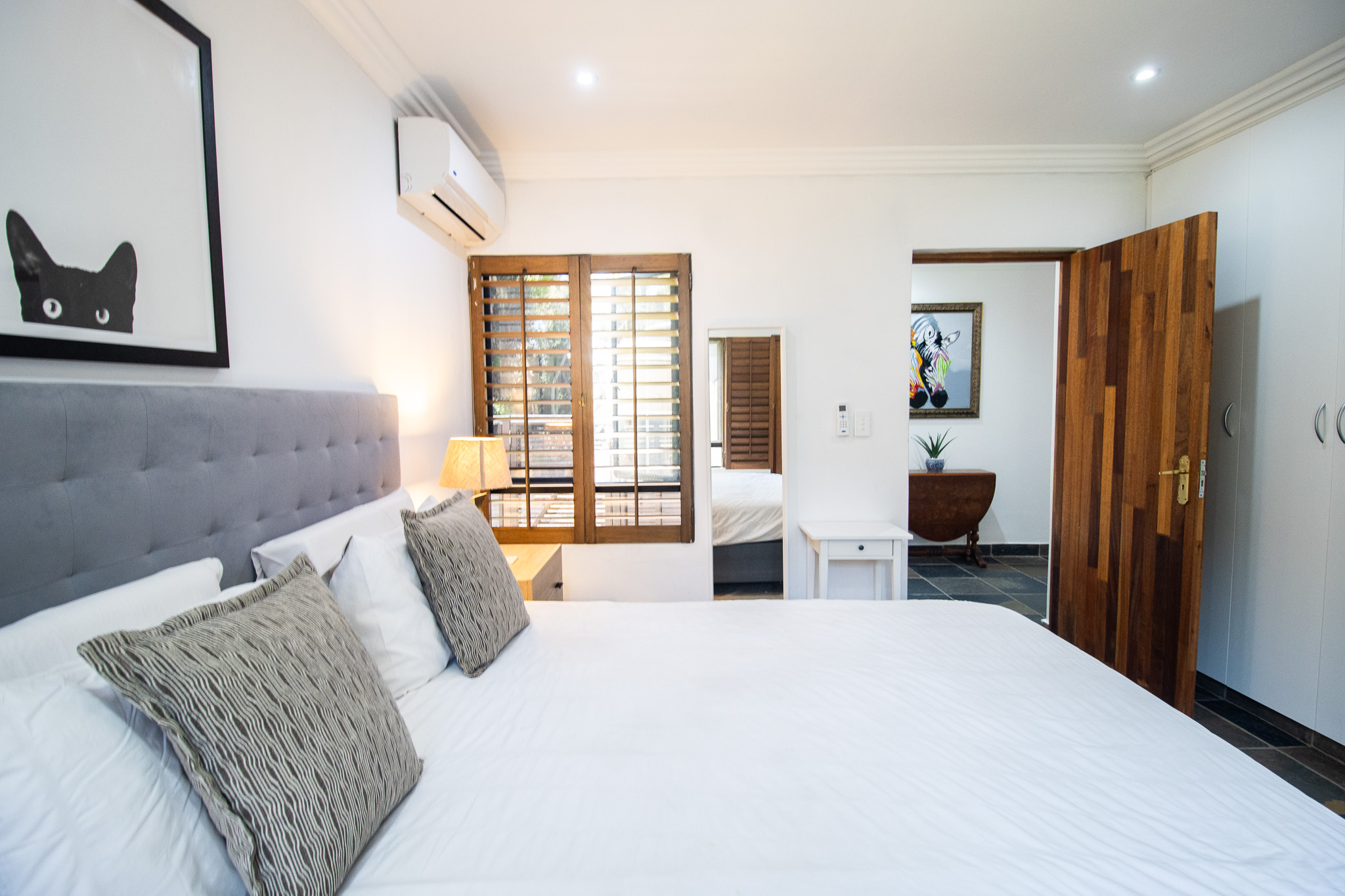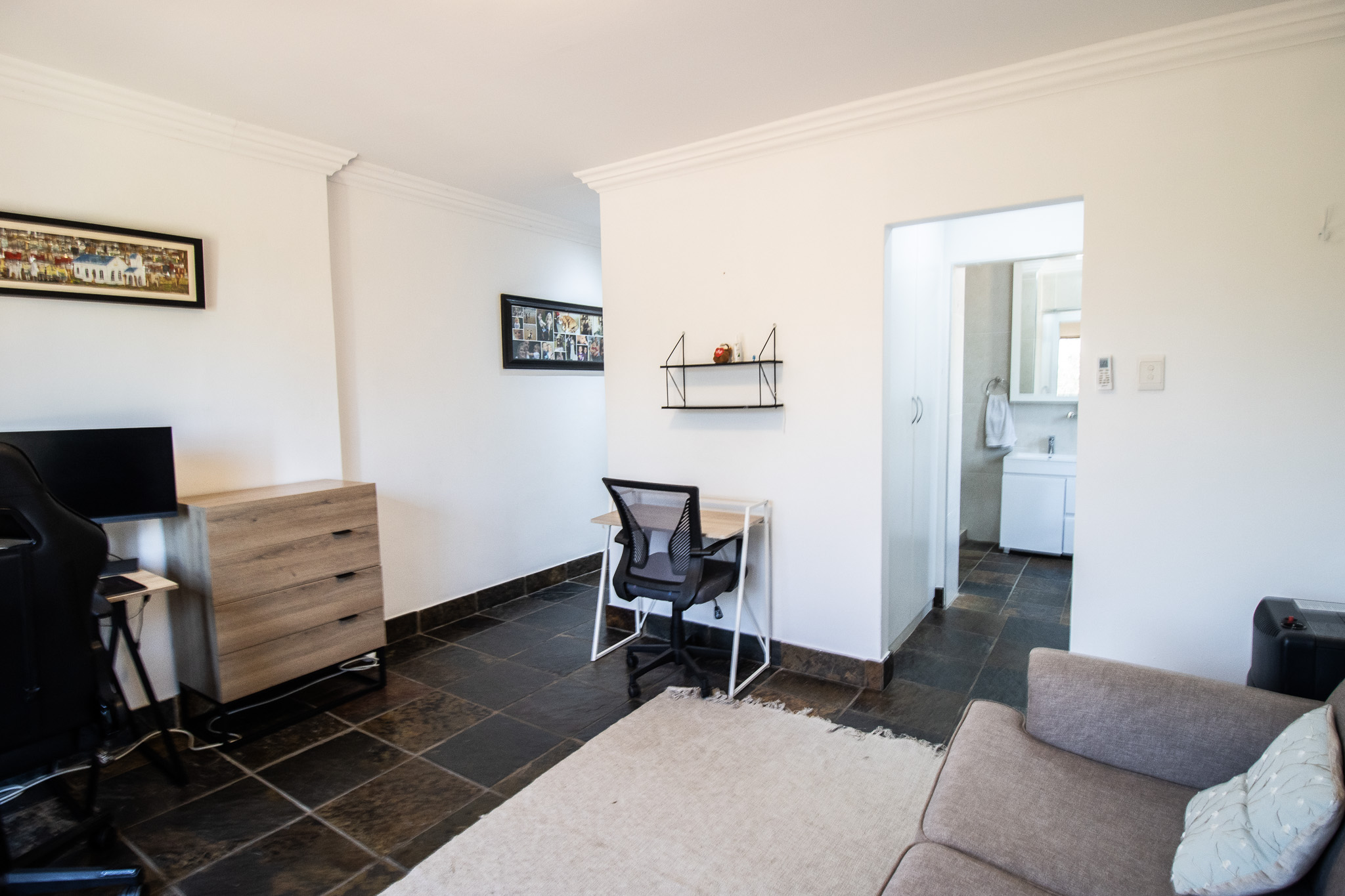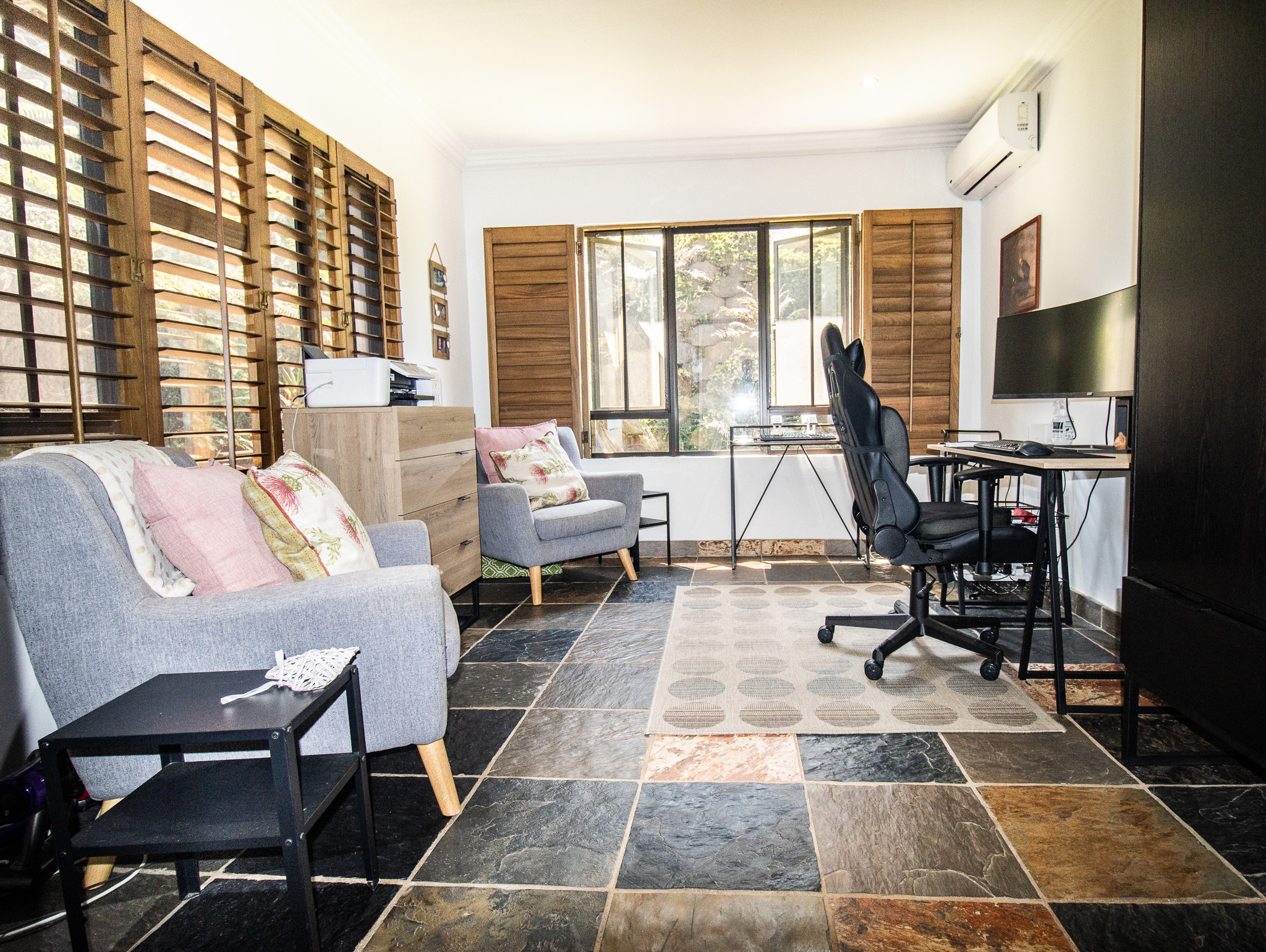 Exclusive Sole Mandate - Immaculate, Interesting, spacious & homely - all wrapped in this package. 4 bedrooms with 2 en-suite bathrooms and a 3rd family bathroom with shower and bath. Study + additional open area that can be used as photo gallery, small lounge or computer gaming station. Open plan living and dining with fitted kitchen, granite tops, and scullery with space for 2 undercounter appliances. Large enclosed, paved yard area.