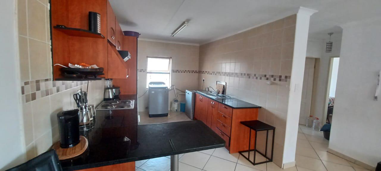 Both bedrooms include built-in cupboards, with the main bedroom spacious enough to accommodate a desk, ideal for remote work or study.