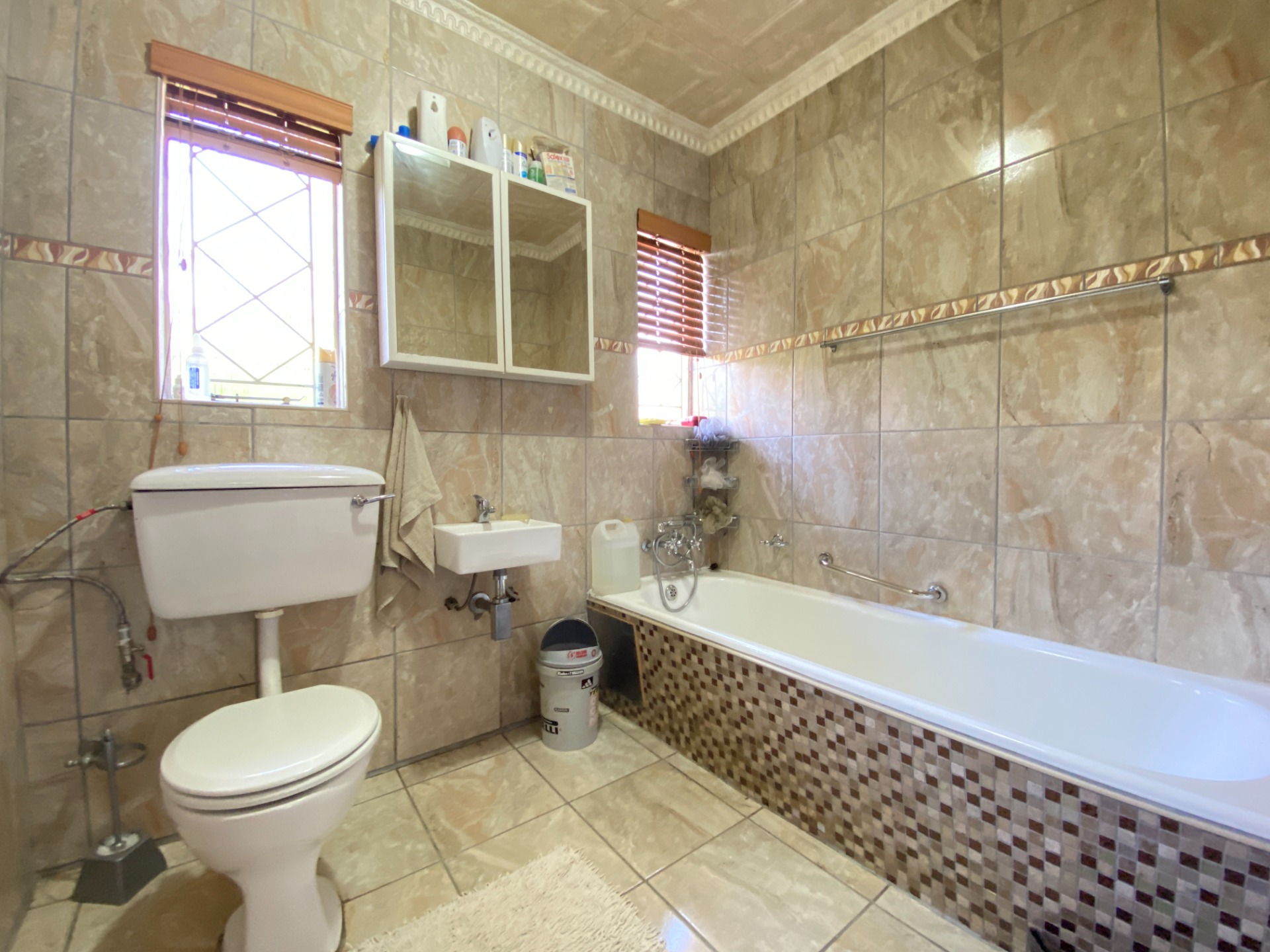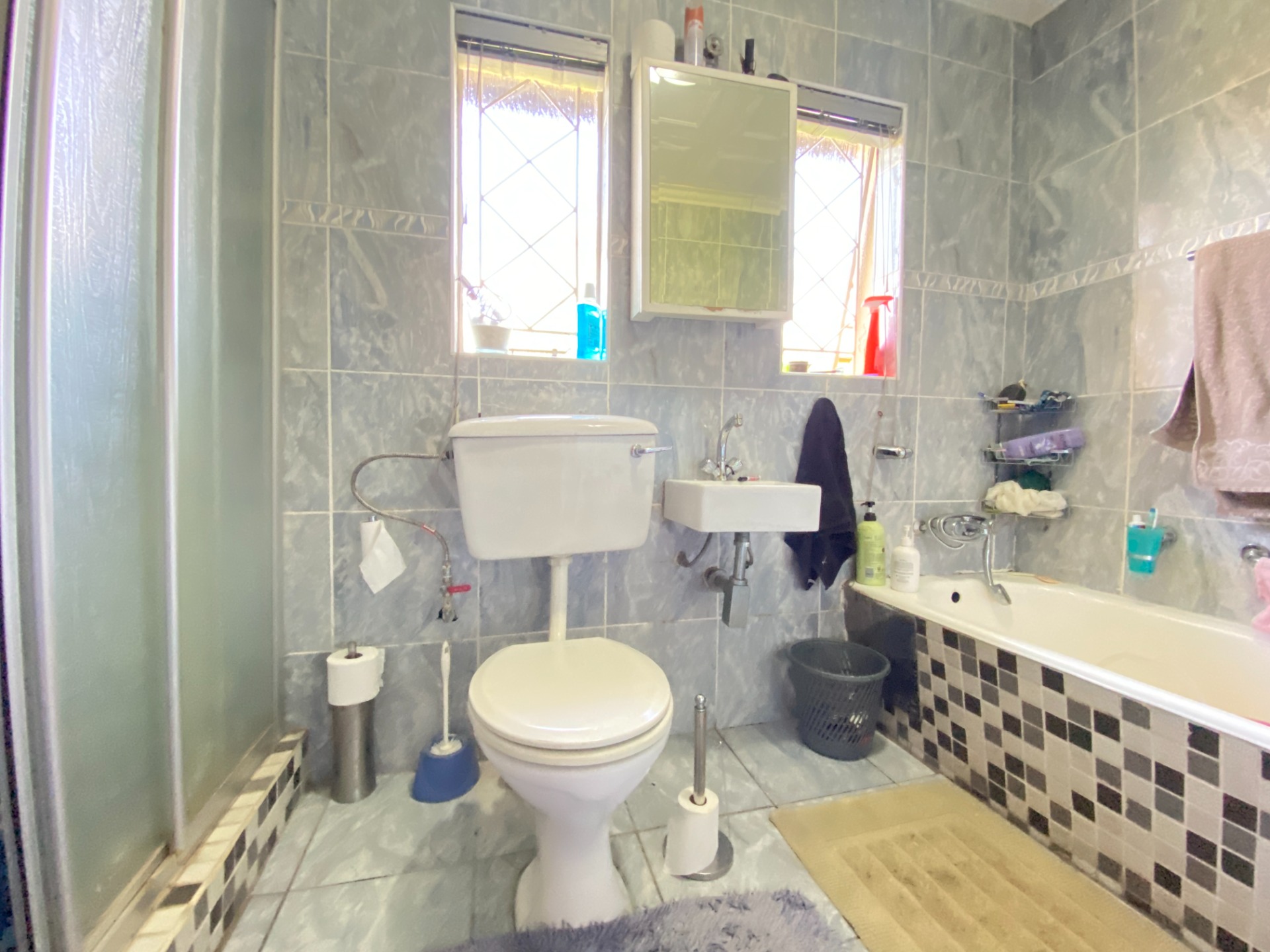 The property embraces energy efficiency with a 5Kva inverter system, a lithium battery, and six solar panels. Water conservation is addressed with 2500-litre Jojo tanks and a pump. A double carport with automated doors and two entrances, one featuring an extra carport for the flat's tenant, complete this home's practical and energy-saving features.