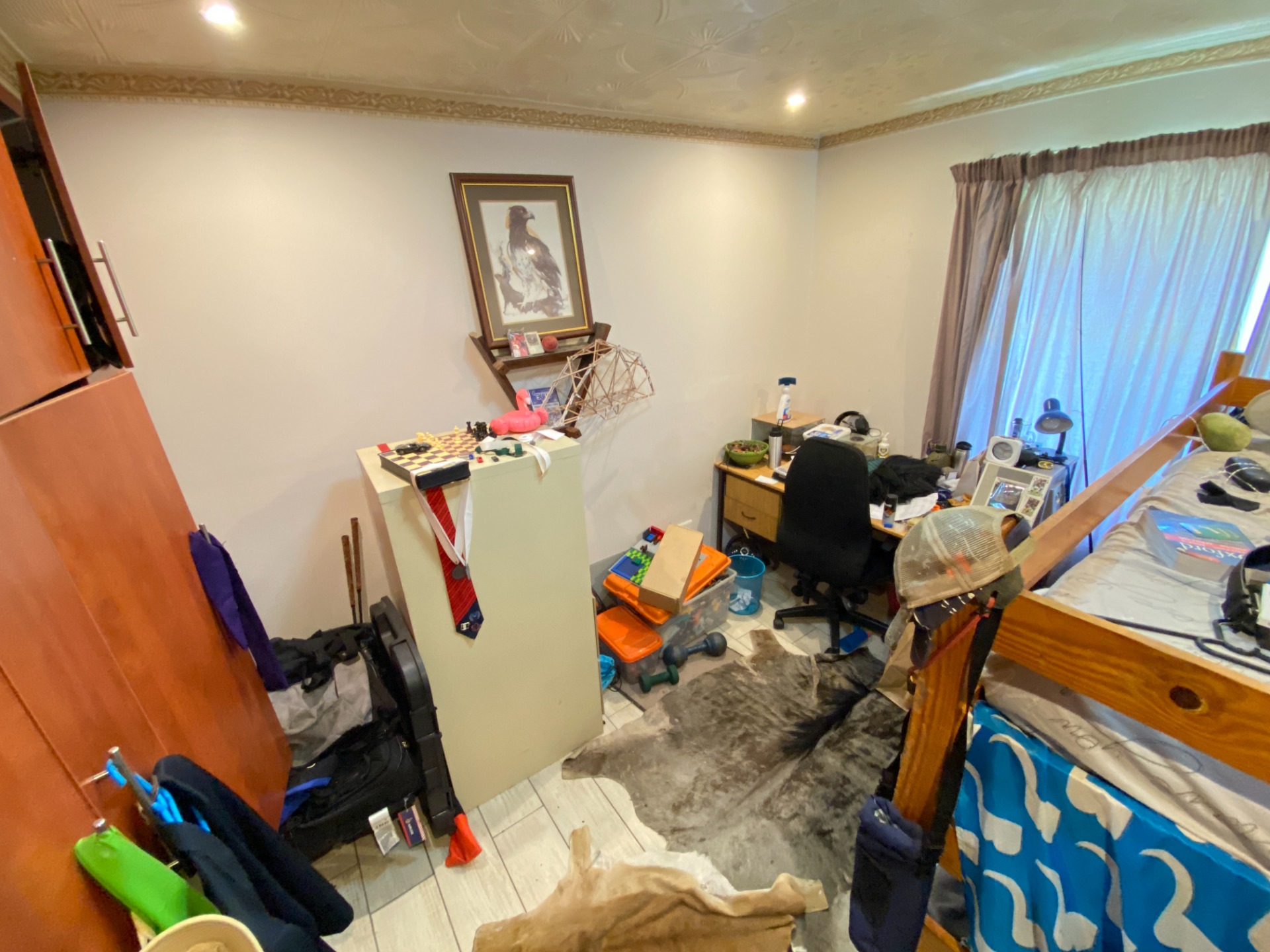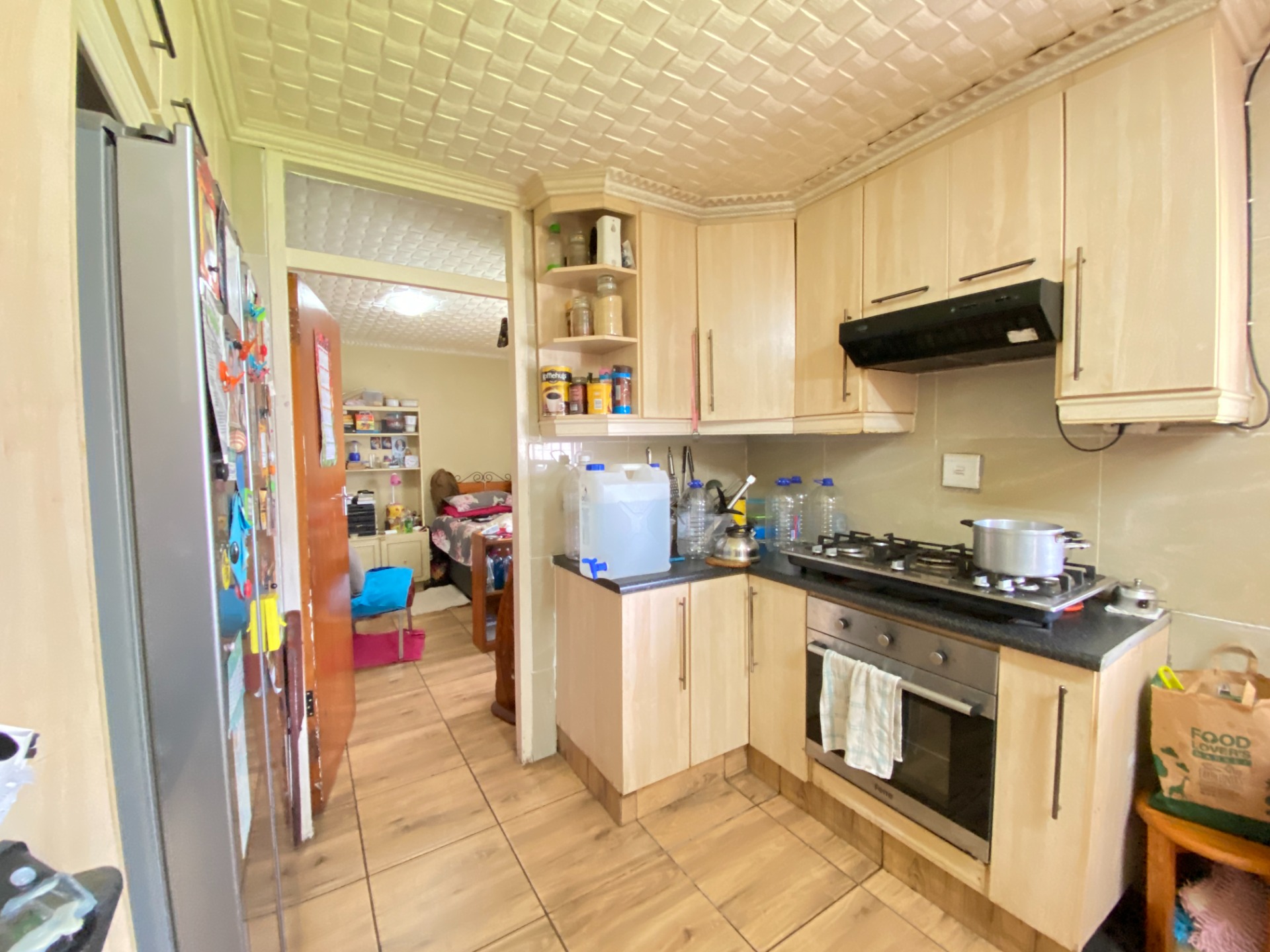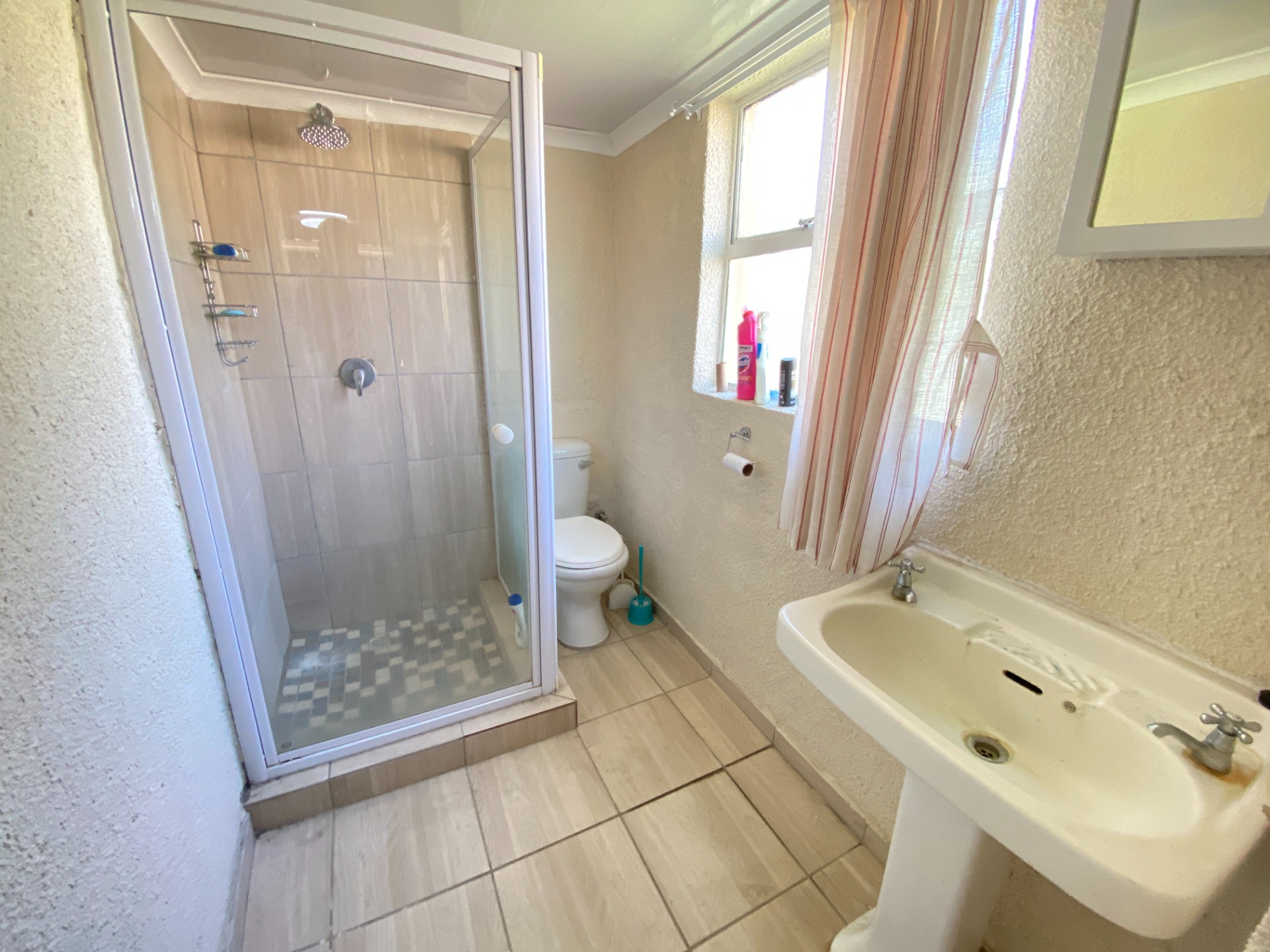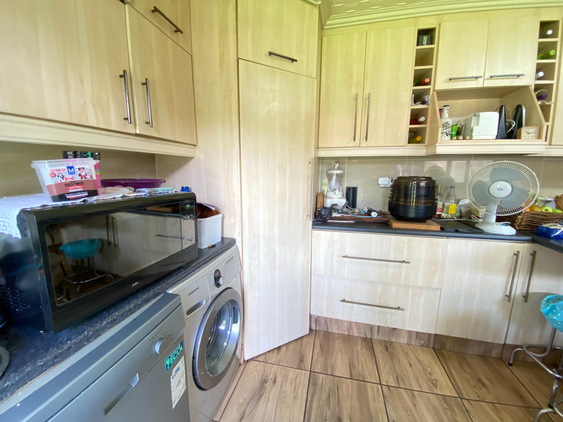 A one-bedroom flat on the property offers a living room and a kitchen with a gas stove and oven. The house has a gas geyser for an efficient hot water supply. The flat provides additional independence with its own gas geyser and prepaid system.