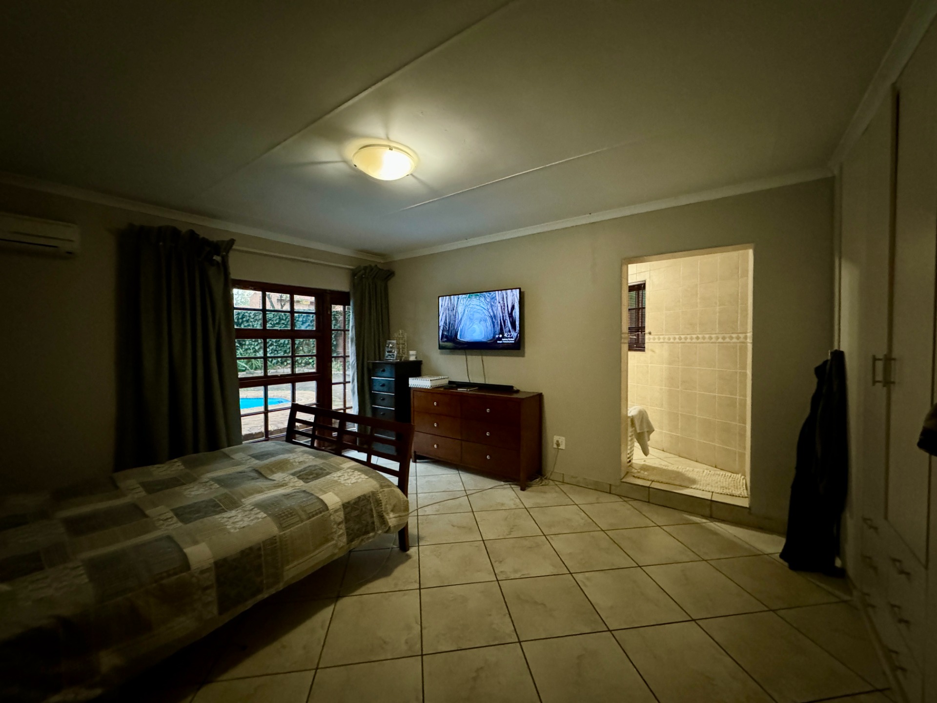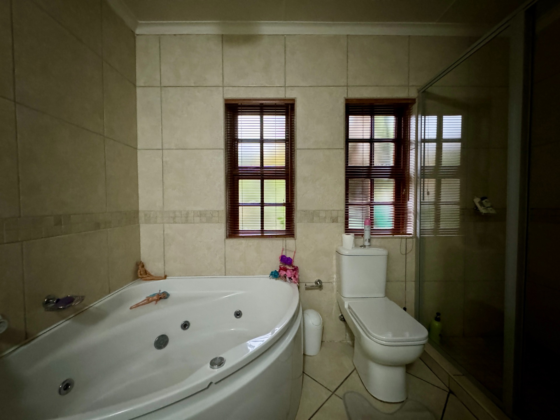 The indoor entertainment area with a built-in braai takes entertainment to a whole new level, making it the perfect place to host gatherings or enjoy leisurely evenings with your loved ones. The charming outdoor space boasts a sparkling swimming pool with a recently installed heat pump, making it perfect for year-round enjoyment. An additional outside braai area adds to the appeal of outdoor entertaining.