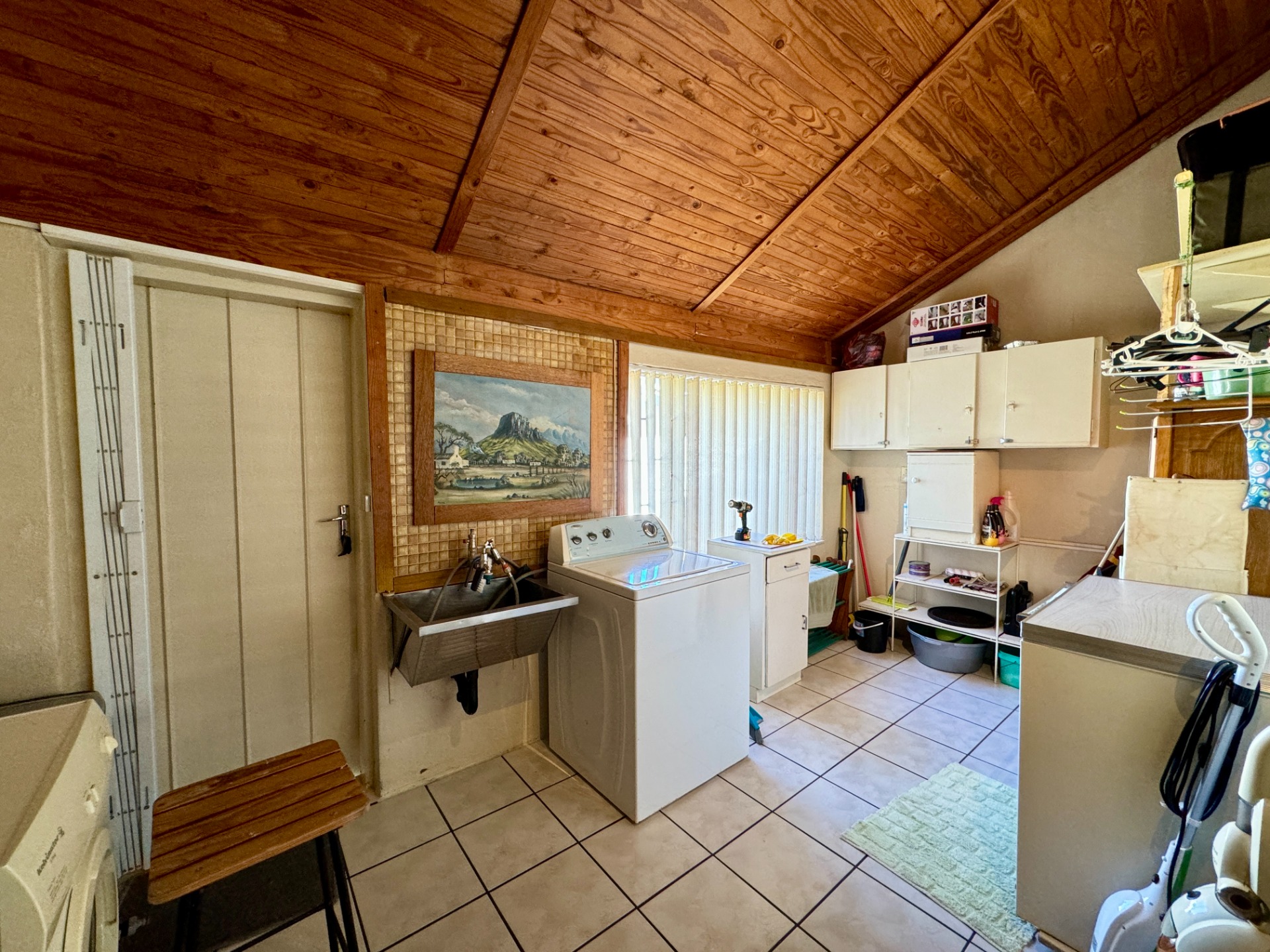 The kitchen is expansive, offering ample cupboard space for storage. In addition, the property boasts two separate living areas and a dedicated dining space, ideal for hosting family gatherings.