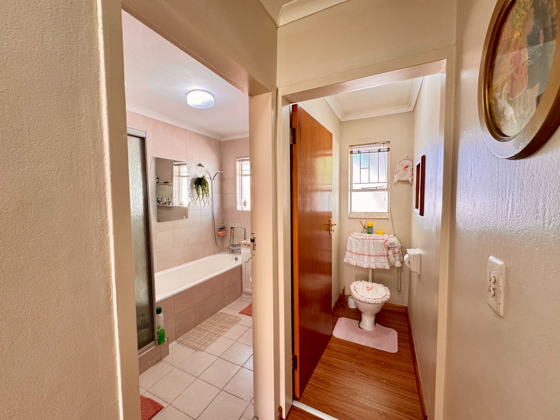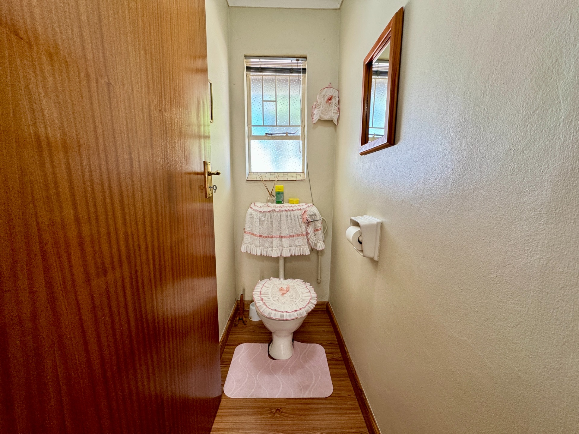 The house features four generously sized bedrooms, each with spacious built-in cupboards. Two full bathrooms and a guest toilet are also included, all adorned with pristine tiling.