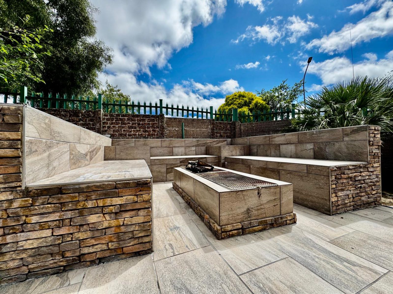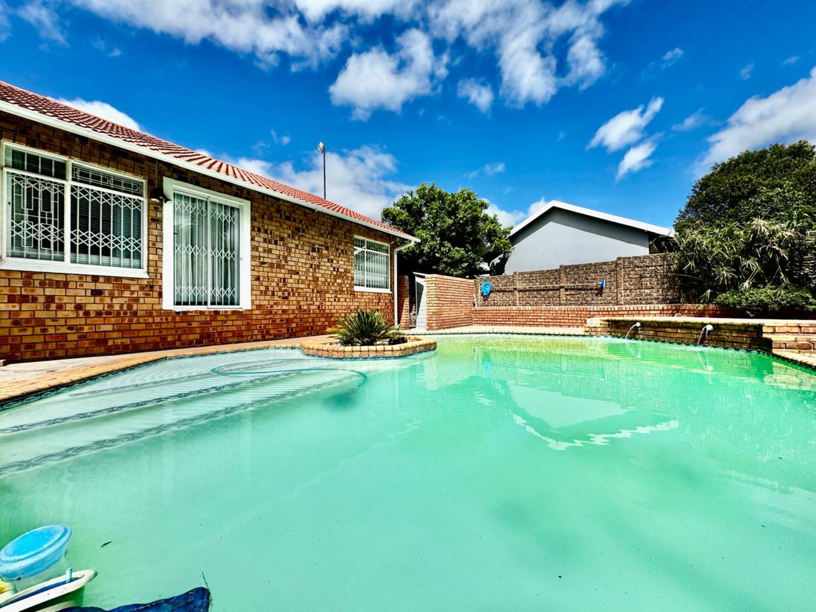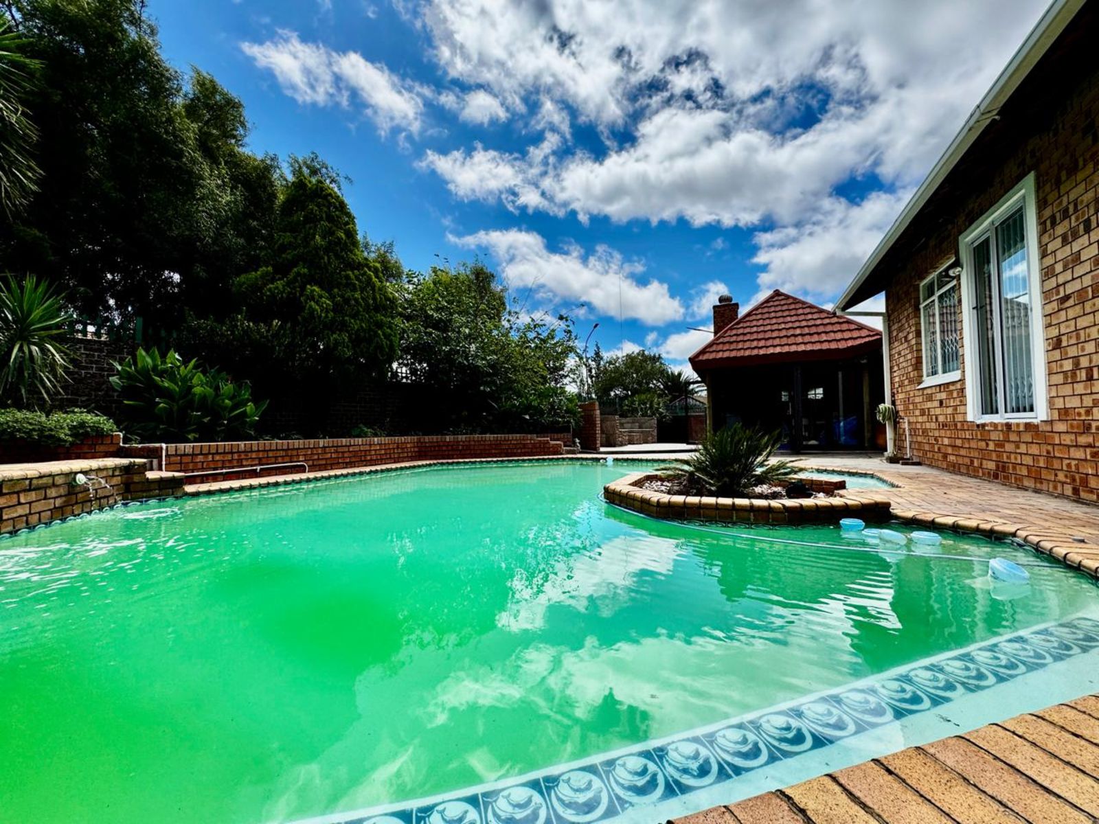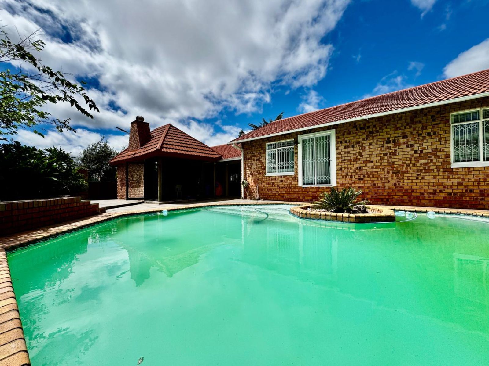 The indoor entertainment area is built for year-round enjoyment, complete with built-in cupboards and a built-in braai—the perfect space for hosting unforgettable get-togethers. Stacking doors seamlessly connect this space to the outdoor entertainment oasis, where you’ll find a sparkling swimming pool and a cozy boma area—ideal for relaxing under the stars.