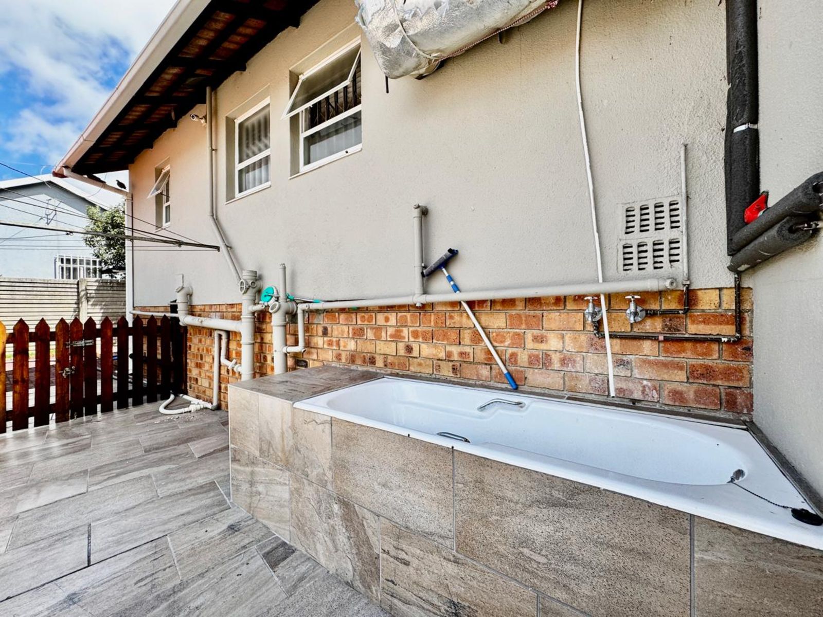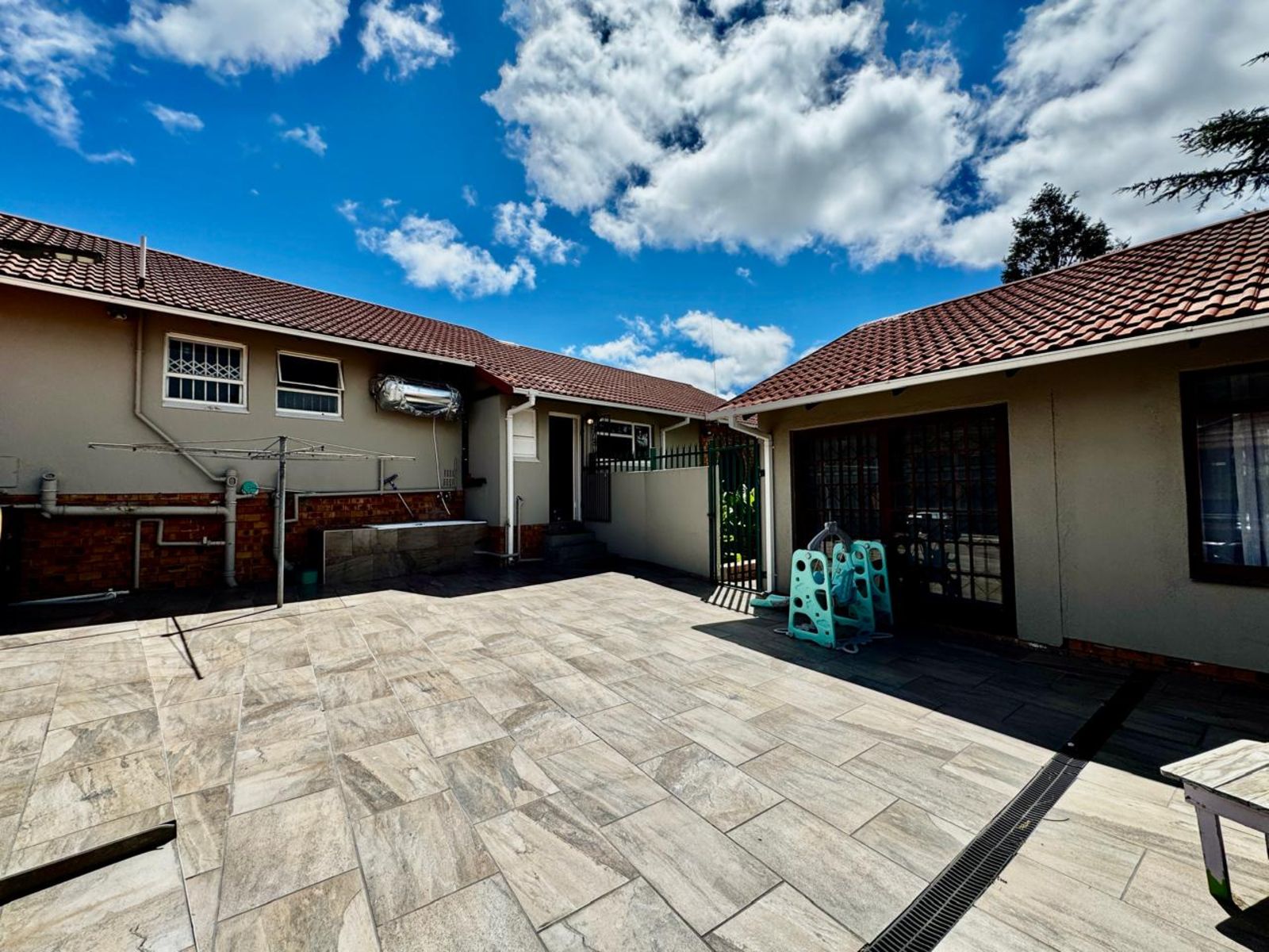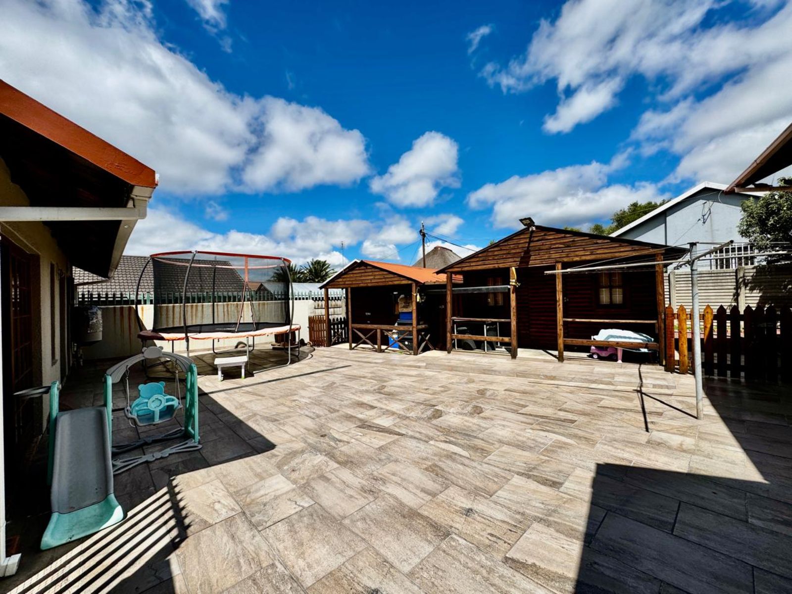 Fully tiled back courtyard with two Wendy houses for extra storage