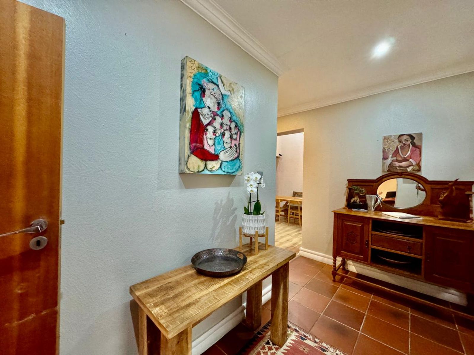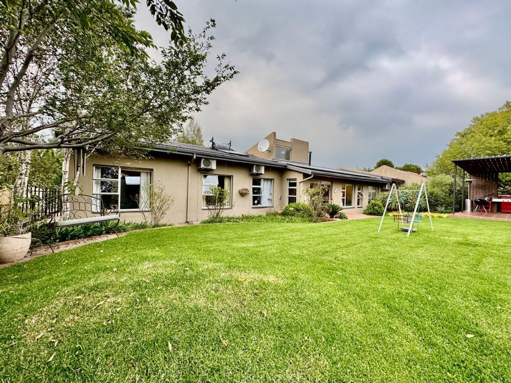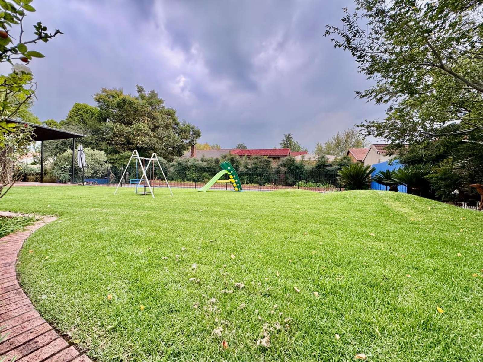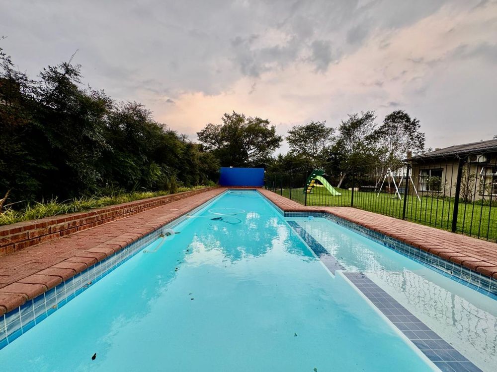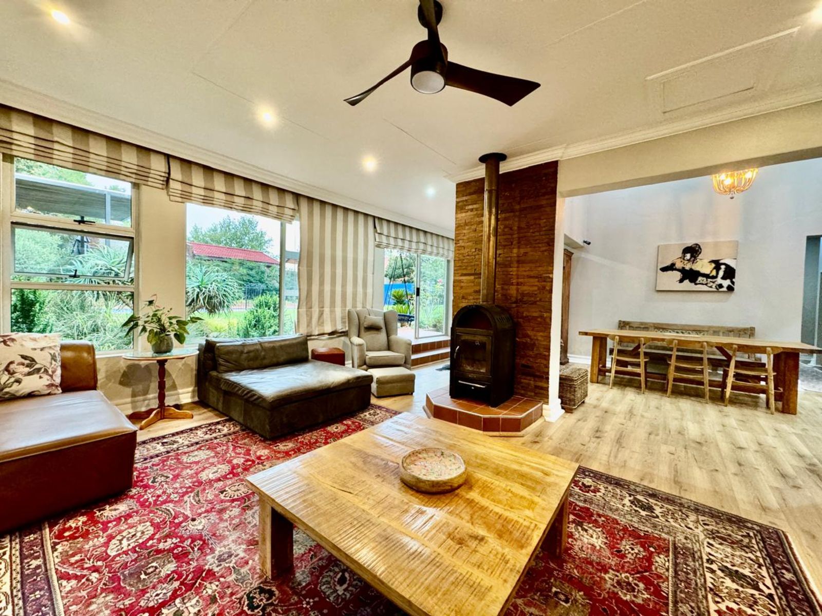 The modern kitchen is equipped with sleek finishes, quality appliances, and elegant lighting, complemented by a separate scullery to keep the entertaining area pristine. The dining area opens directly onto the garden patio, perfect for summer braais and family gatherings.