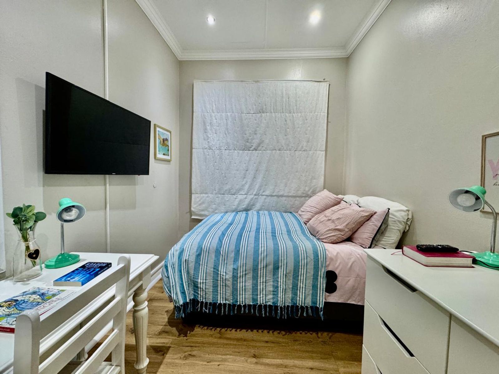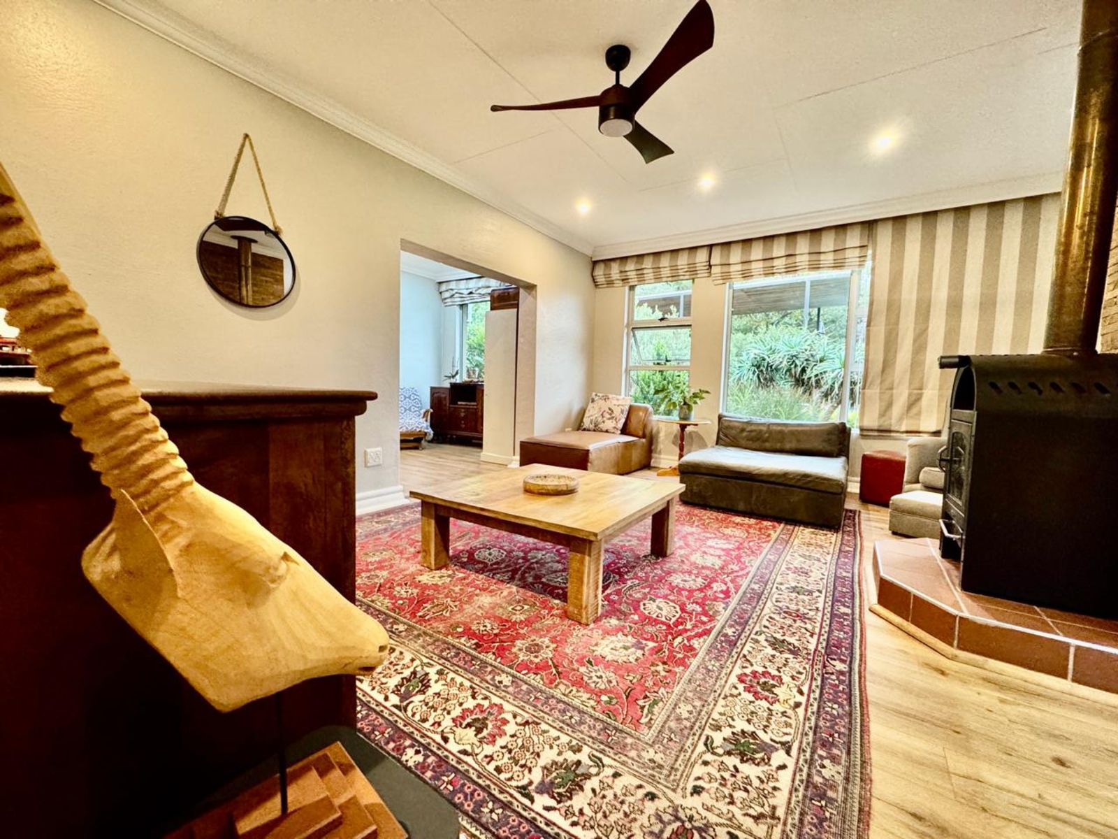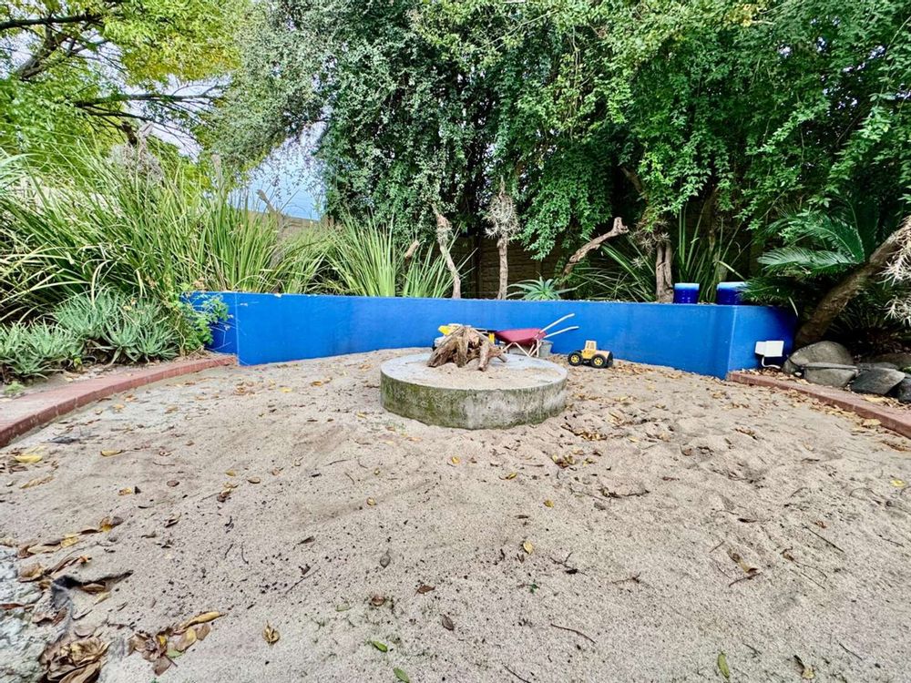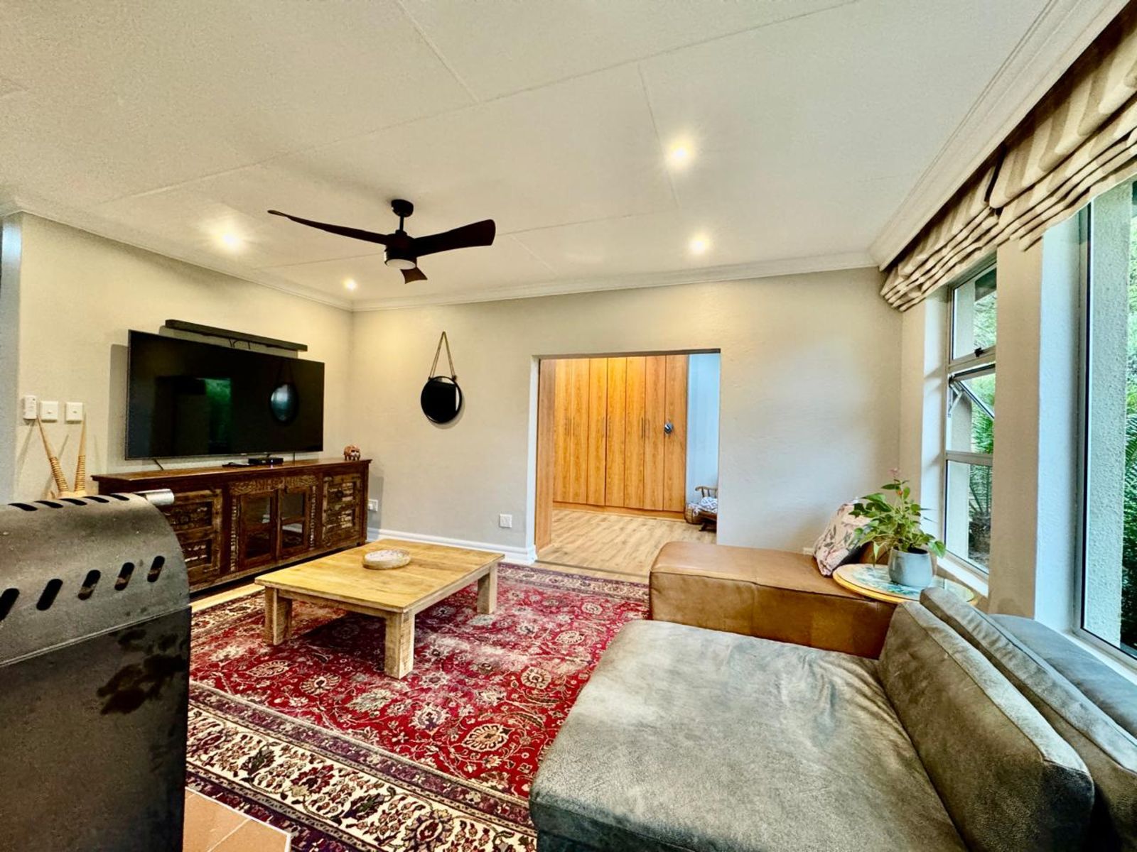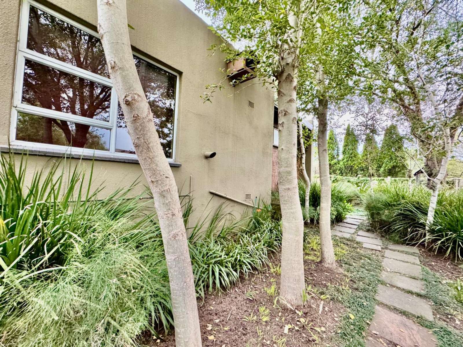 The modern kitchen is equipped with sleek finishes, quality appliances, and elegant lighting, complemented by a separate scullery to keep the entertaining area pristine. The dining area opens directly onto the garden patio, perfect for summer braais and family gatherings.