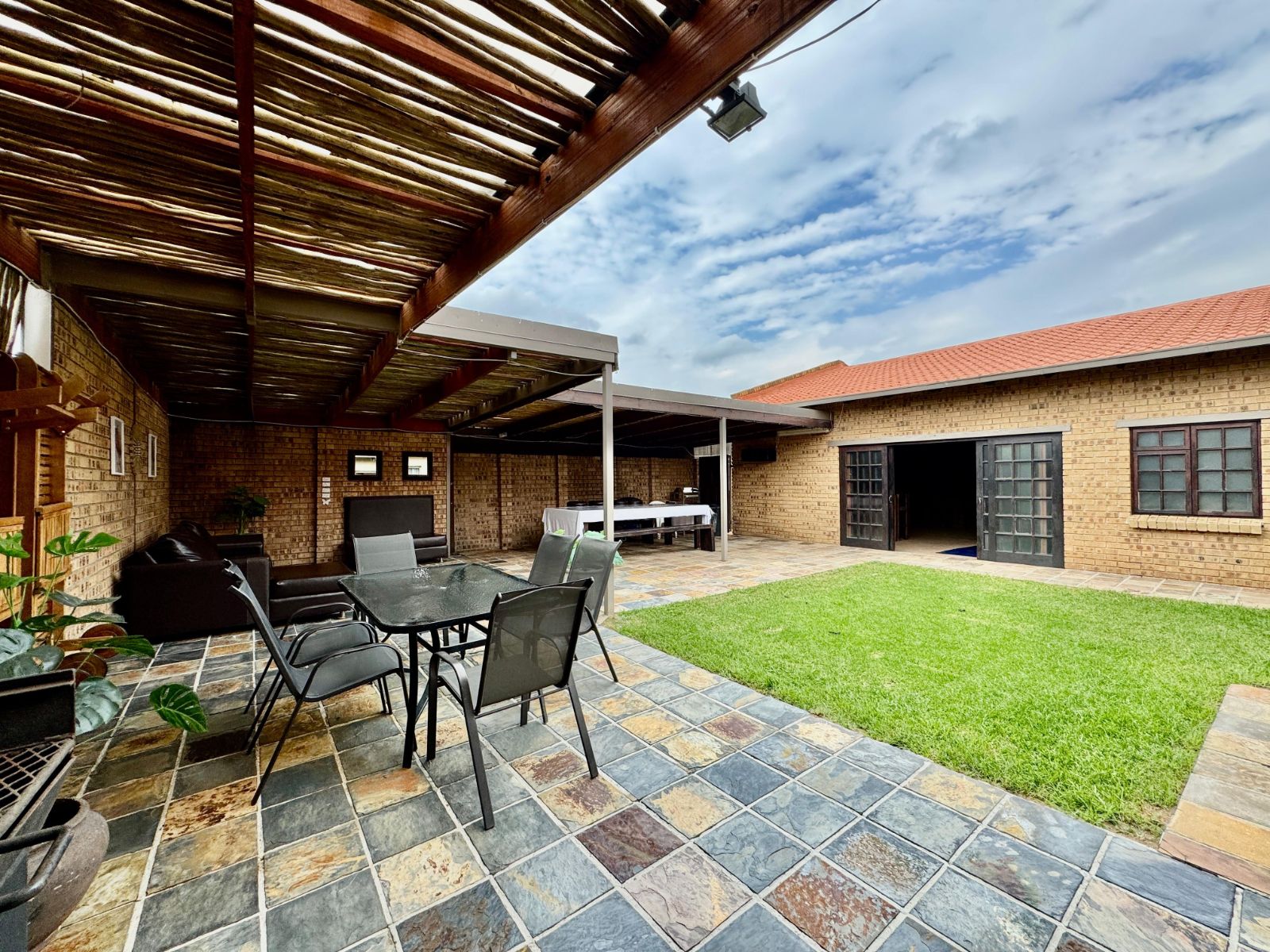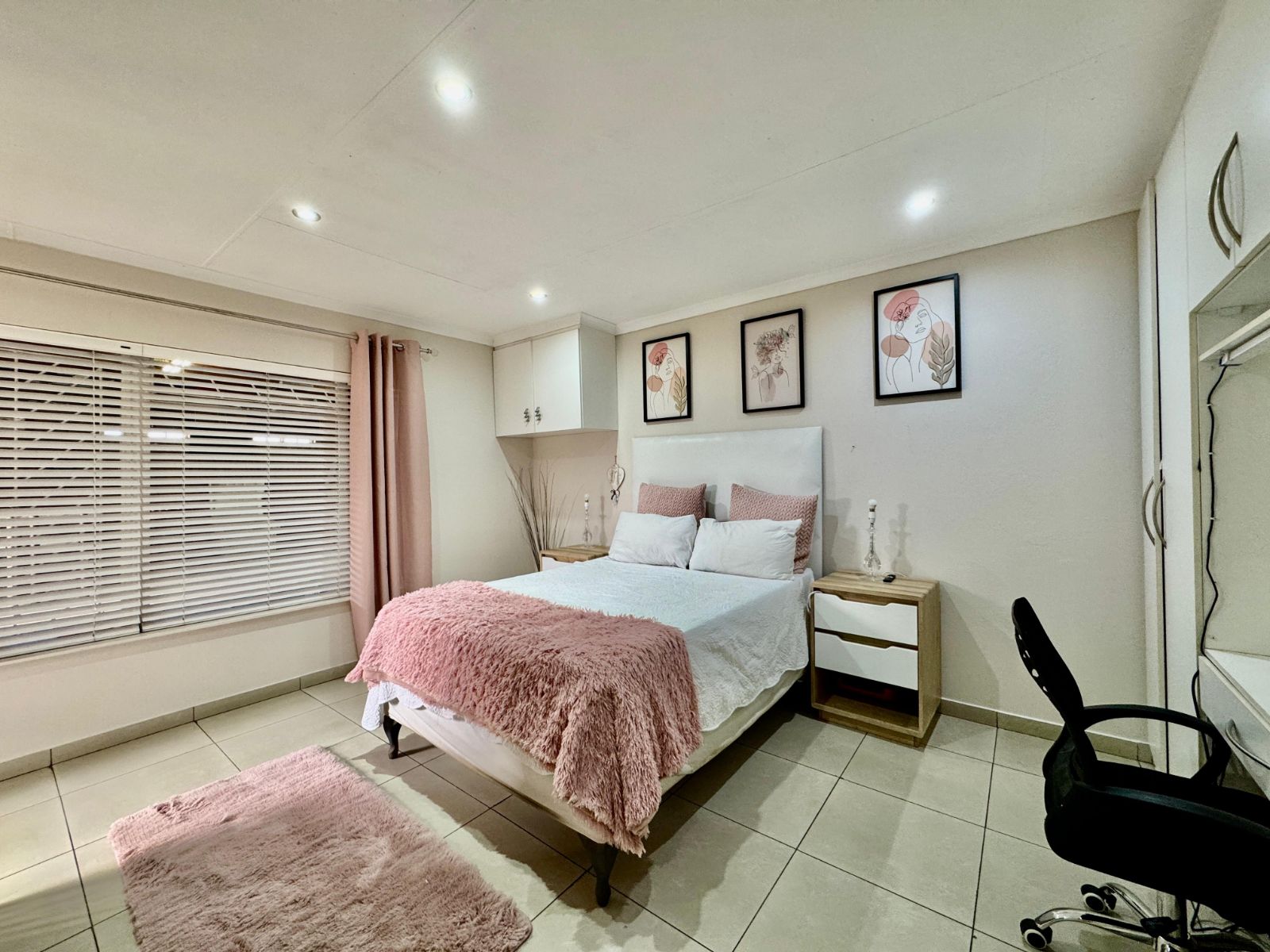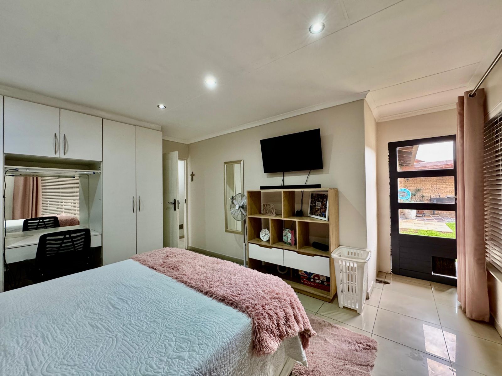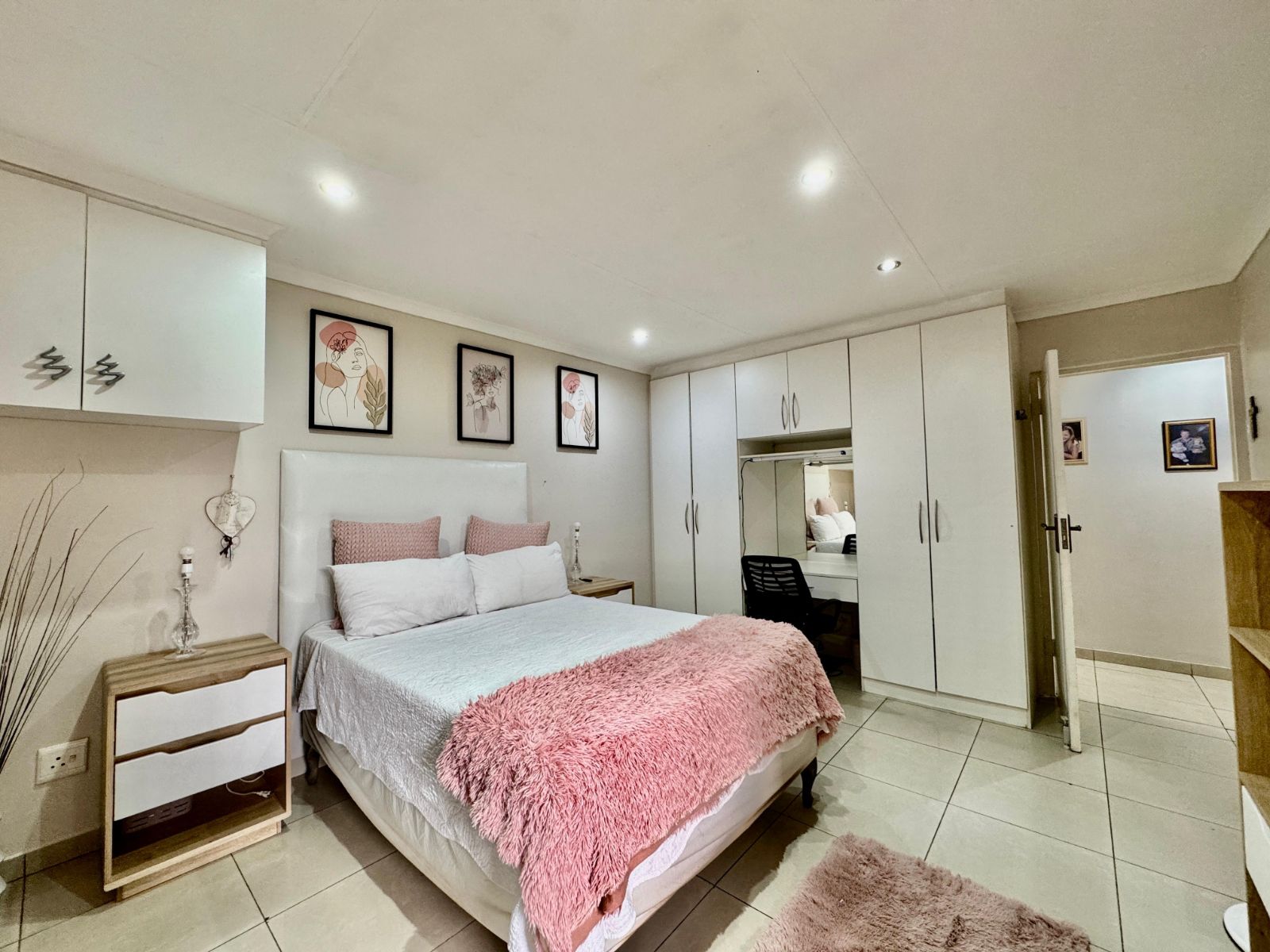This home features four generously sized bedrooms, all with built-in cupboards and fully tiled for easy maintenance. Two of the bedrooms open directly onto a private garden patio – your peaceful morning coffee spot or afternoon chill zone. The main suite is a showstopper with a luxurious walk-in closet and a stunning en-suite bathroom.