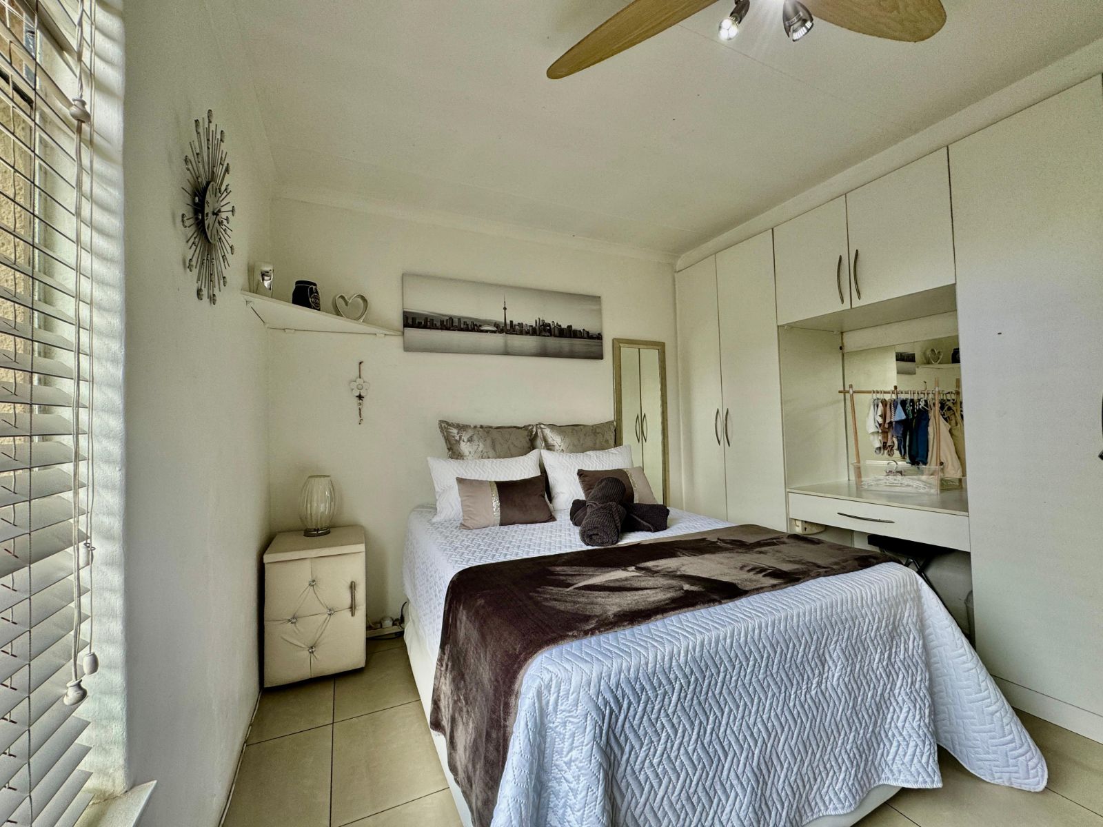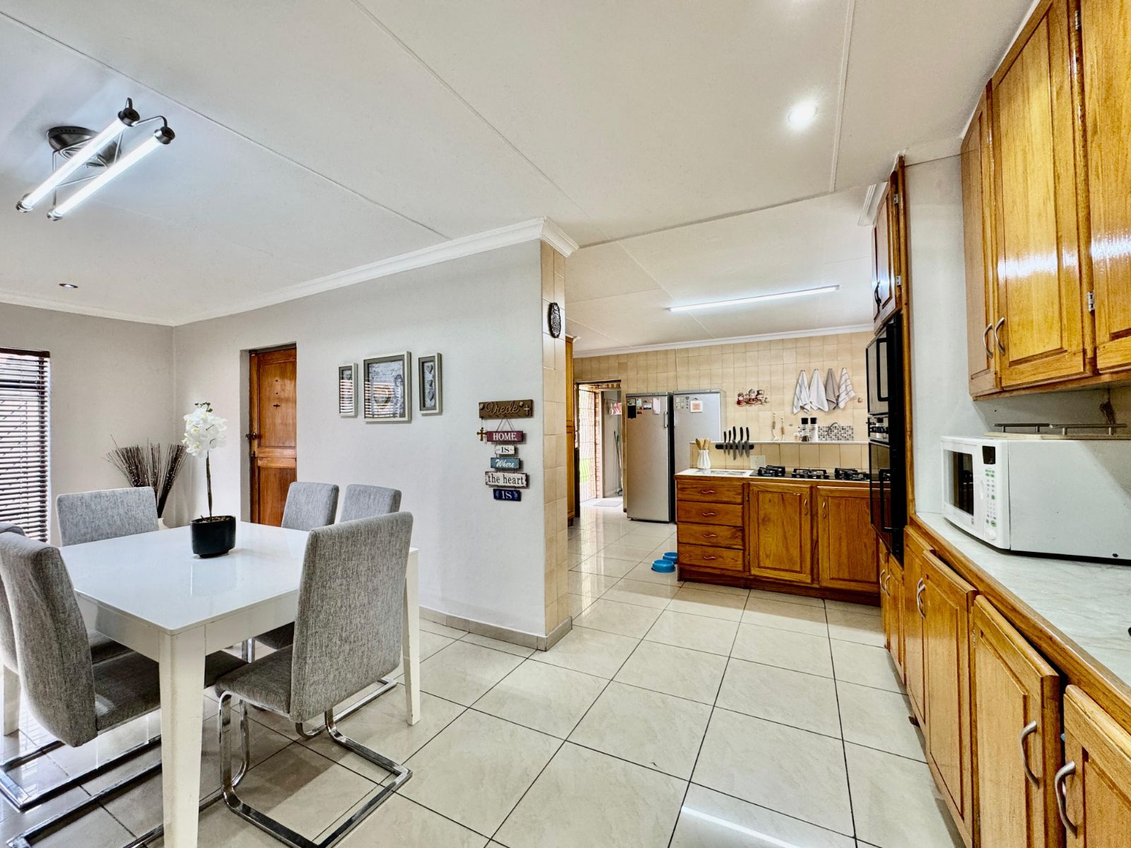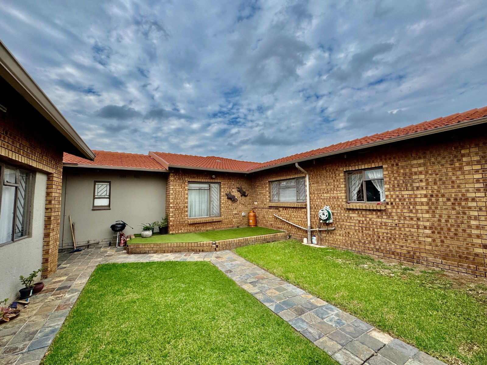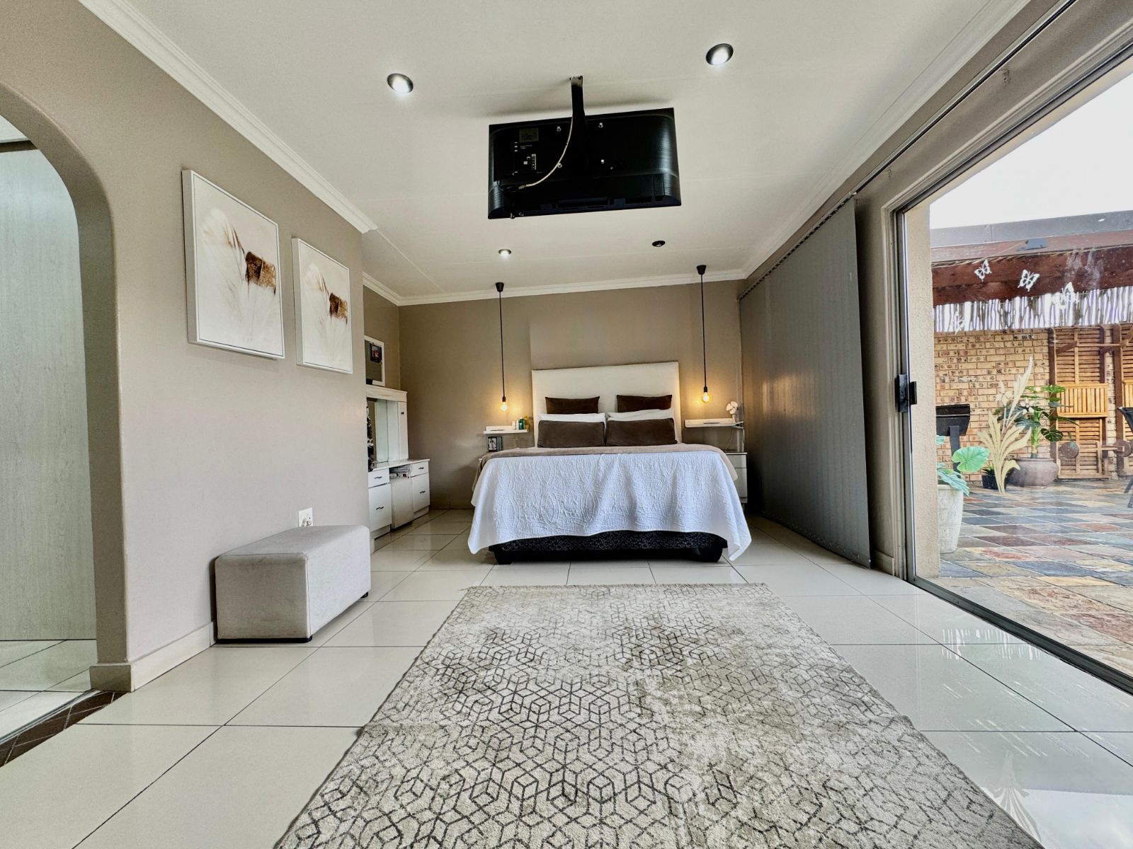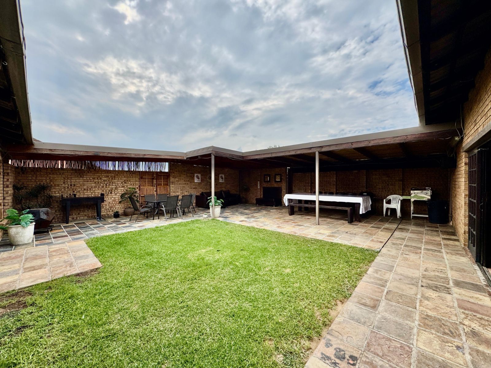 This home features four generously sized bedrooms, all with built-in cupboards and fully tiled for easy maintenance. Two of the bedrooms open directly onto a private garden patio – your peaceful morning coffee spot or afternoon chill zone. The main suite is a showstopper with a luxurious walk-in closet and a stunning en-suite bathroom.