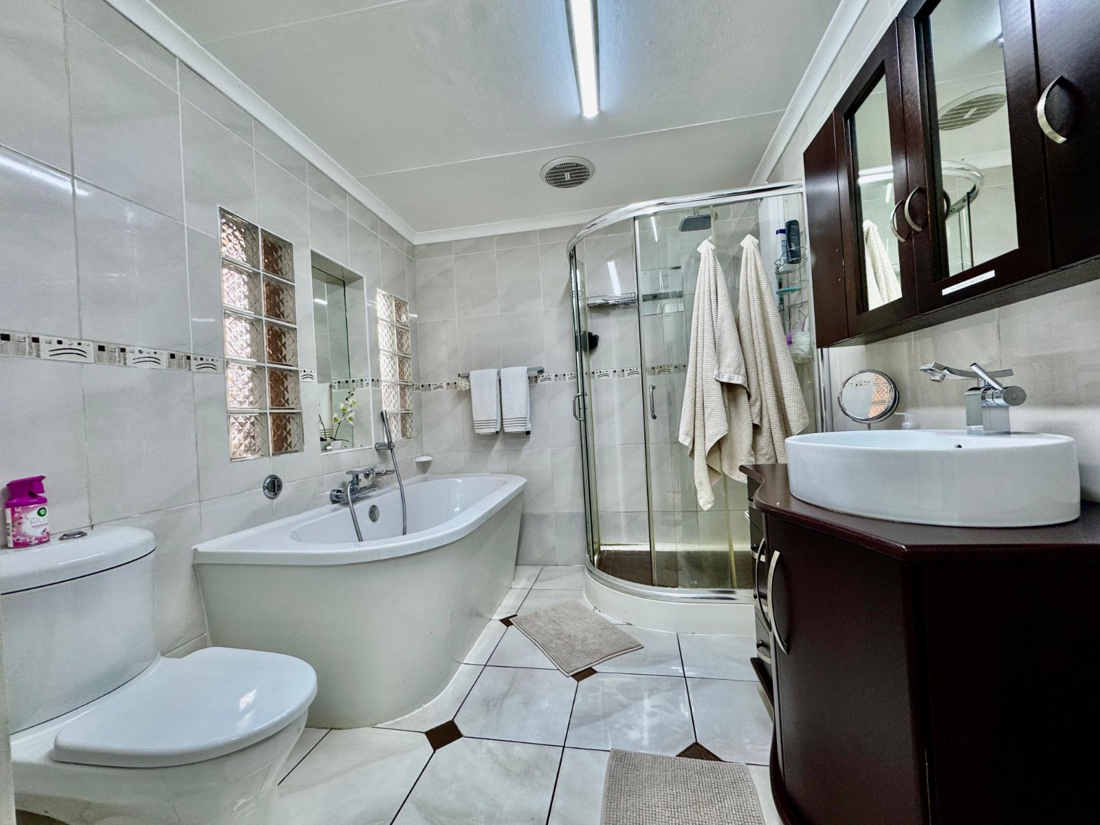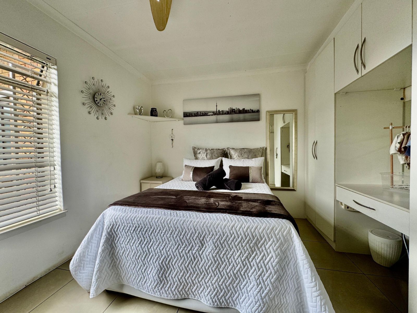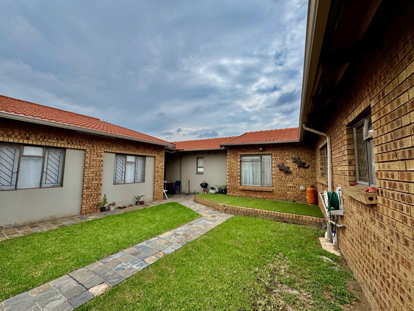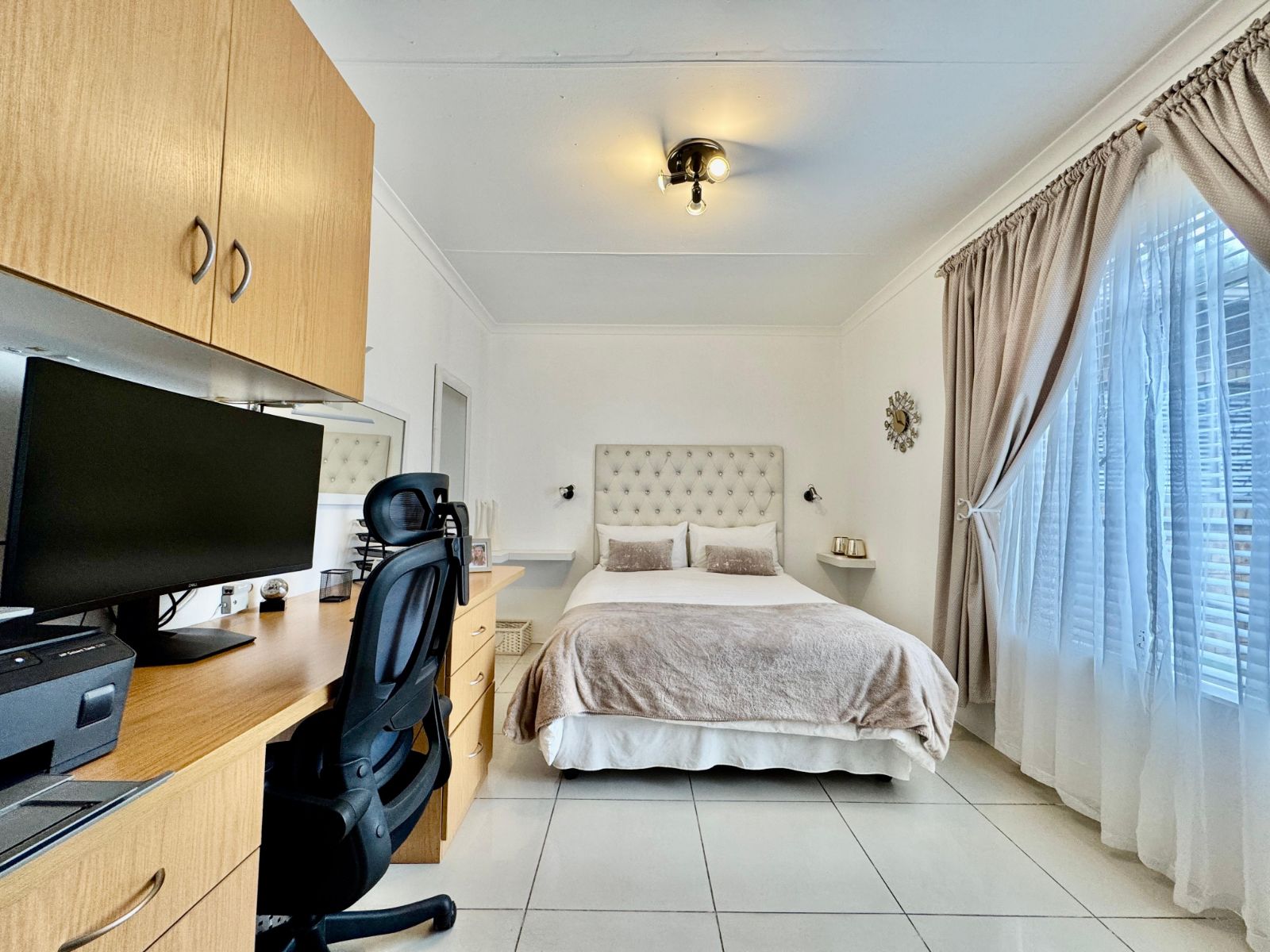 This home features four generously sized bedrooms, all with built-in cupboards and fully tiled for easy maintenance. Two of the bedrooms open directly onto a private garden patio – your peaceful morning coffee spot or afternoon chill zone. The main suite is a showstopper with a luxurious walk-in closet and a stunning en-suite bathroom.
