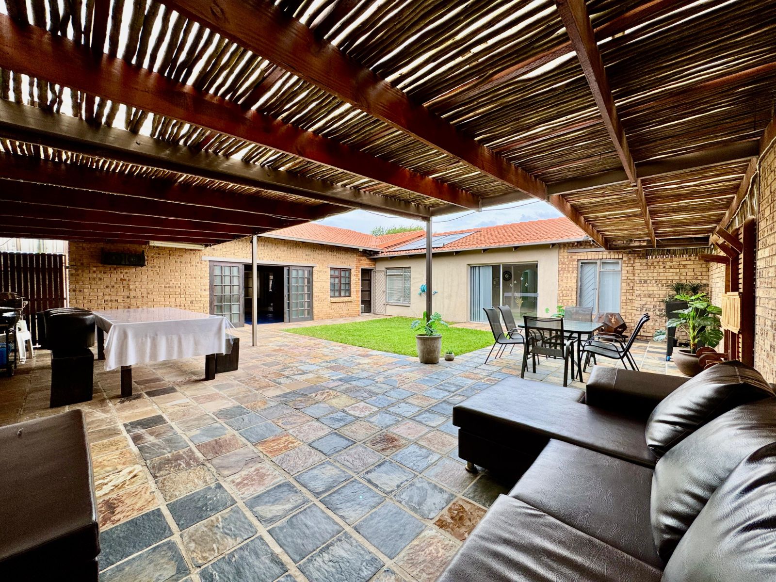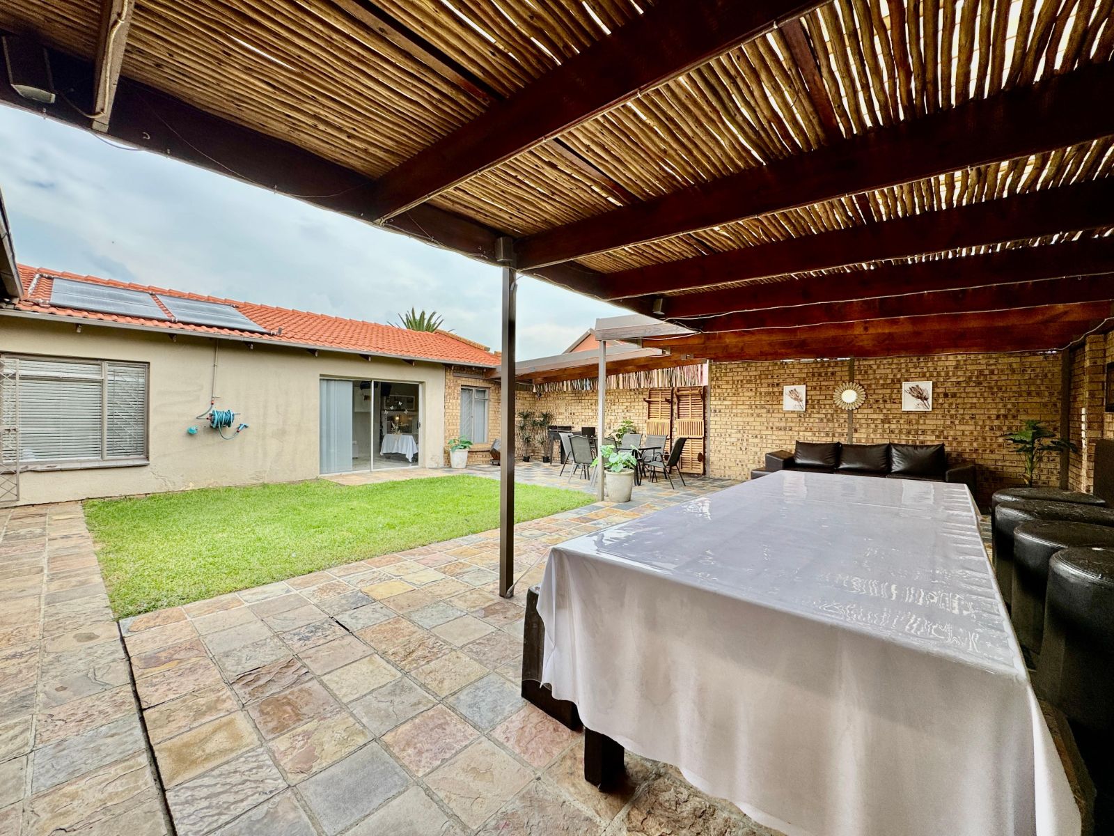 Now for the best part – the entertainment area! Slide outside to a private slate-tiled patio that flows into a stylish undercover space, complete with two built-in bar counters, a built-in braai, and a heated swimming pool with a jacuzzi – your weekend plans just got sorted!