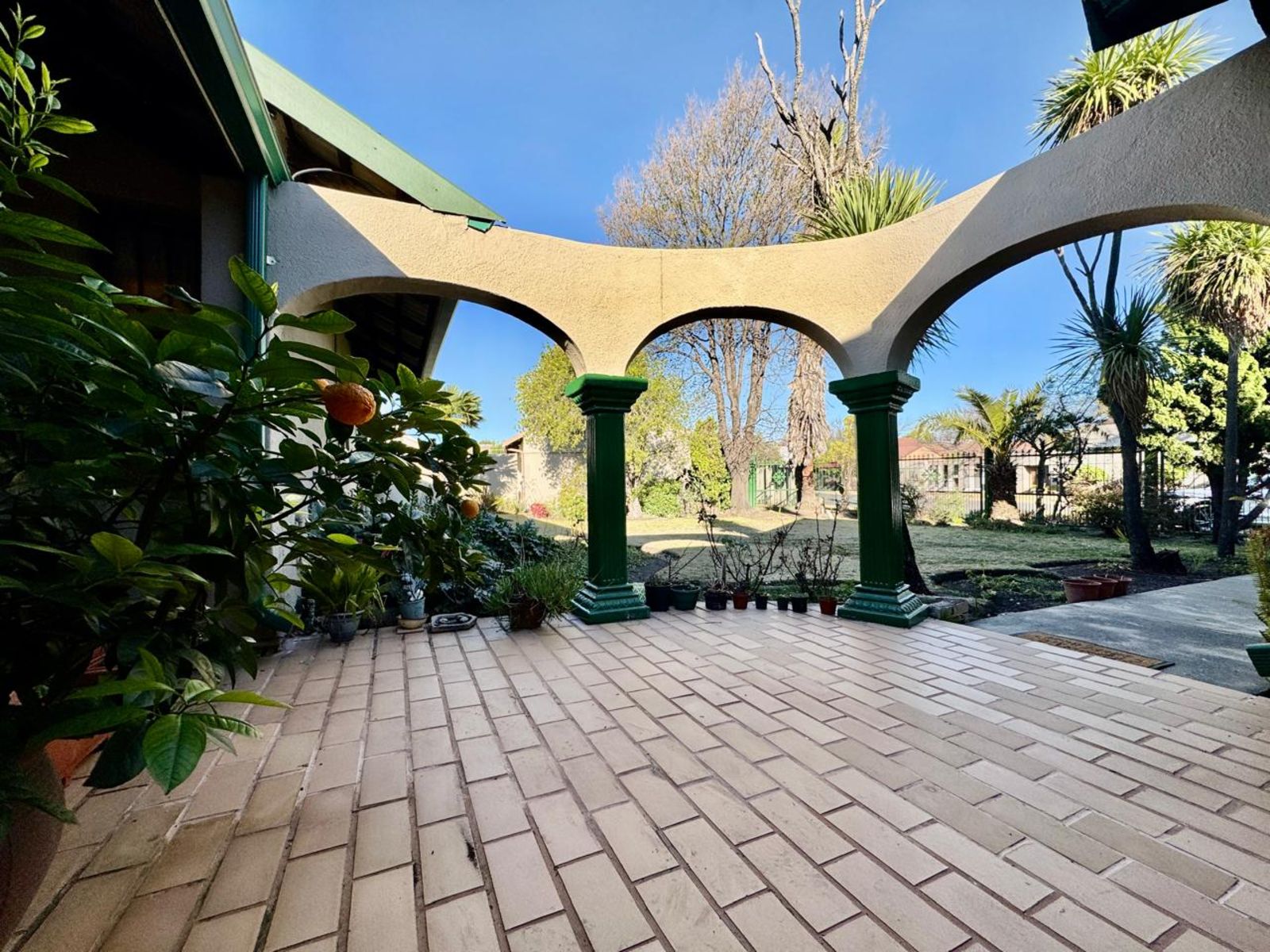 Comprehensive alarm system with 8 CCTV cameras, burglar bars, and trellises.