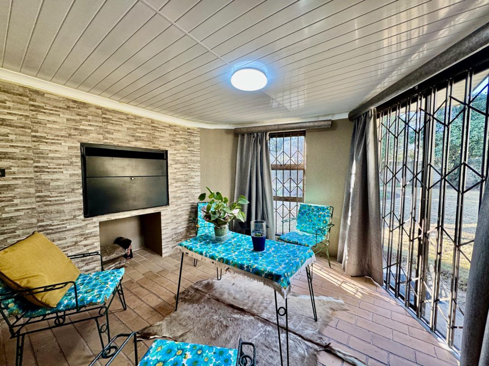 Built-in bar opening to a sunny braai room with indoor braai – perfect for entertaining all year round.