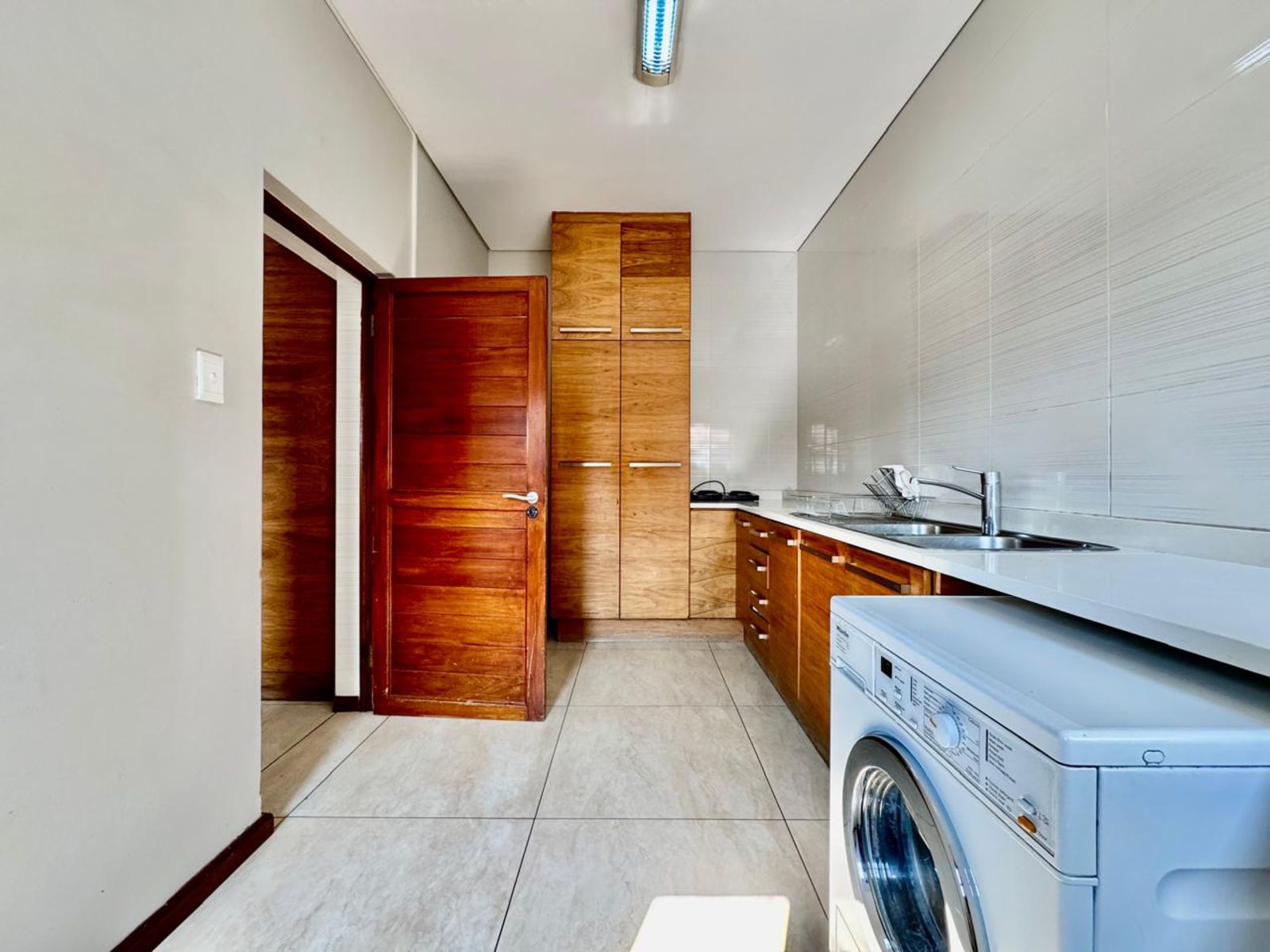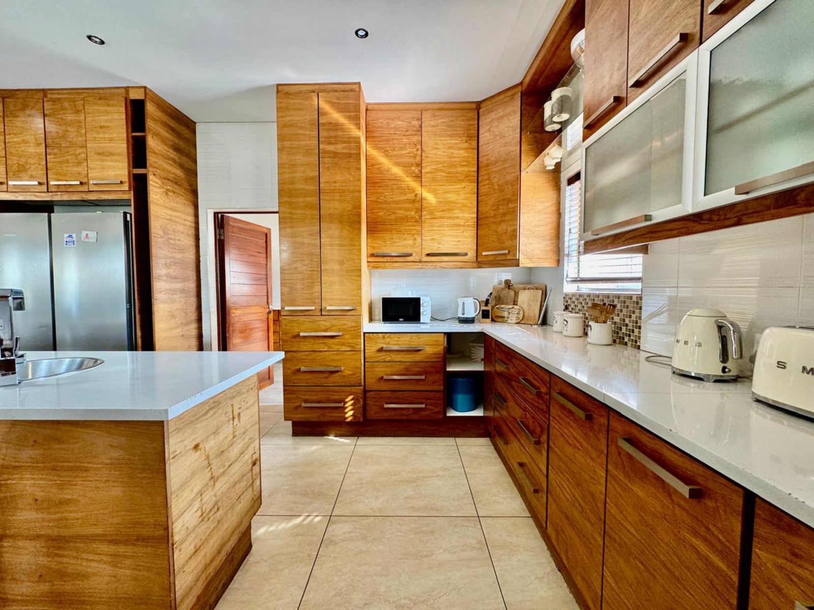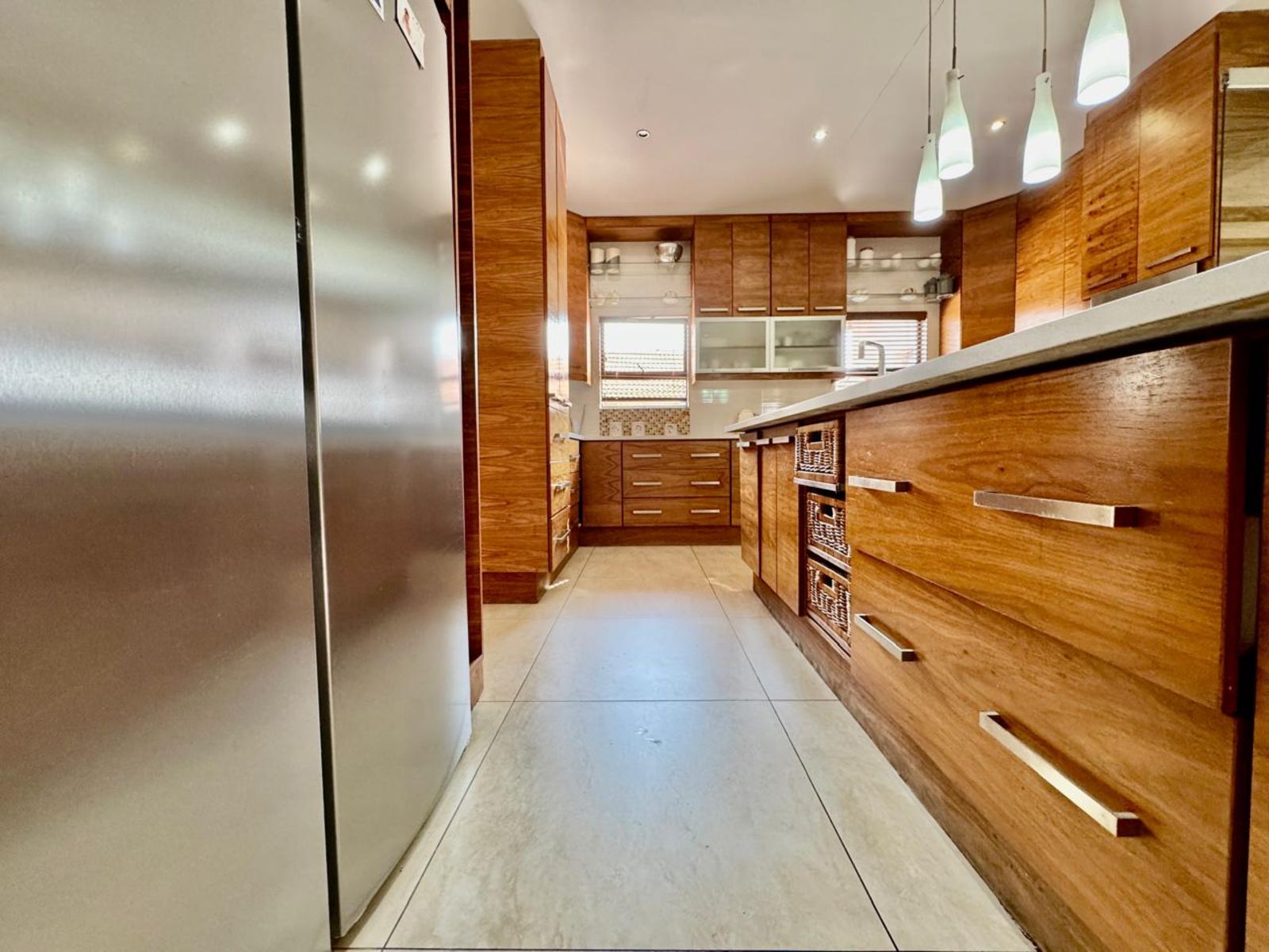 The chef’s kitchen is a perfect balance of style and function — rich wood cabinetry, granite countertops, two eye-level ovens, and a touchscreen electric stove bring modern sophistication to life. The separate scullery ensures everything stays neat and organised, ideal for those who love entertaining without the clutter.