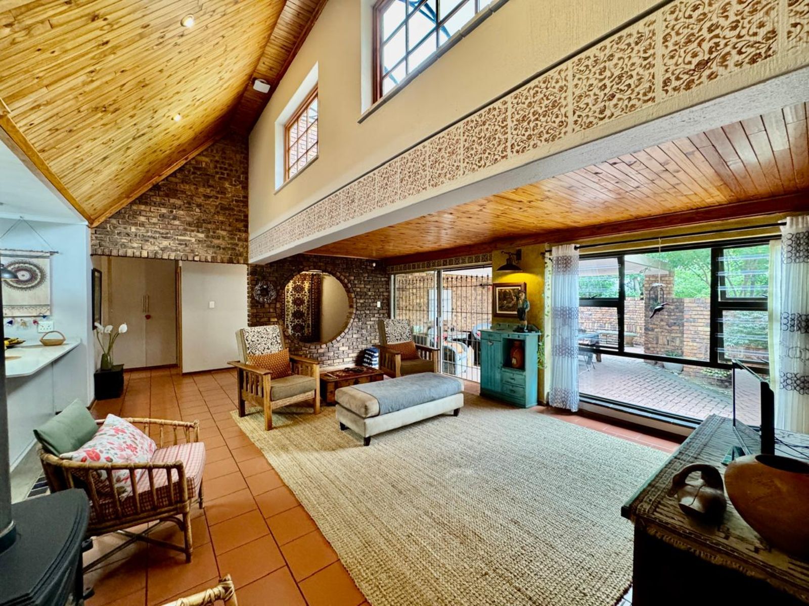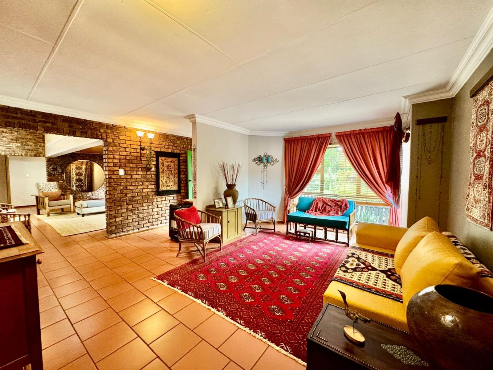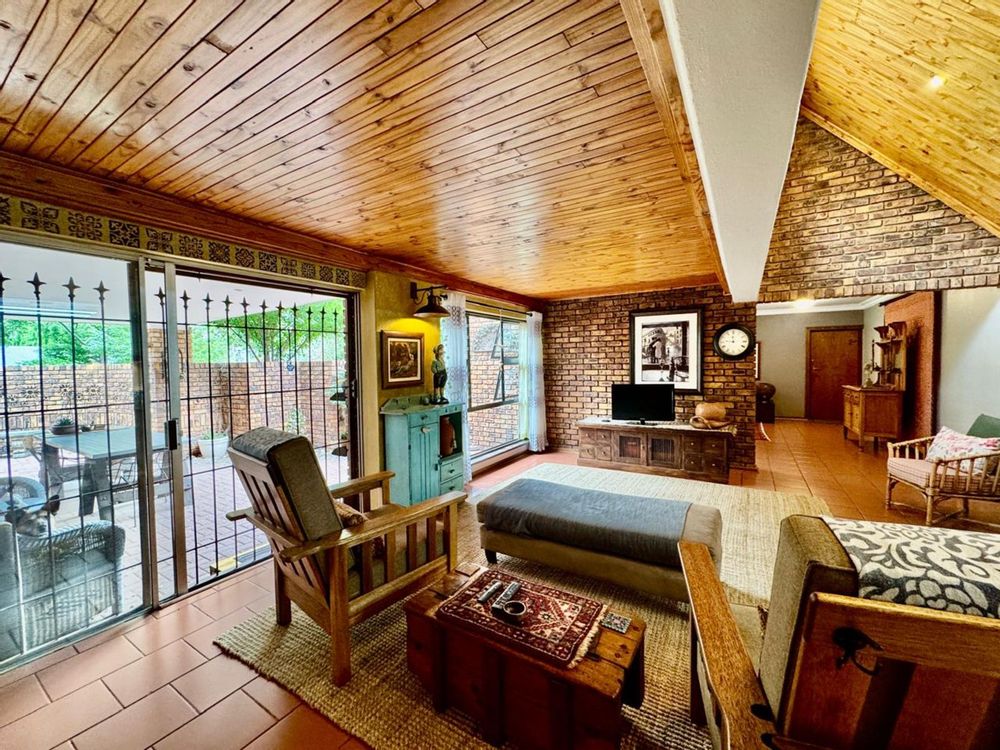 Sunlit Lounge with Character: Boasting high ceilings, loft-style windows for abundant natural light, and a cosy fireplace — plus direct access to a covered stoep for those relaxed outdoor moments.