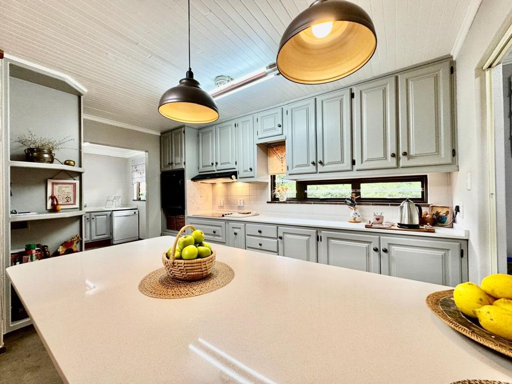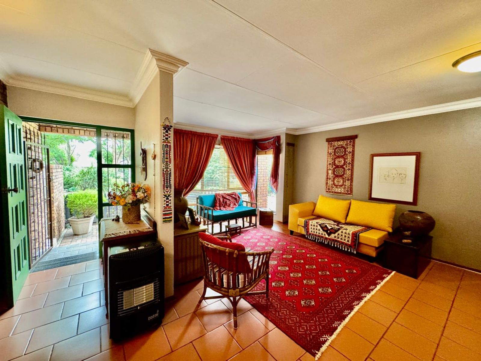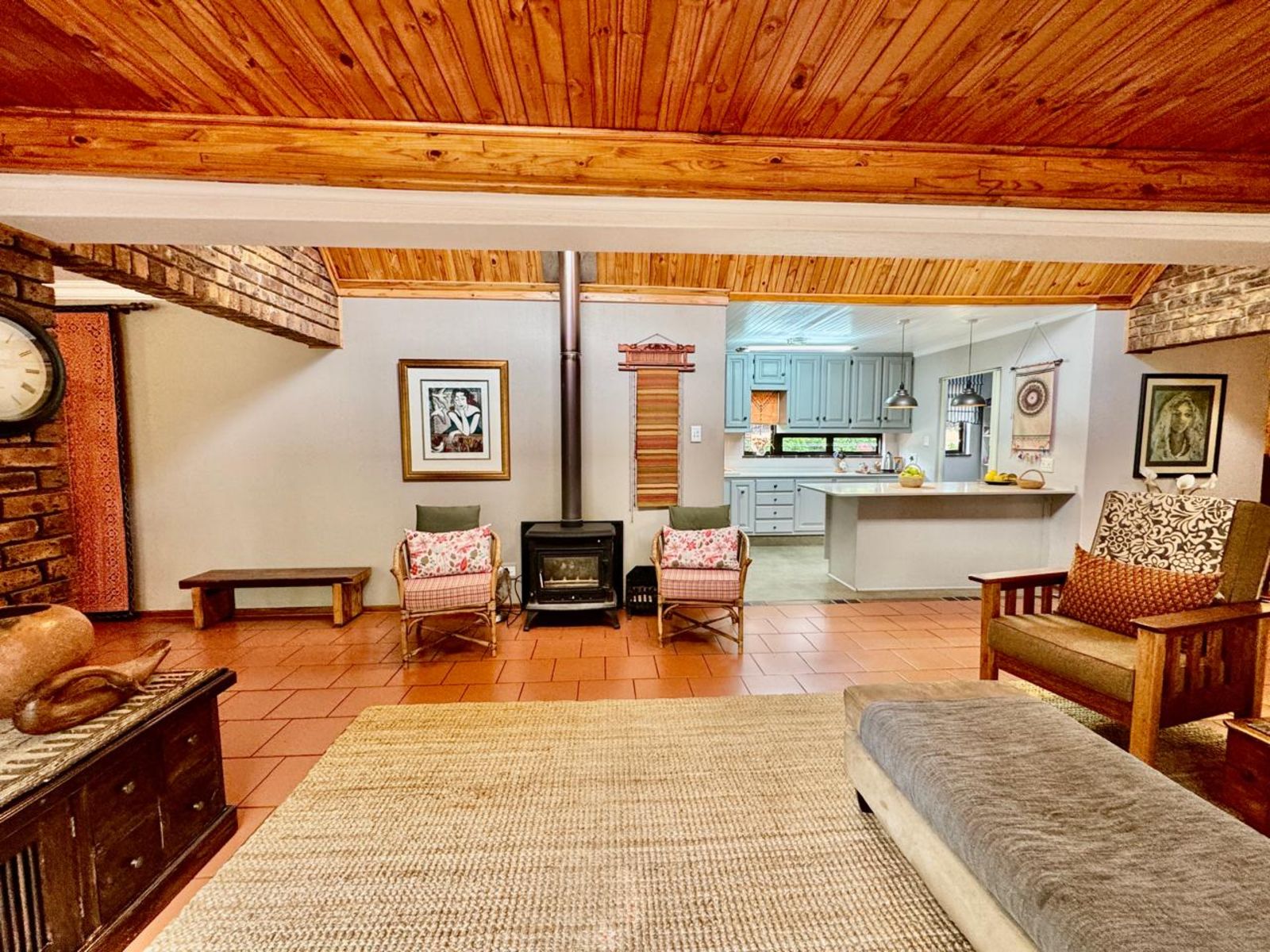 Sunlit Lounge with Character: Boasting high ceilings, loft-style windows for abundant natural light, and a cosy fireplace — plus direct access to a covered stoep for those relaxed outdoor moments.