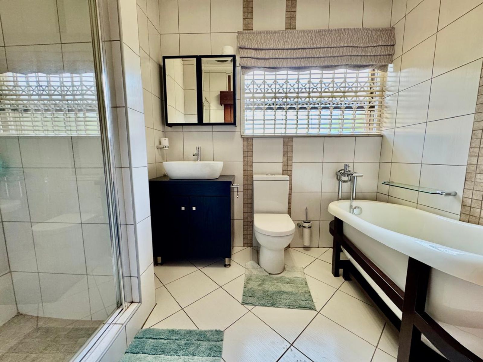 You’ll adore the beautifully crafted outdoor entertainment area, complete with a large built-in braai, serving counters, stone finishes, and a stylish steel roof for all-weather enjoyment. The paved flooring brings a touch of elegance, making it the perfect spot for family braais and weekend gatherings.