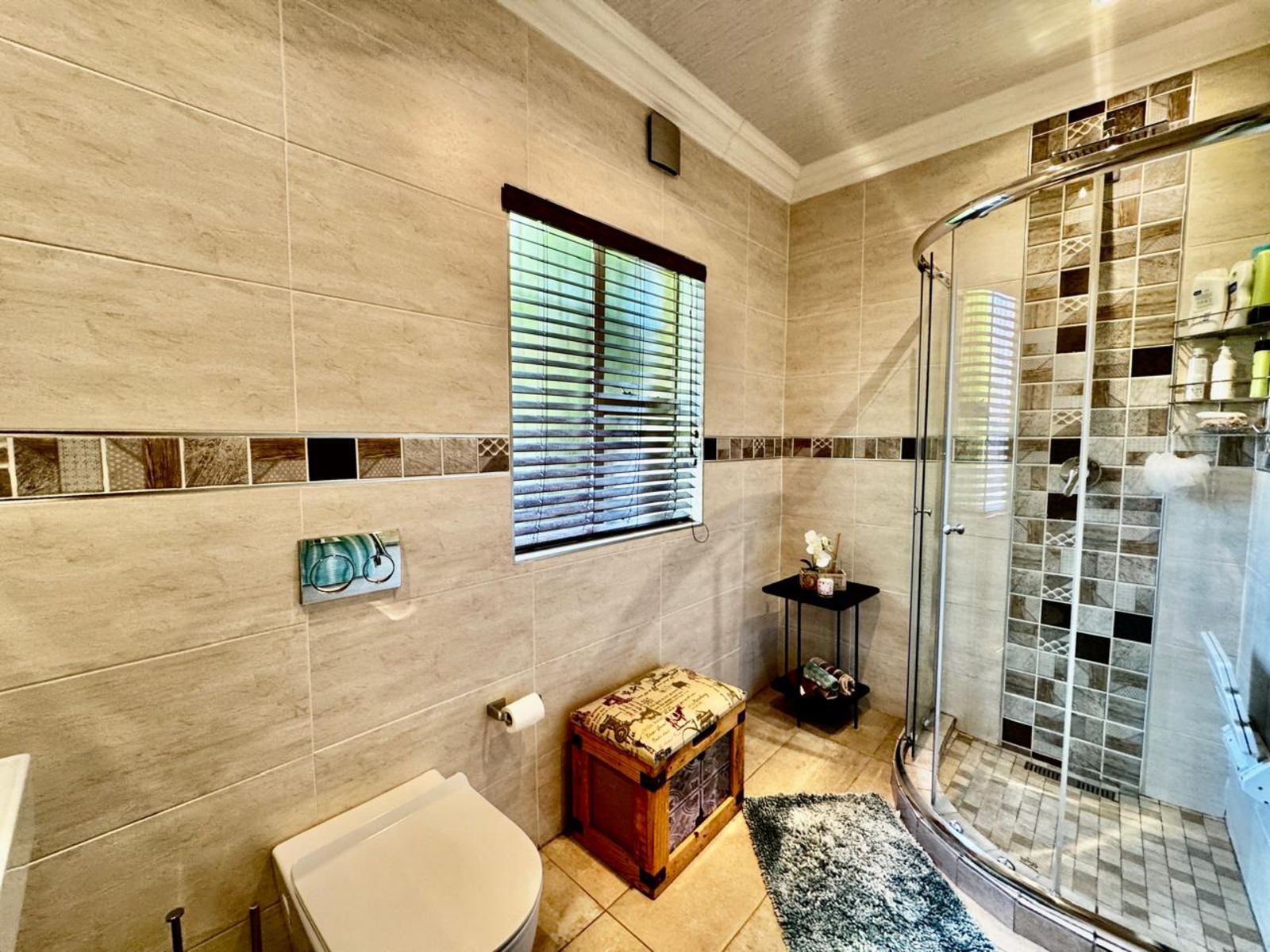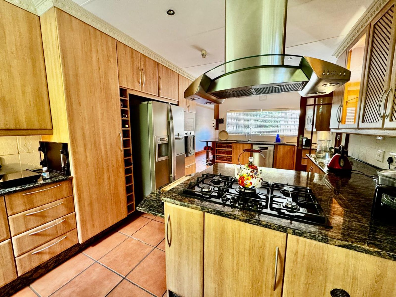 The modern kitchen is a standout, designed for convenience and style, offering granite countertops, a breakfast nook, pantry, scullery, an eye-level oven, a gas hob, an extractor fan, and sleek tiled finishes. The home also includes a dedicated laundry area, adding extra practicality for everyday living.