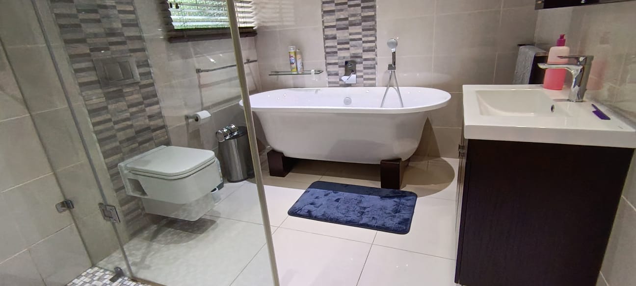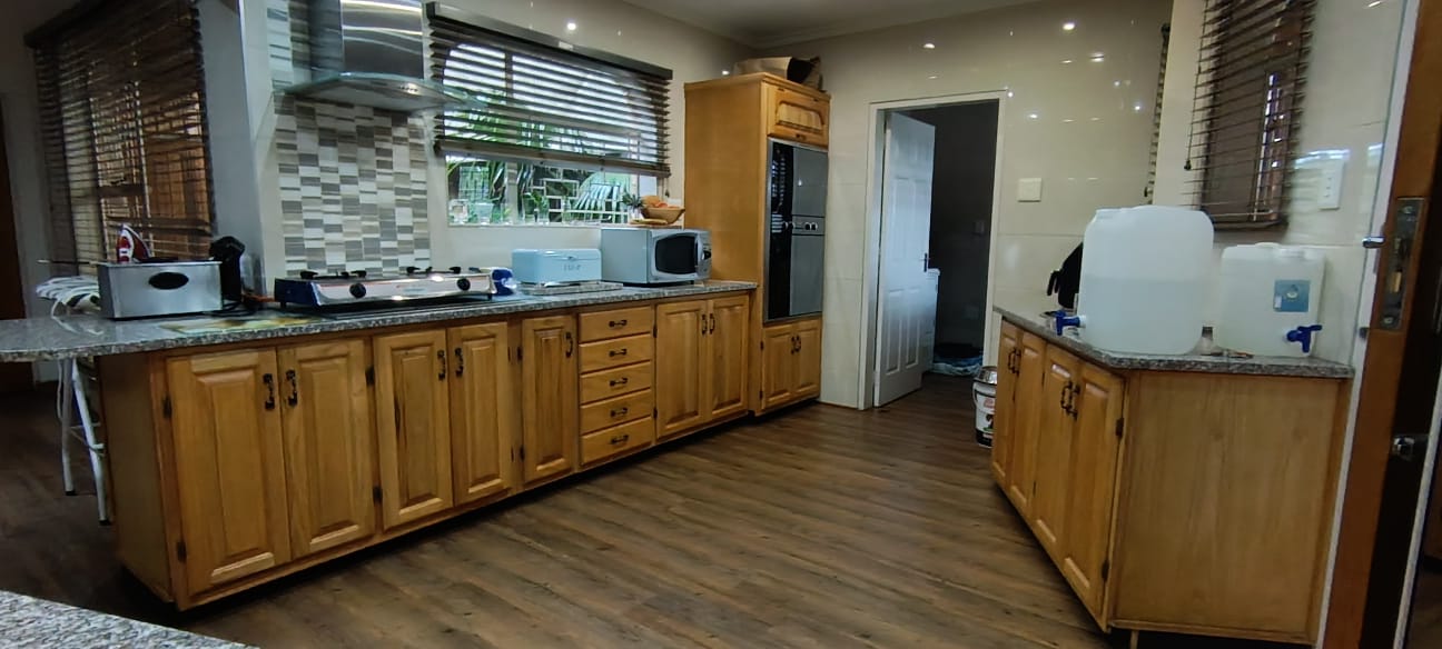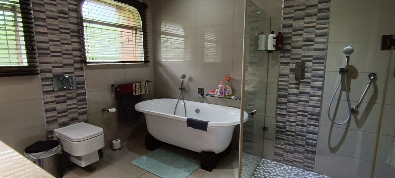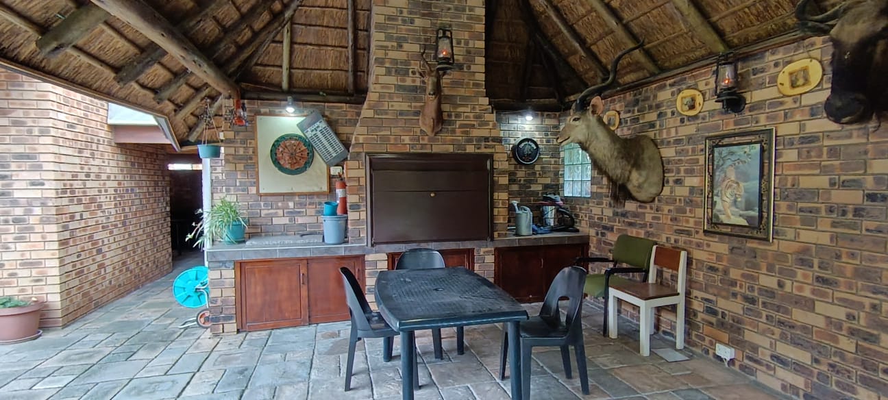Set on a huge 1,285 sqm stand in one of Secunda’s most sought-after green areas, this exceptional facebrick family home offers space, privacy, security, and outstanding entertainment features—perfect for the discerning buyer who values comfort and versatility. Main Residence – Designed for Family Living: The main house features four spacious bedrooms, all with ample built-in cupboards, and 2.5 modern bathrooms, including a luxurious main en-suite with a walk-in closet. A separate study area down the passage makes working from home or homework time effortless. Multiple living spaces ensure room for everyone: A large formal lounge Separate TV room with a solid built-in bar Open-plan dining room ideal for family meals and entertaining The well-appointed oak kitchen is a food lover’s dream, boasting granite countertops, a pantry, a spacious scullery, and a dedicated laundry area. The kitchen flows seamlessly onto a covered stoep with built-in braai, overlooking the beautifully established and very private garden—perfect for kids and pets to enjoy safely. Private 5th Bedroom Suite / Flatlet – A Home Within a Home Adding exceptional value is the private fifth bedroom suite, ideal for extended family, guests, teenagers, or rental income. This separate space includes: Its own lounge area Kitchenette Bathroom Upstairs bedroom A porch/deck area that can easily serve as a gaming room, study space, or relaxation area This unit offers privacy while remaining part of the property—an incredibly versatile feature. Outdoor Entertainment & Extras: Massive thatched lapa with built-in braai, ideal for large gatherings Landscaped, established garden with high surrounding walls for maximum privacy Wendy house for tools Larger domestic Wendy house with bathroom facilities Parking & Access: Double tandem automated garage accommodating 3 vehicles plus a caravan Additional secure open parking Direct internal access from the garage into the home Automated entrance gate Safety and convenience are top priorities, with: Electric fencing, alarm system, burglar bars, security gates, and CCTV cameras 3.5kW inverter with solar panels 2,500-litre JoJo water tank with booster pump—no inconvenience during water or power outages Underfloor heating in key areas Blinds and curtains included Remarkable Value. Unbeatable Location. Endless Possibilities. This property is the perfect blend of luxury family living, entertainment excellence, and flexible accommodation, all set in an exclusive, tranquil area of Secunda. Don’t miss out—contact us today to arrange your private viewing.