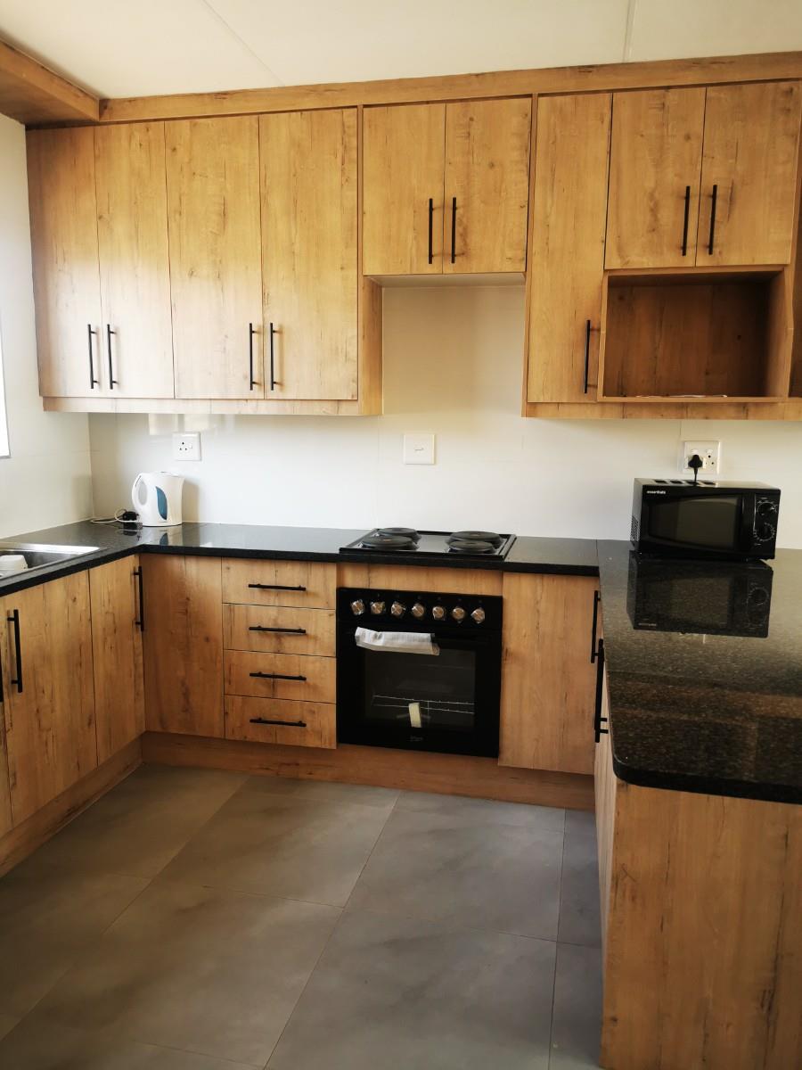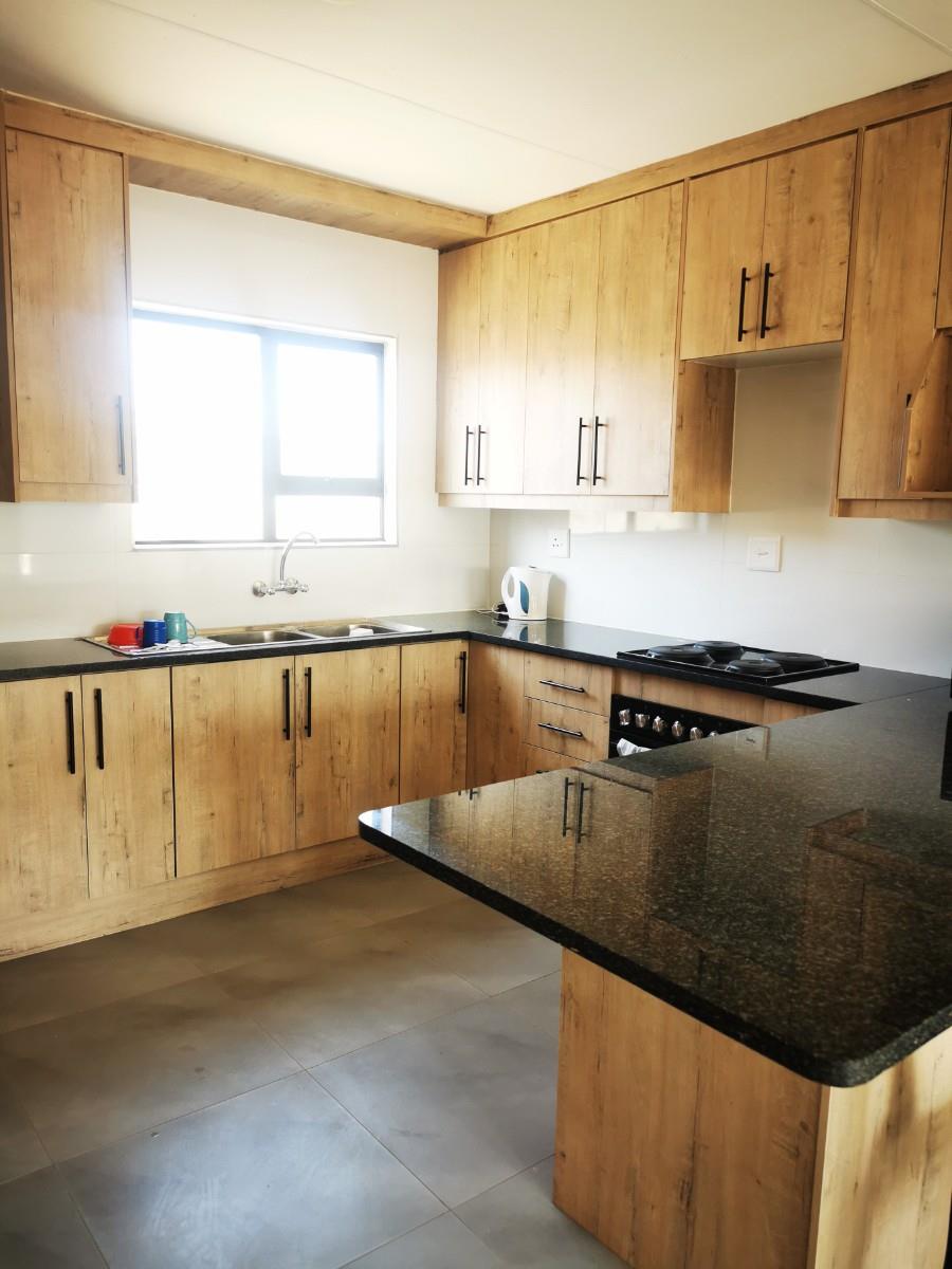 The heart of the home is the spacious open-plan kitchen, thoughtfully designed to flow seamlessly into the living and dining areas. This modern kitchen offers ample cupboard space, sleek countertops, and room for additional appliances—perfect for everyday family life as well as entertaining guests. The open layout allows for easy interaction, making it ideal for both relaxed evenings and social gatherings.