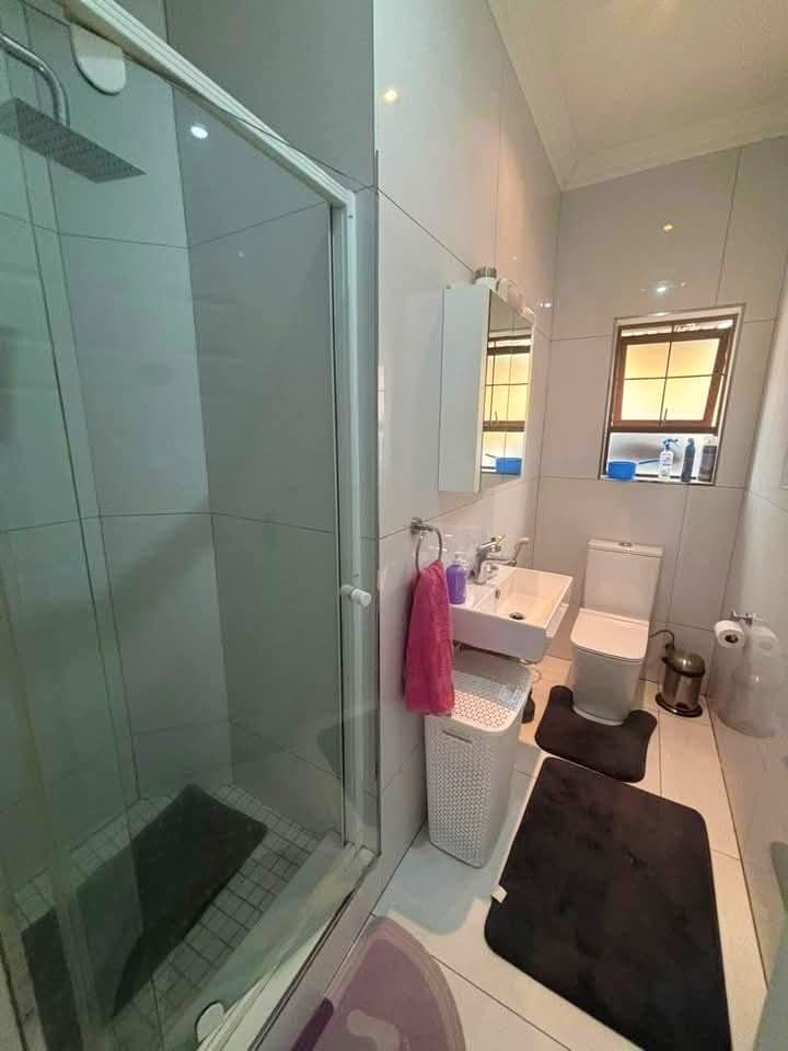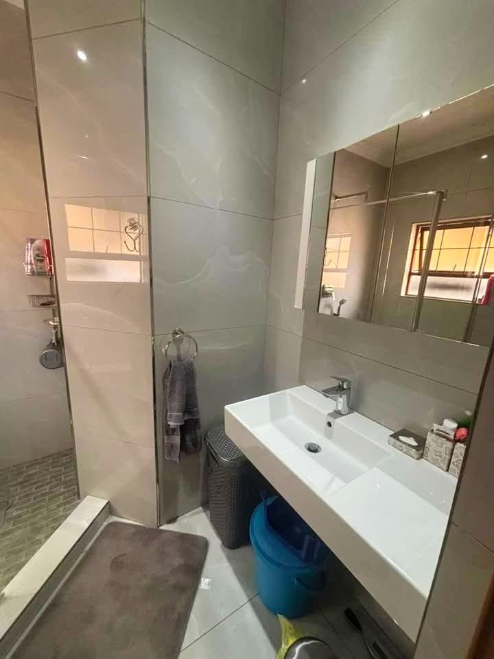 The home welcomes you with a sleek, modern living space filled with natural light. The gourmet kitchen is designed for convenience, offering ample high-end cabinetry and a separate laundry room. An indoor built-in braai area makes entertaining effortless, no matter the season.