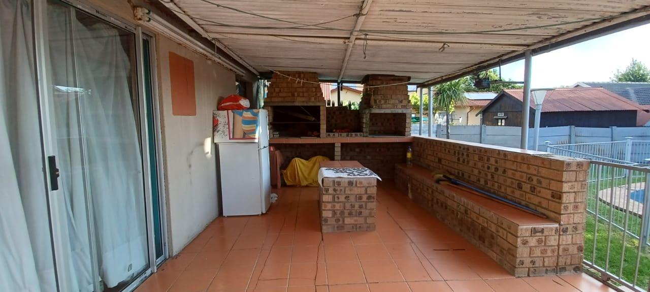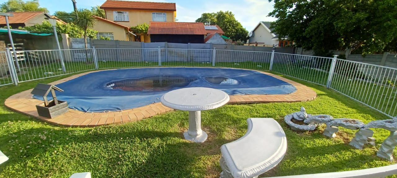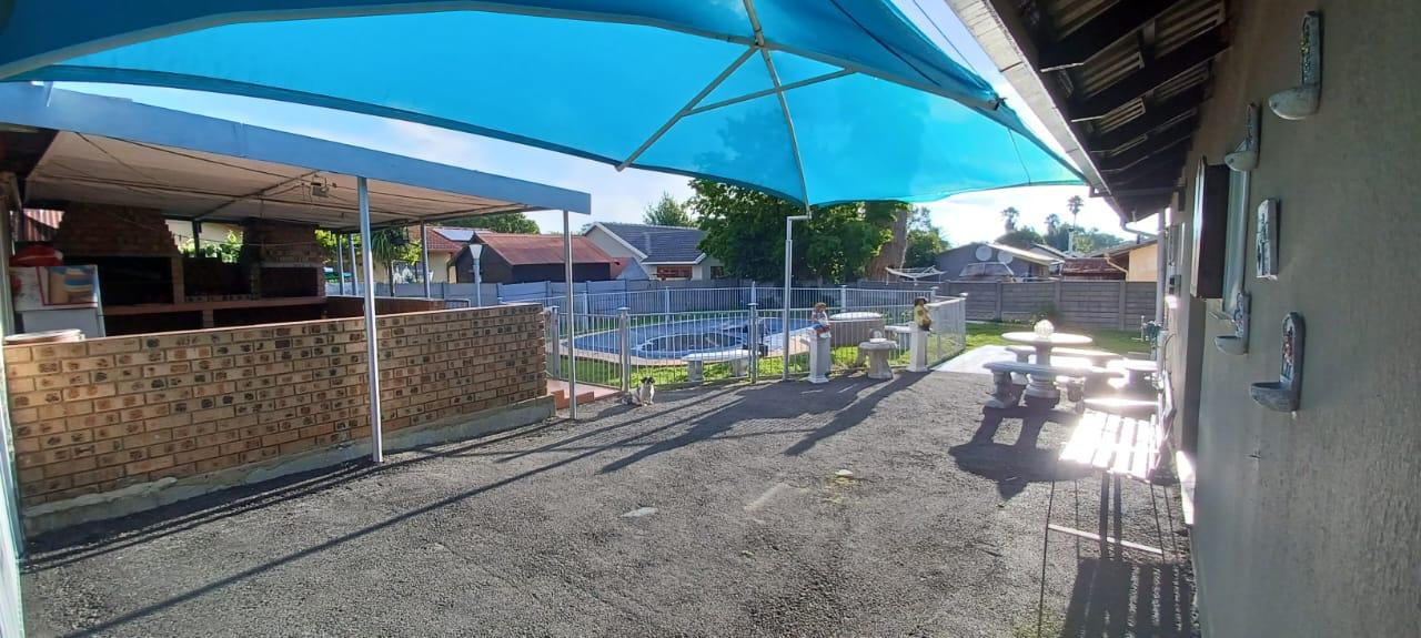 There is a beautiful patio next to the pool plus an entertainment area with a built-in braai - the pool is fenced of and include a solid cover.