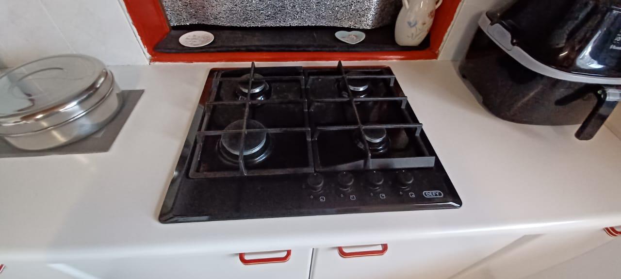The white cupboard kitchen is stunning with a breakfast nook, two hobs - one an electric hob and the other a gas hob - with one electric oven. There are plenty cupboards including a pantry and place for a double door fridge/freezer.