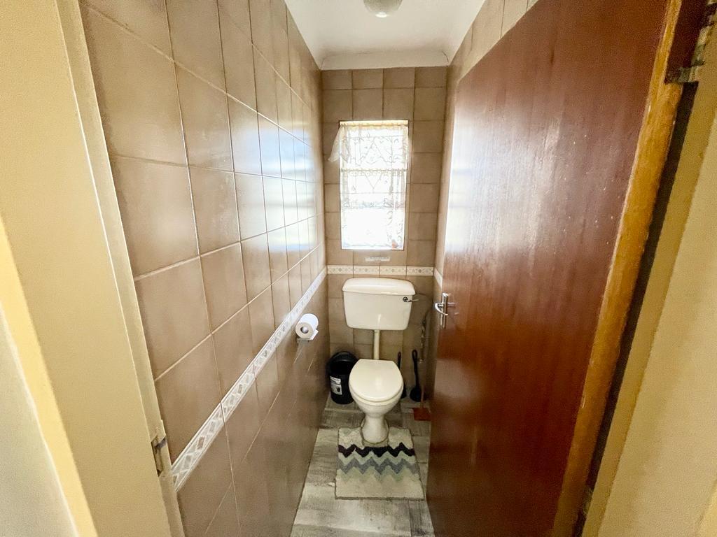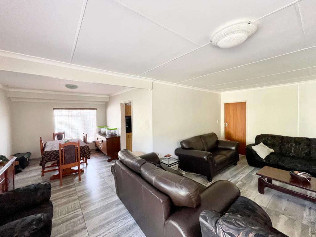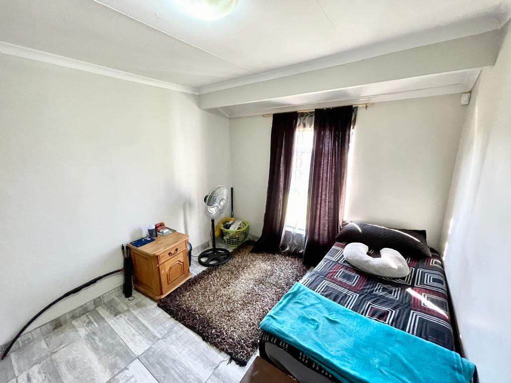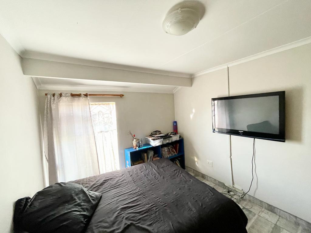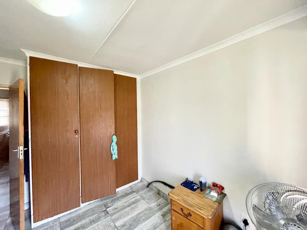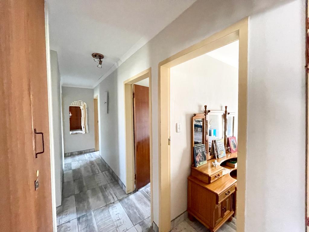 Inside, two separate living areas provide ample space for relaxation and dining, both elegantly tiled for easy maintenance. The kitchen boasts generous dimensions, complete with built-in cupboards, abundant countertop space, and modern amenities including an electric four-plate stove and eye-level oven.