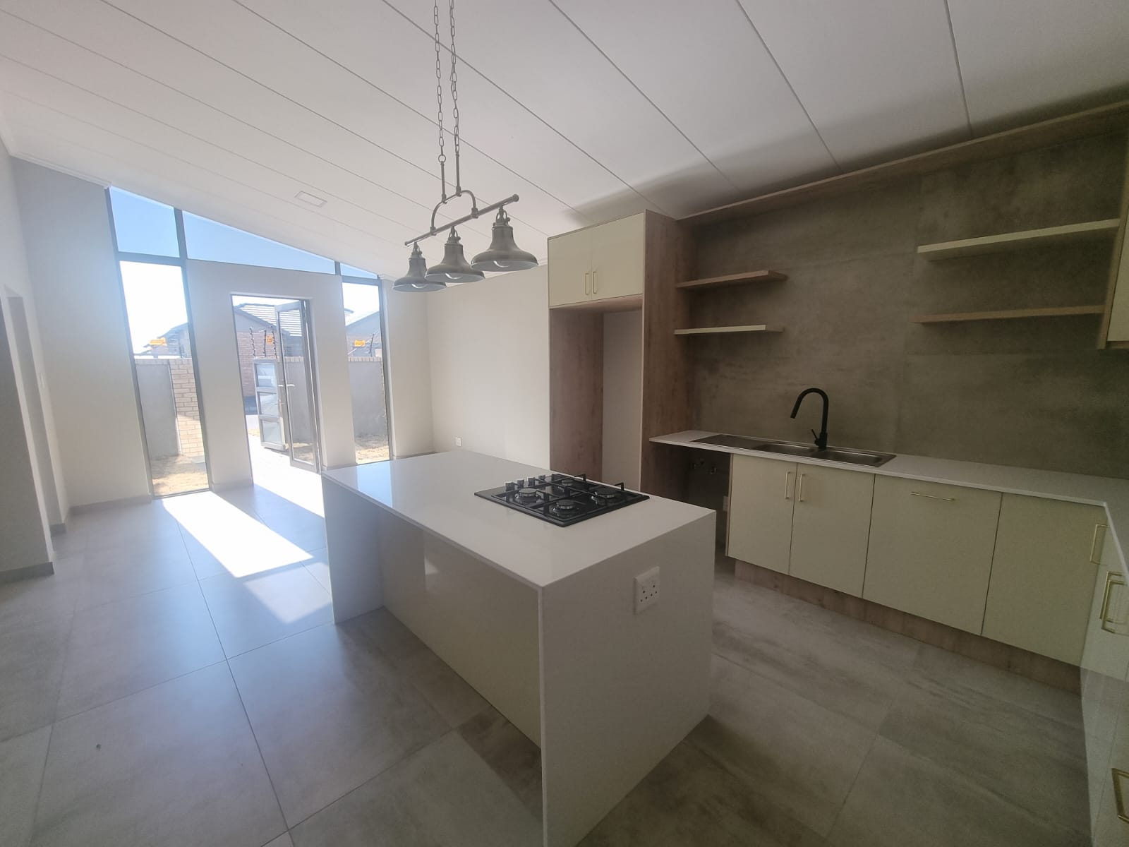 Newly built home with the best quality materials and craftsmanship. The house consists of three bedrooms two bathrooms of which one is en-suite, open plan living area & kitchen with gas hob, double automated garage & solar as an extra option. The plans and materials can be changed but must be discussed and might have a cost impact depending on what is required. NO TRANSFER COSTS. Call Rinie for more information and to view