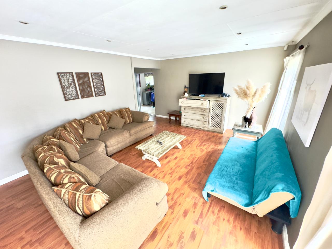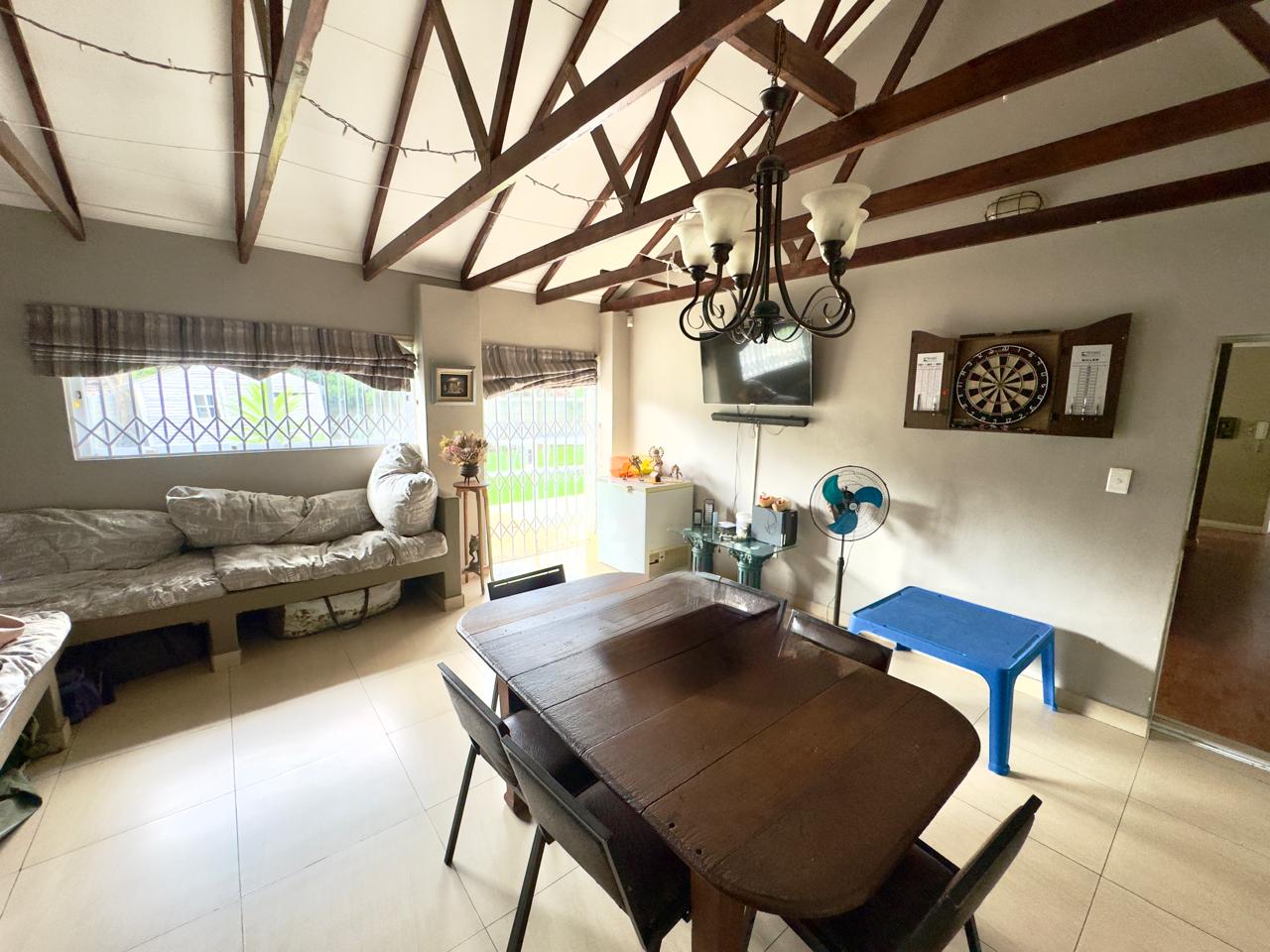 One of the standout features of this residence is the generous open-plan entertainment area, complete with a built-in braai. This versatile space is ideal for hosting guests, celebrating milestones, or enjoying casual weekends at home.