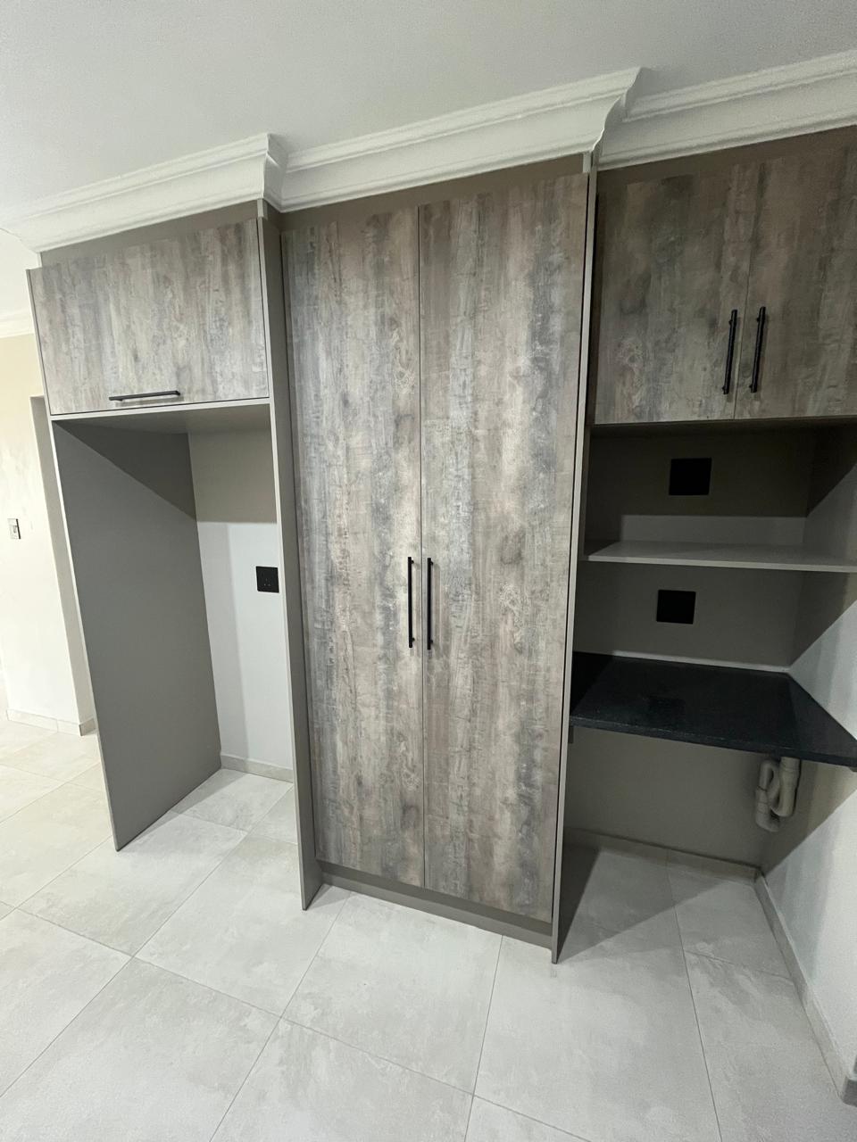 Inside, the home features a spacious open-plan living area and kitchen, creating a warm, connected space for everyday living. The modern kitchen is fitted with a gas stove, ample built-in cupboards, and a user-friendly layout that makes cooking and entertaining effortless. The home further includes two well-sized bedrooms and two bathrooms, offering privacy and convenience for professionals, small families, or shared living arrangements.