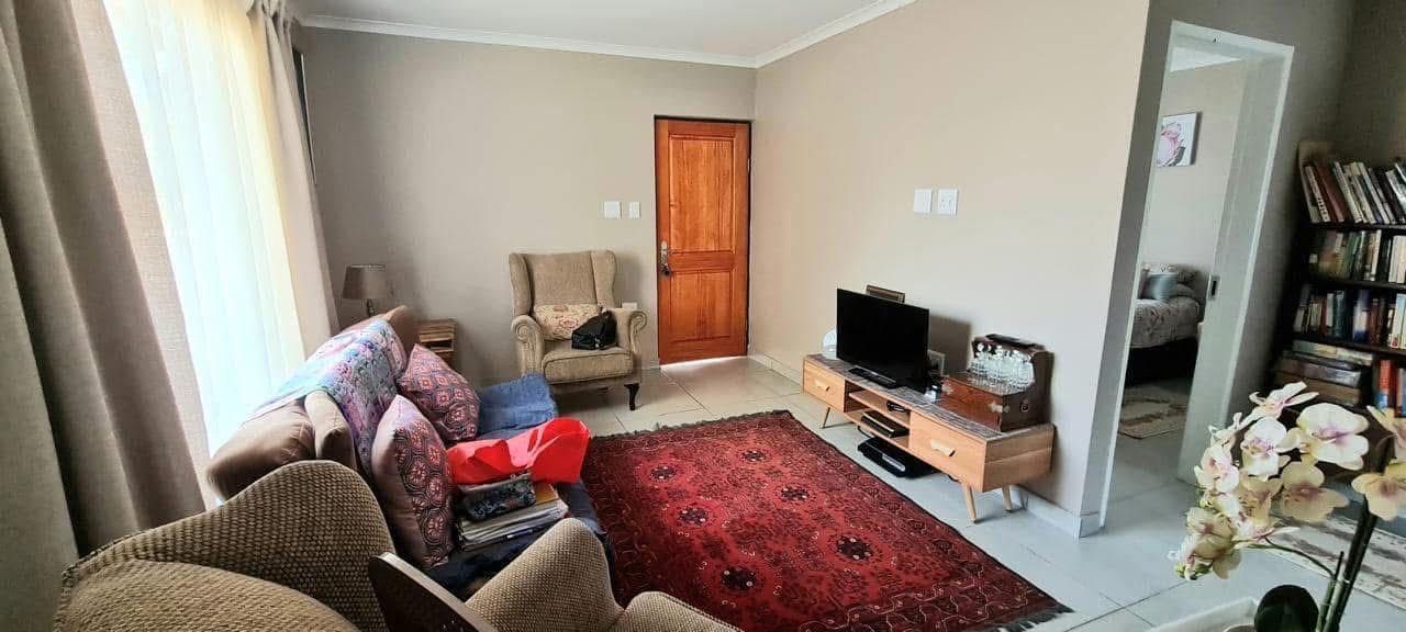 The open-plan living area flows seamlessly into the kitchen, creating a cosy and functional space for relaxing or entertaining. Both bedrooms offer generous cupboard space and are designed for comfort. The bathroom is neat and modern, featuring all the essentials for your convenience.
