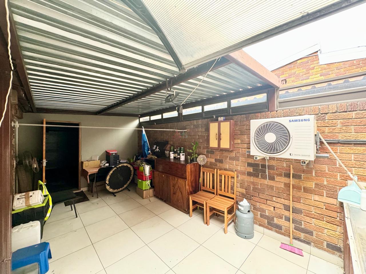 The entire unit is fully tiled, providing a clean, cohesive, and low-maintenance living space. At the entrance, a private patio area welcomes you, setting the tone for a tranquil and inviting home. The spacious living area is versatile, designed to accommodate both a cozy lounge and a dining area, making it perfect for entertaining or relaxed family living.