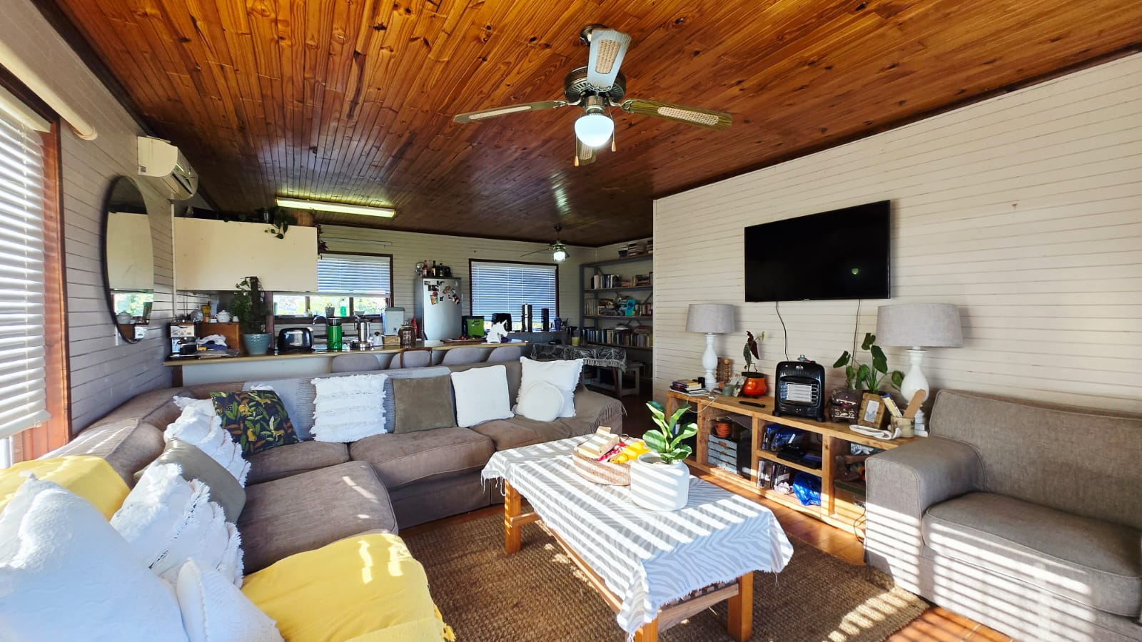 Designed for flexibility, this two-storey timber dwelling is ideal for families, a dual rental property or investment opportunity on a prime lakeside property; the options are endless! The downstairs garden flat features 2 bedrooms, shared bathroom, open-plan living area, an additional storeroom and outside bathroom. The upper level offers a bright and airy open-plan living space connecting to the kitchen. With three bedrooms and a shared family bathroom, this space can accommodate everyone while maintaining privacy for dual living purposes. The master bedroom features a sliding door that opens directly to the upstairs deck.