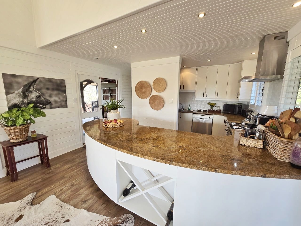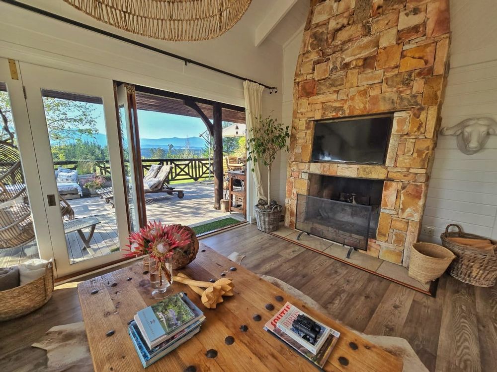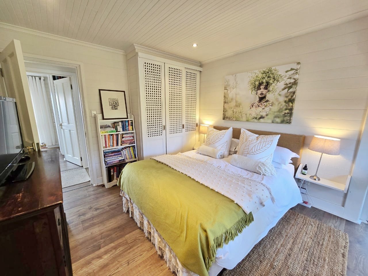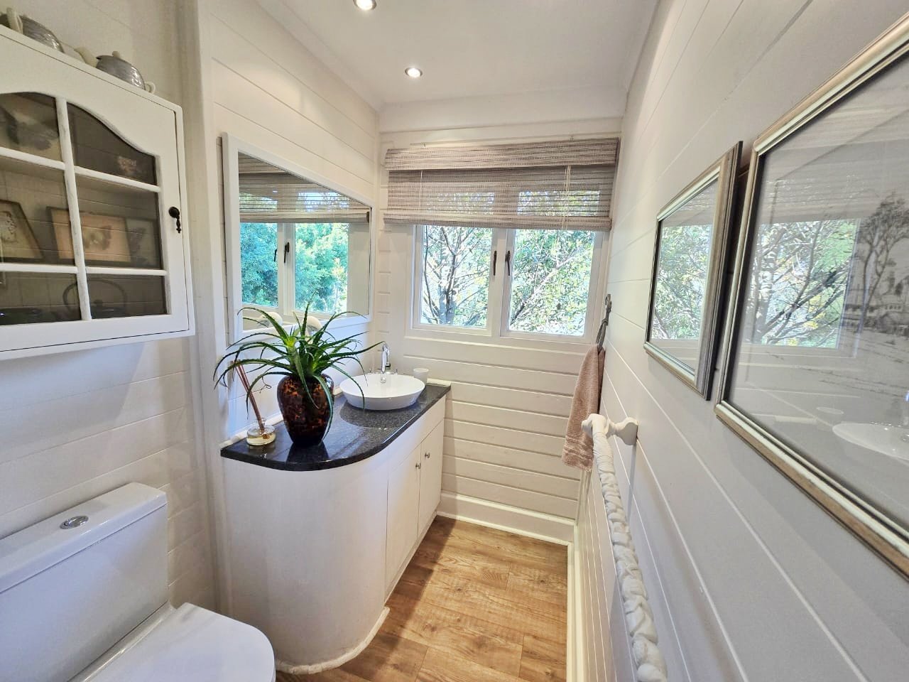 A Private Retreat; the cozy cottage includes an open-plan lounge/bedroom with a kitchenette, complete with wooden countertops, a prep bowl, and a 2-plate gas stove. A closed combustion fireplace ensures it stays warm during the cold winter days and nights. It has a separate bathroom with a shower, basin, and toilet. The outdoor area is fully fenced with private access and parking. Enjoy a peaceful seating area under the trees or on the paved undercover patio that flows out through stack doors from the living areas and has views of the magnificent Outeniqua mountains. The cottage is totally private from the main house and is currently let on Airbnb, which can be continued if one wants to. It has its own generator and separate wi-fi connection.