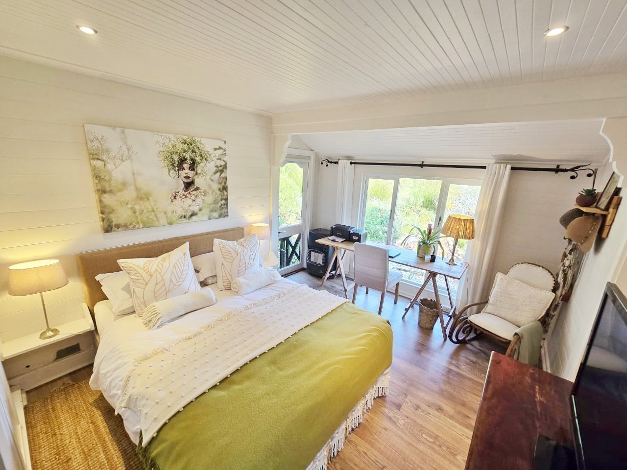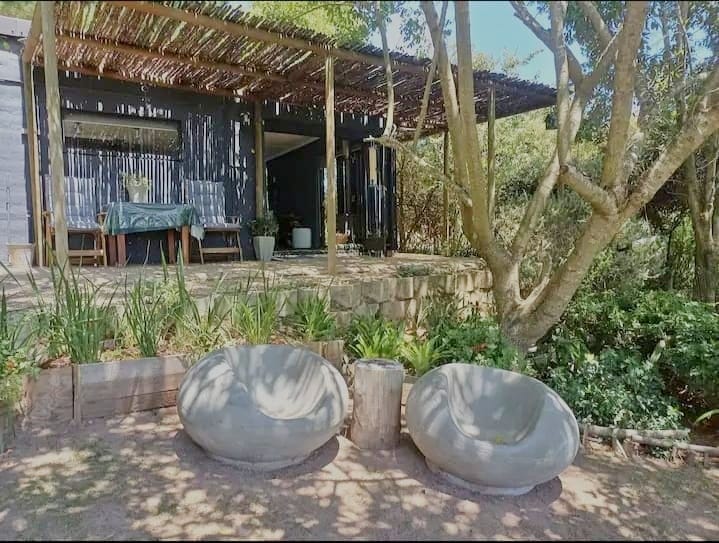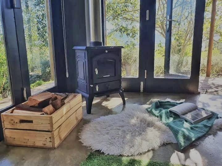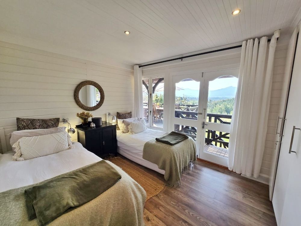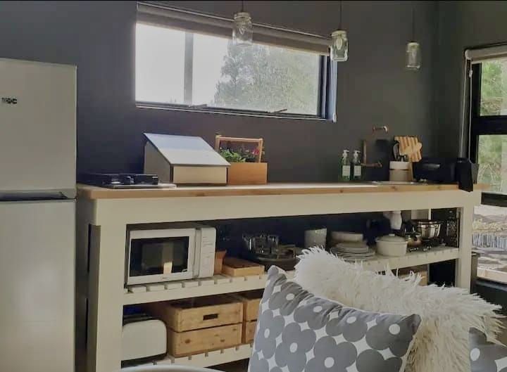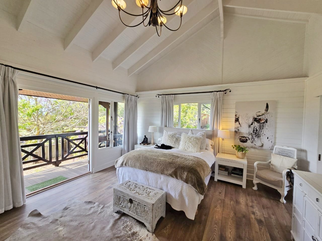 A Private Retreat; the cozy cottage includes an open-plan lounge/bedroom with a kitchenette, complete with wooden countertops, a prep bowl, and a 2-plate gas stove. A closed combustion fireplace ensures it stays warm during the cold winter days and nights. It has a separate bathroom with a shower, basin, and toilet. The outdoor area is fully fenced with private access and parking. Enjoy a peaceful seating area under the trees or on the paved undercover patio that flows out through stack doors from the living areas and has views of the magnificent Outeniqua mountains. The cottage is totally private from the main house and is currently let on Airbnb, which can be continued if one wants to. It has its own generator and separate wi-fi connection.