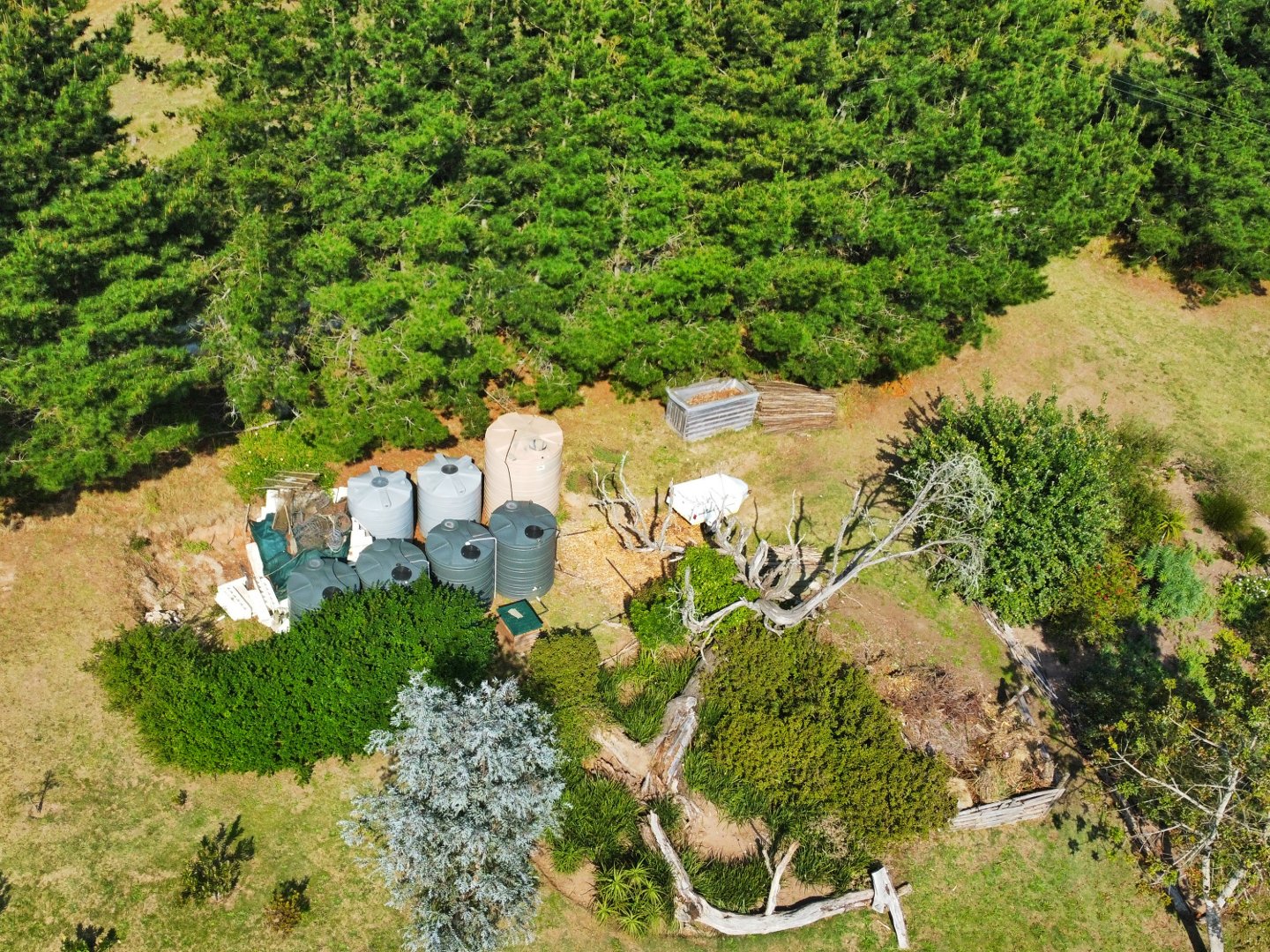 capacity of 70,000 liters (30,000L under the house and 40,000L at the top of the property). The property also has access to dam