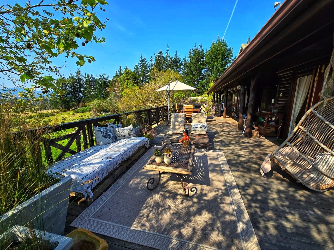 Entertainment Area: The semi-covered Balau deck features an outdoor fireplace and ample space for entertaining while enjoying the serene mountain