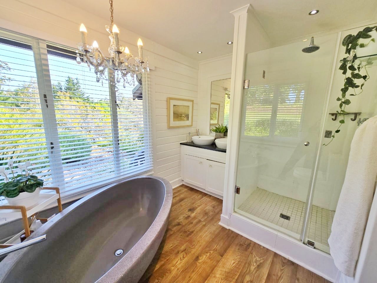 Main Bedroom: This double-volume room includes built-in cupboards, access to the deck, and a loft area for storage. The en-suite bathroom offers